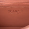 The interior is lined in rose leather and features a zipper pocket with Chanel pull and an open pocket below.