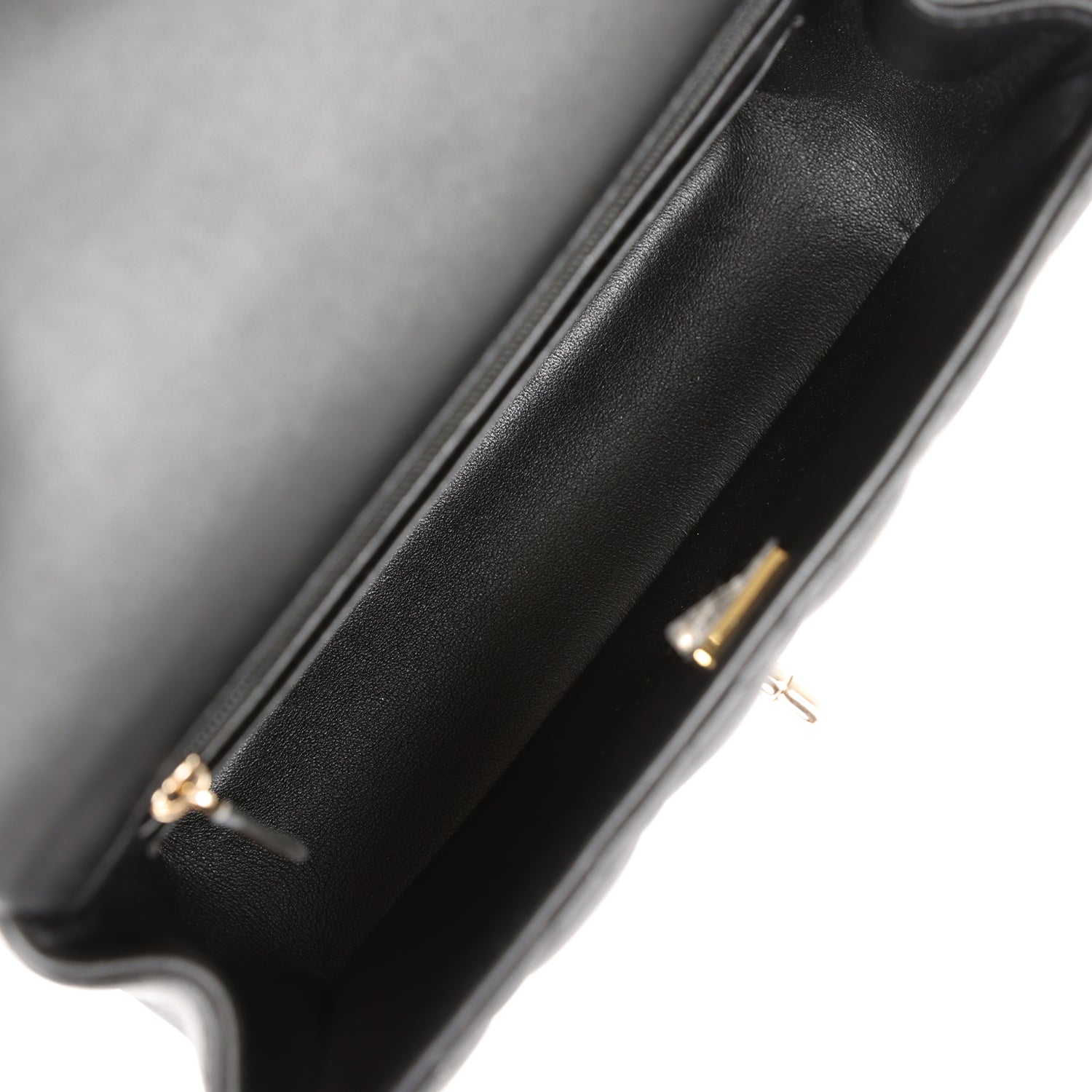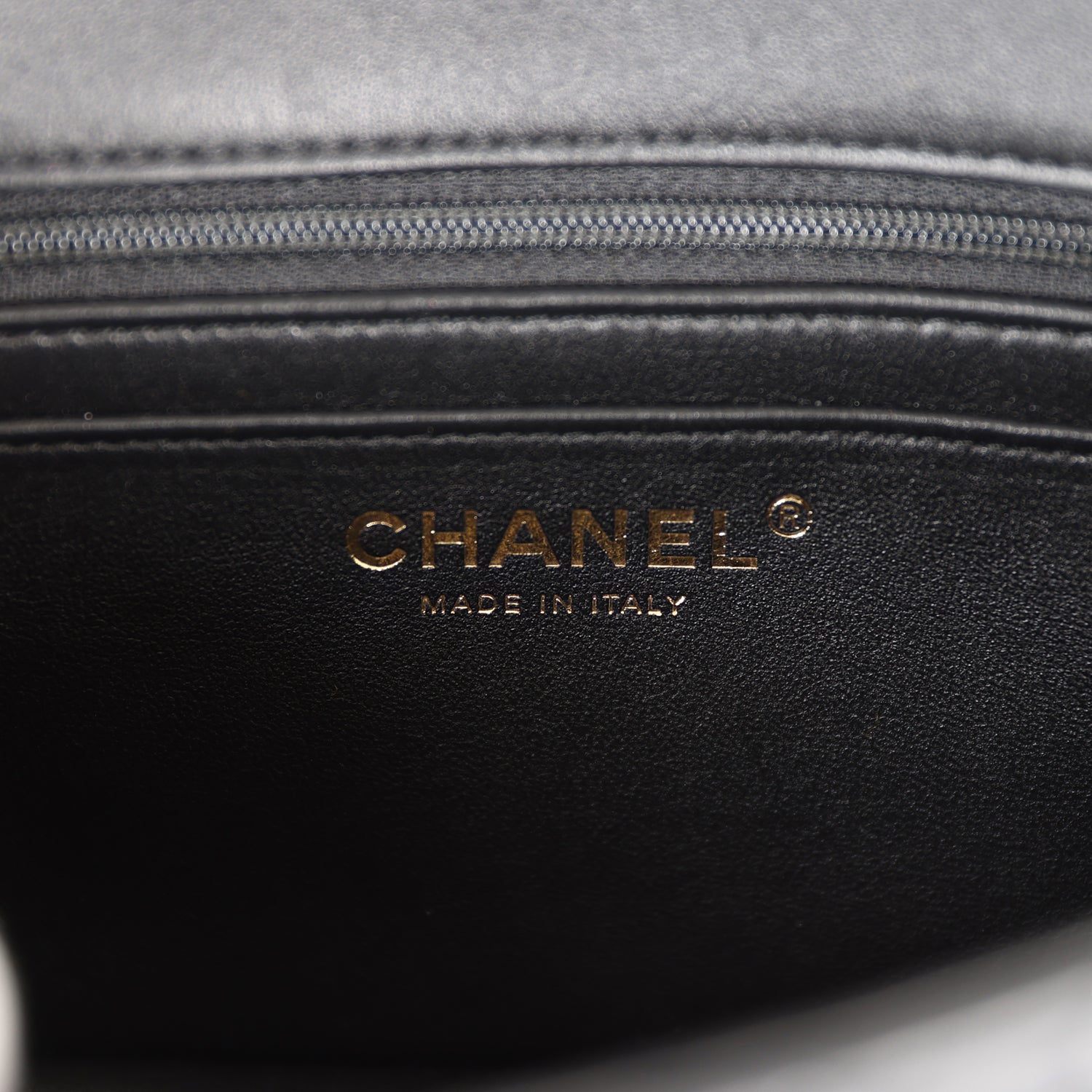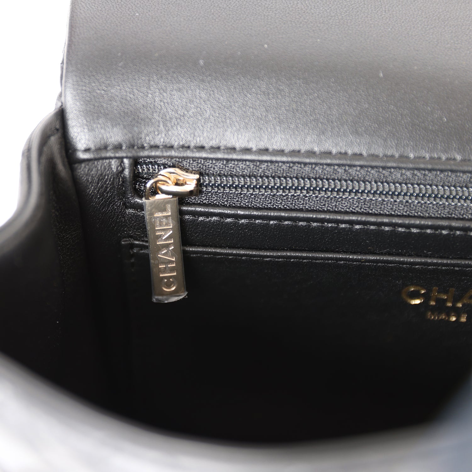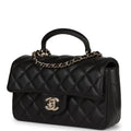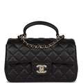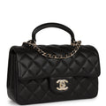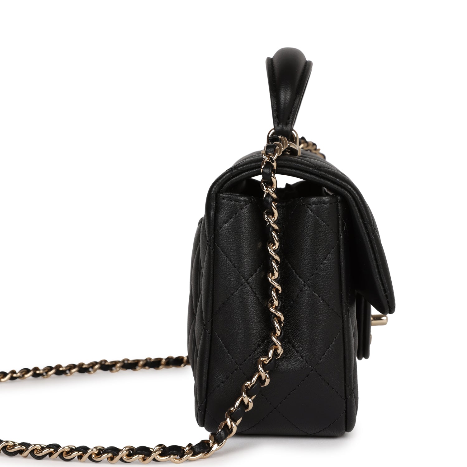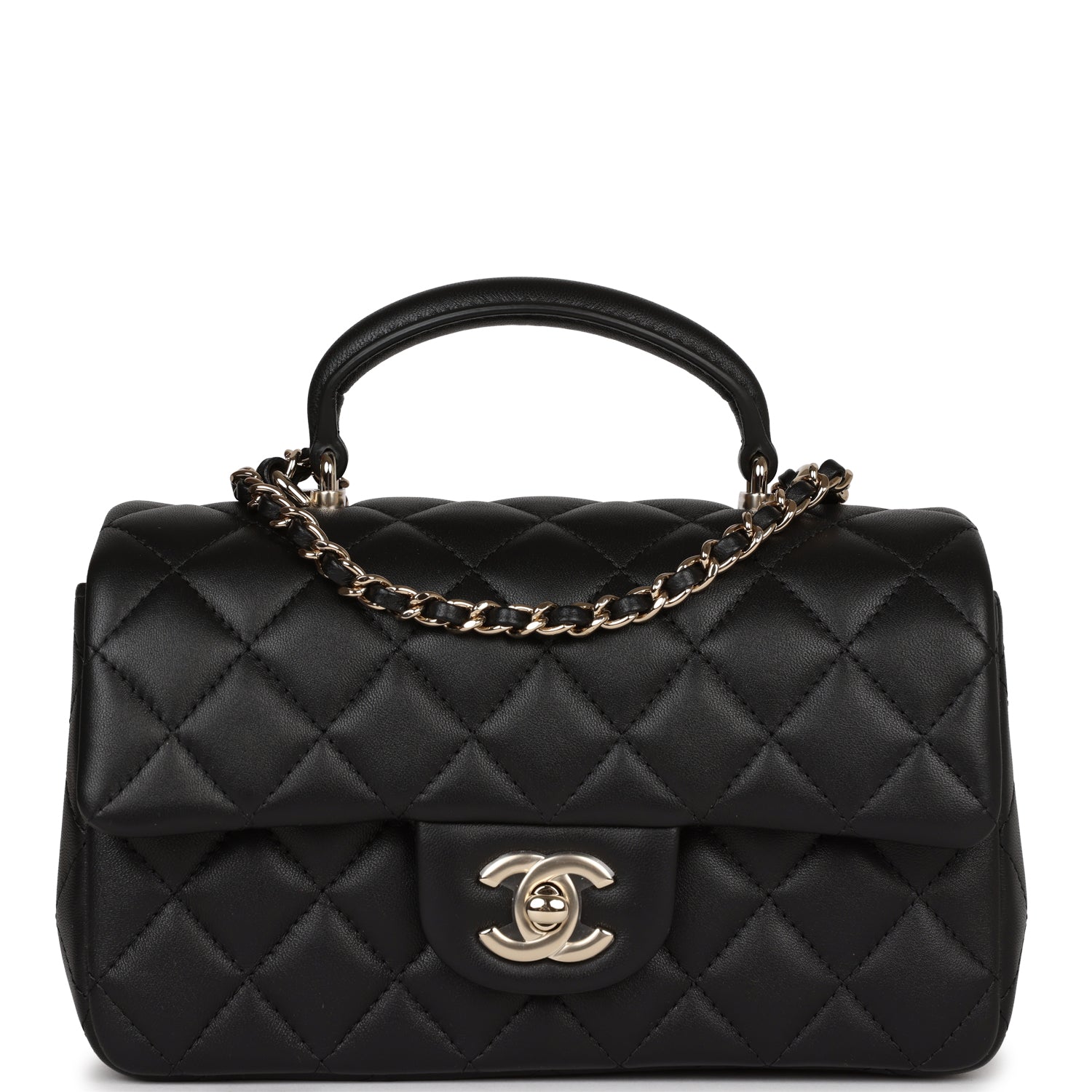 Chanel Mini Rectangular Flap Bag with Top Handle Black Lambskin Light Gold Hardware