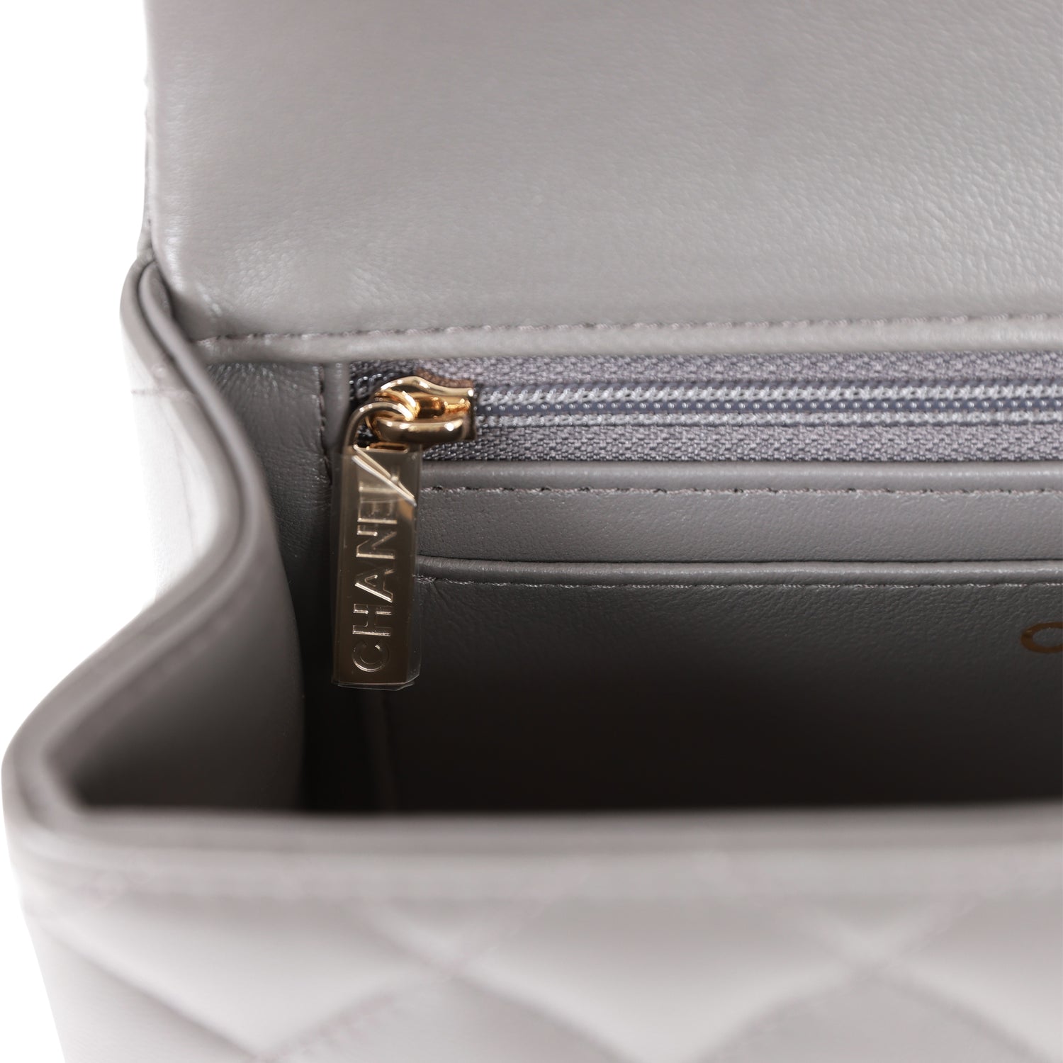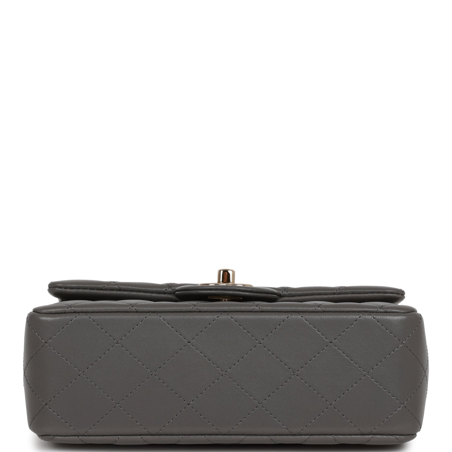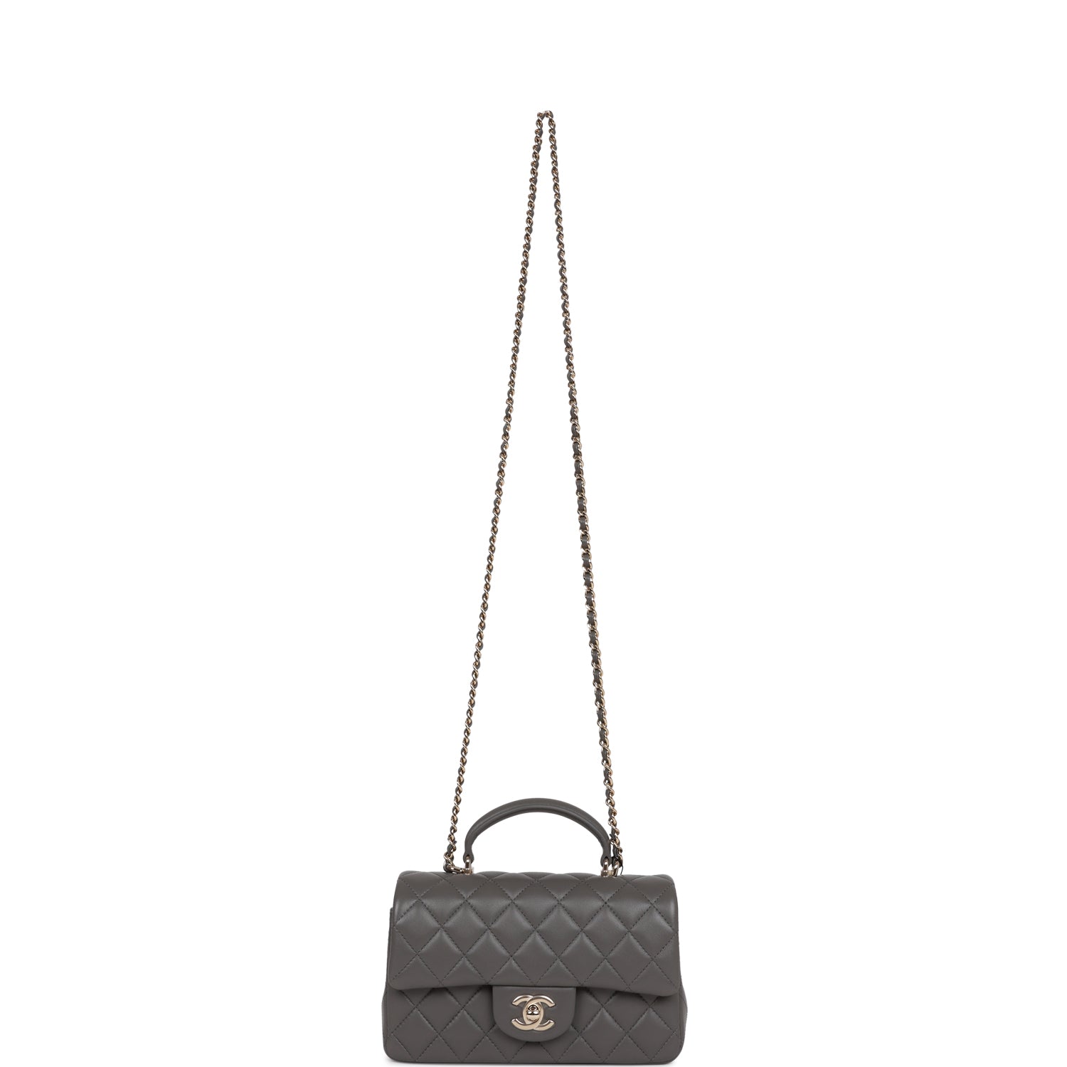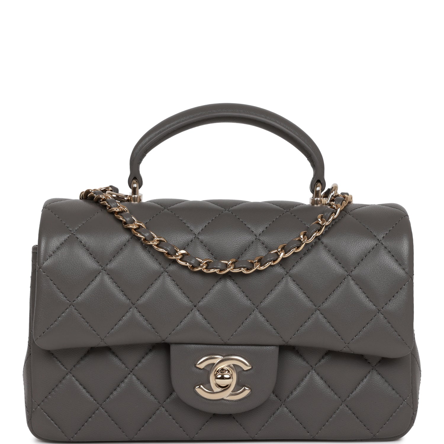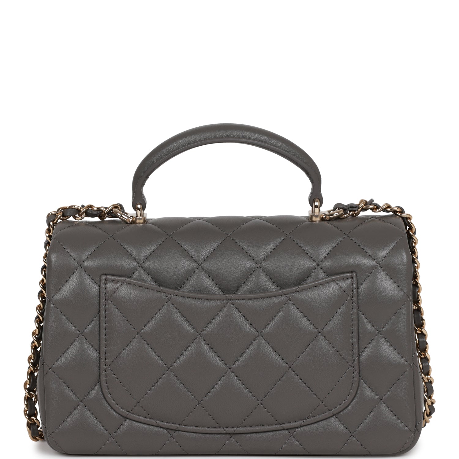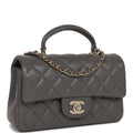 Chanel Mini Rectangular Flap Bag with Top Handle Dark Grey Lambskin Light Gold Hardware