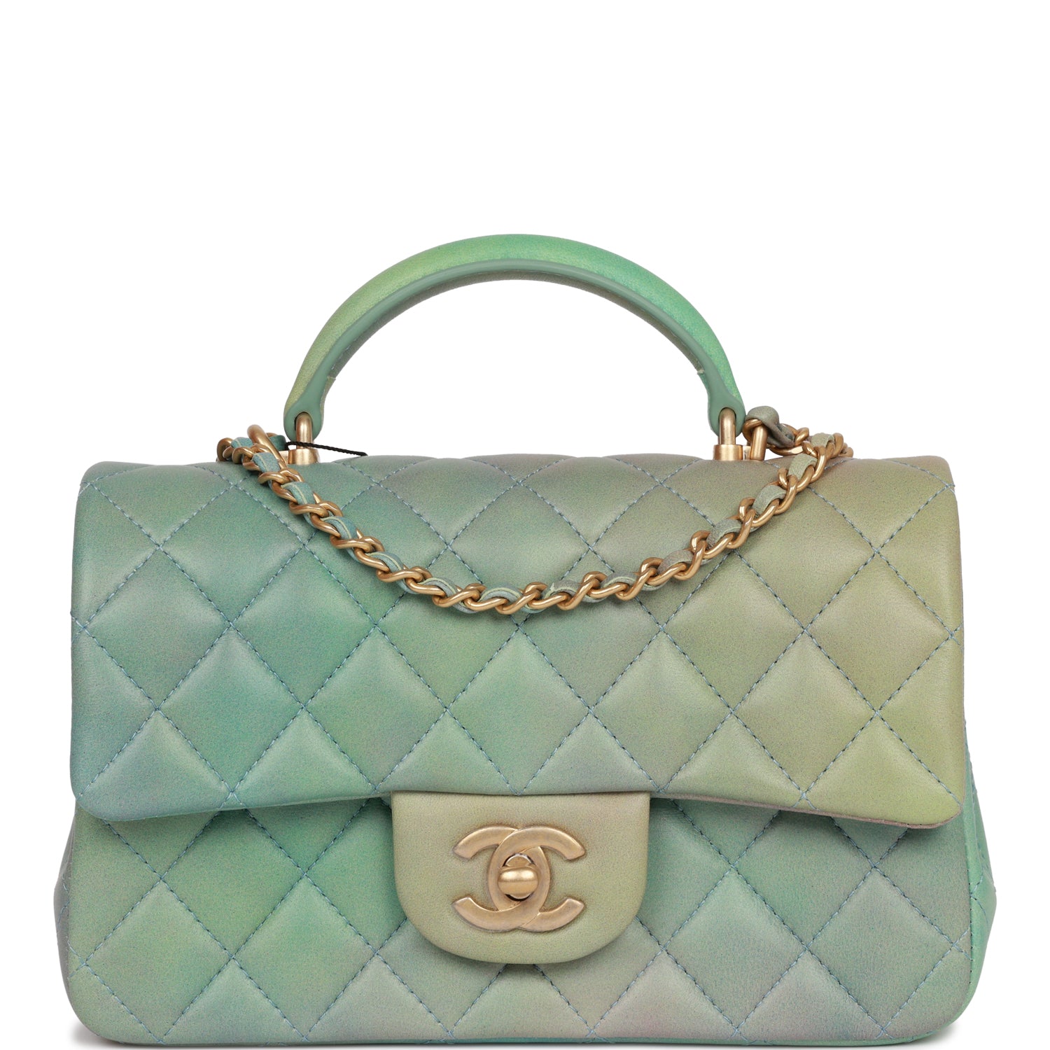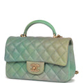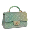 Chanel Mini Rectangular Flap Bag with Top Handle Green Ombre Lambskin Antique Gold Hardware