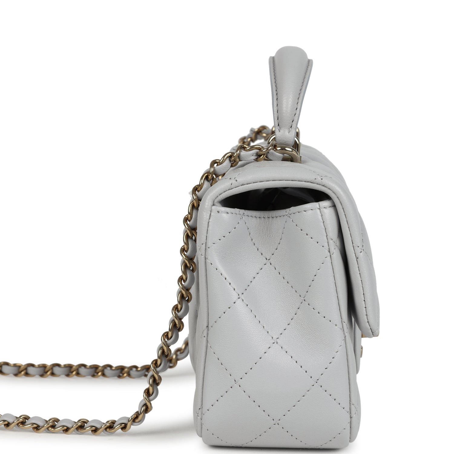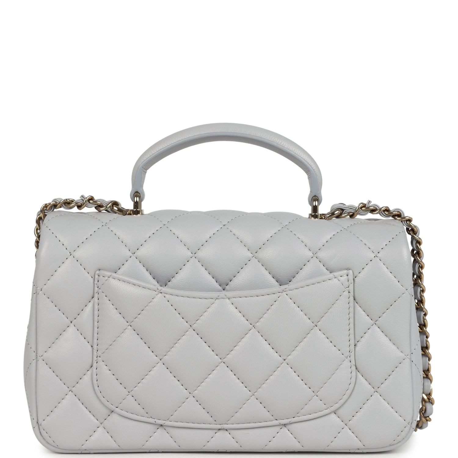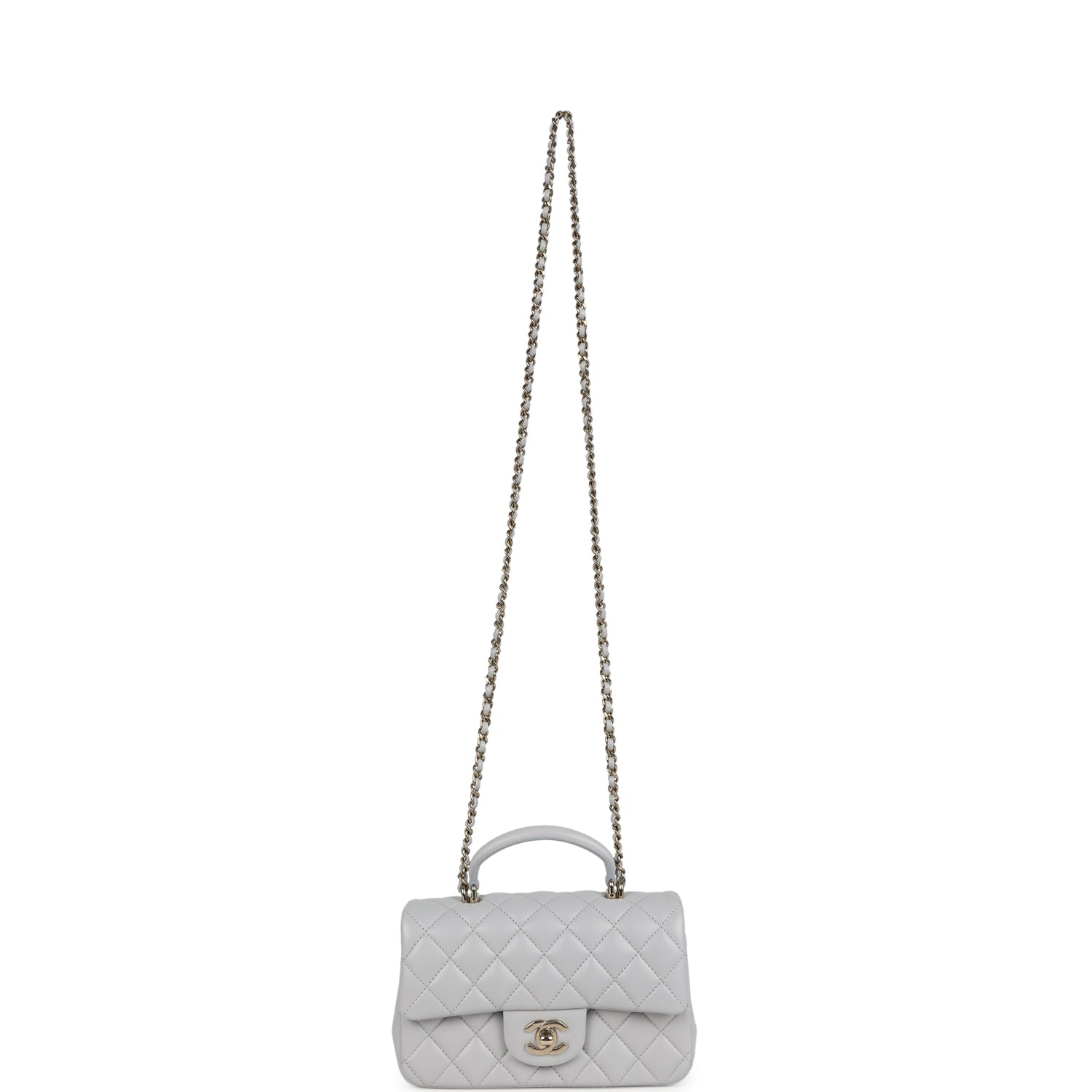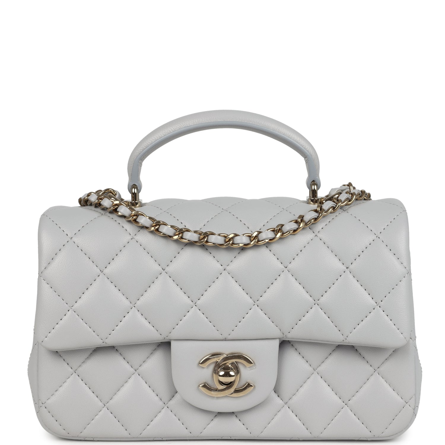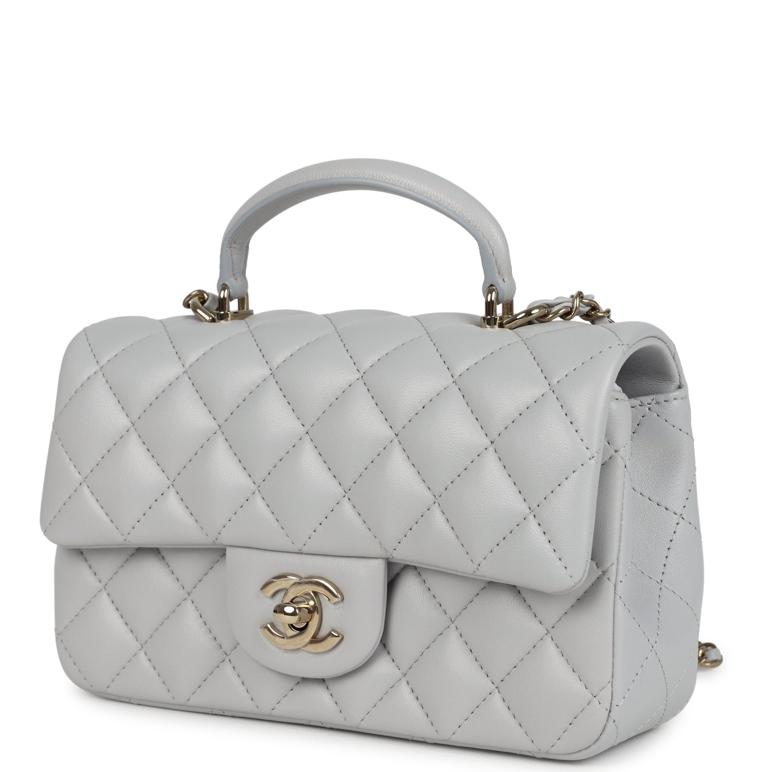 Chanel Mini Rectangular Flap Bag with Top Handle Light Grey Lambskin Light Gold Hardware