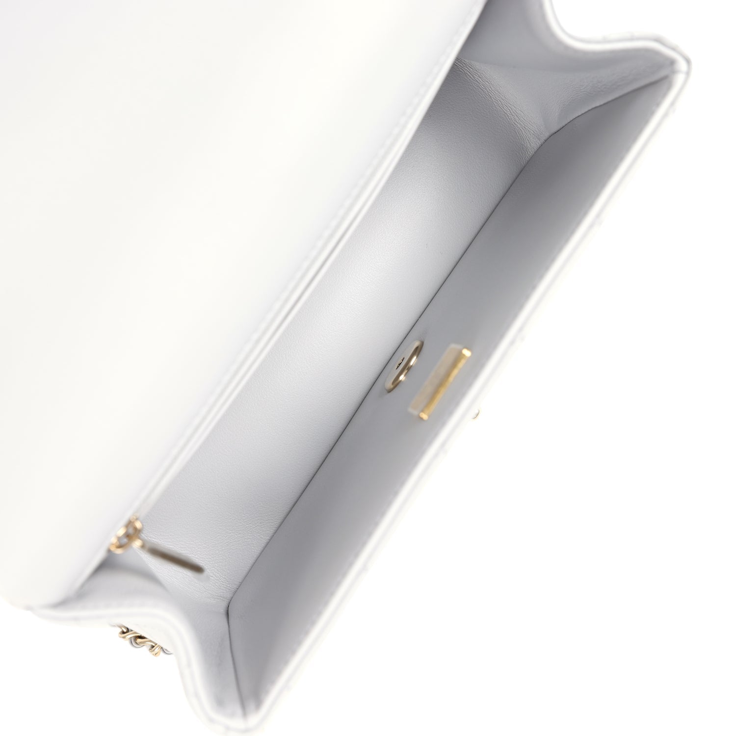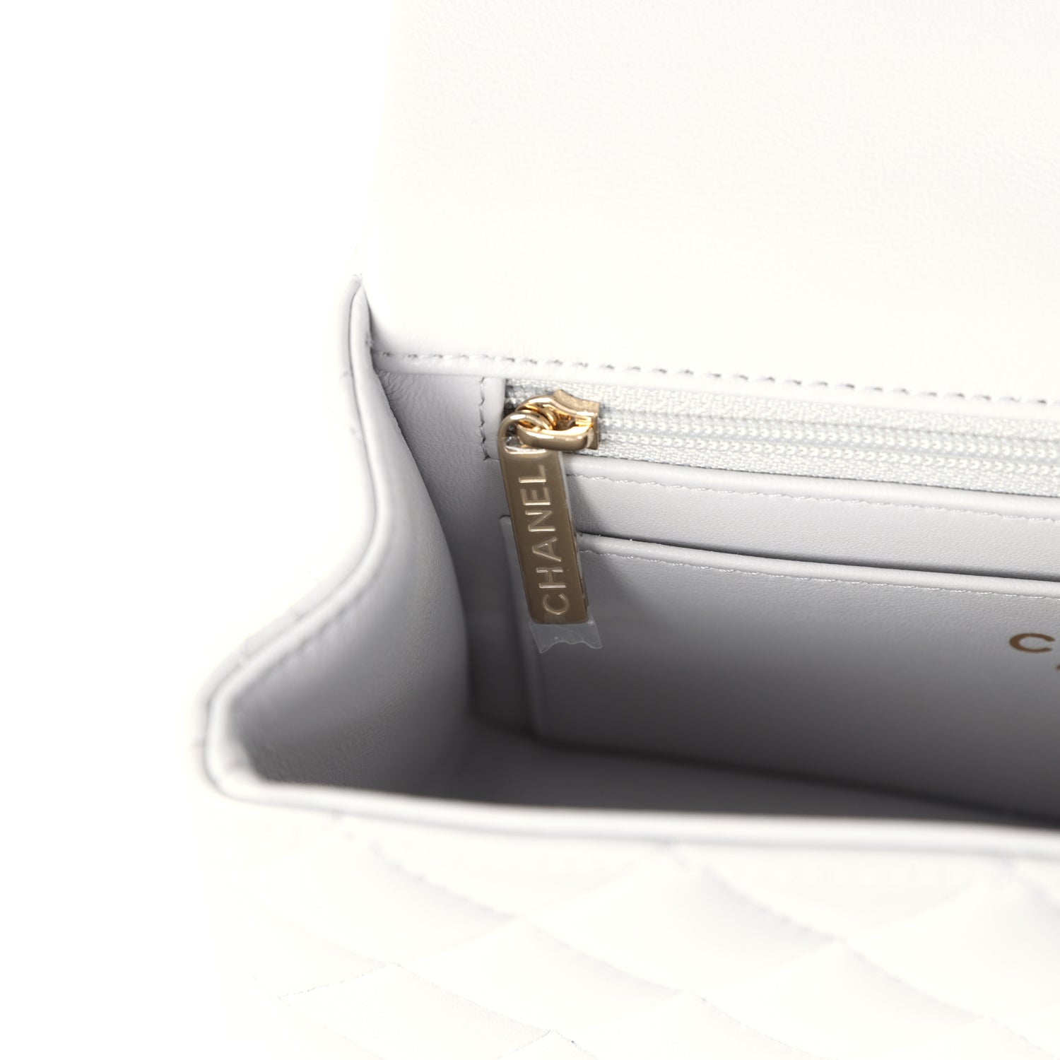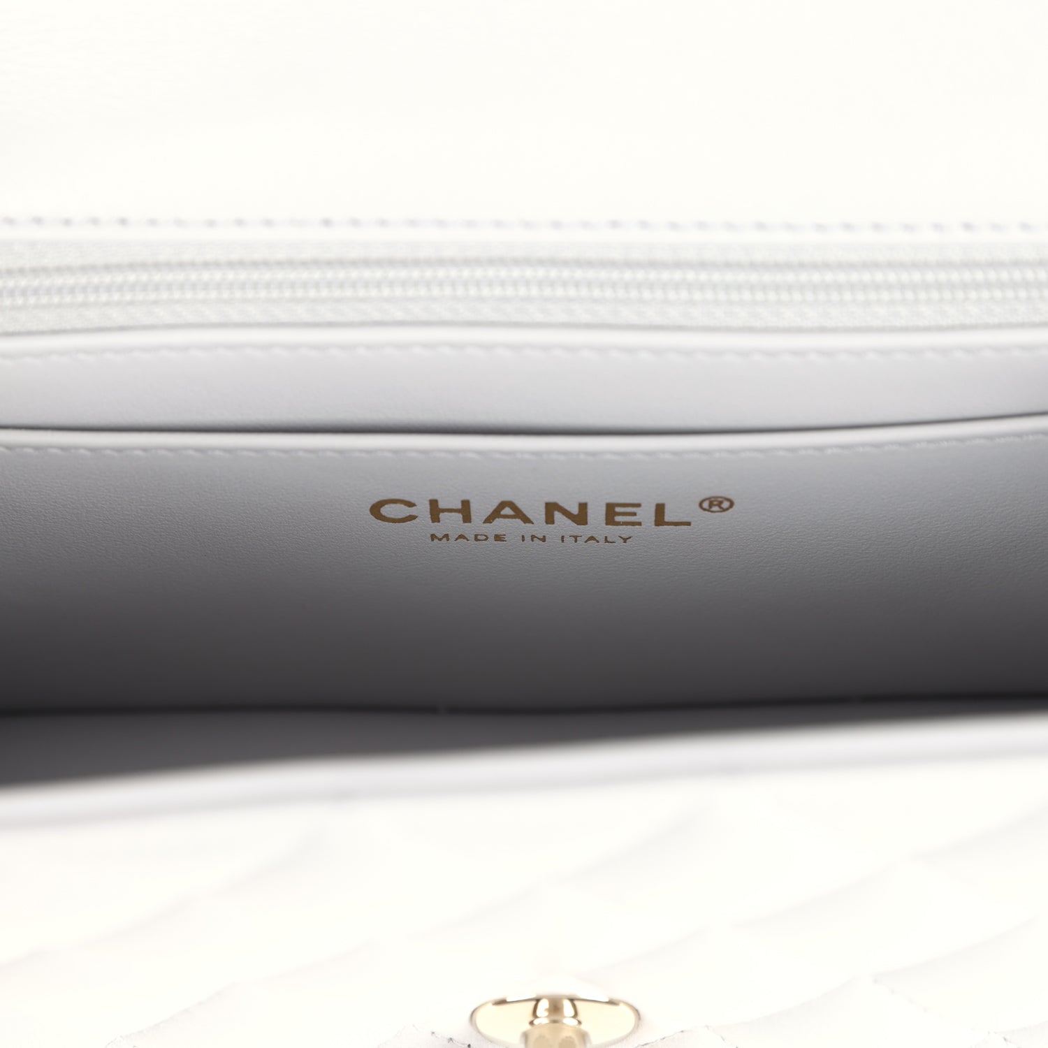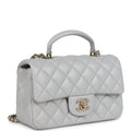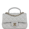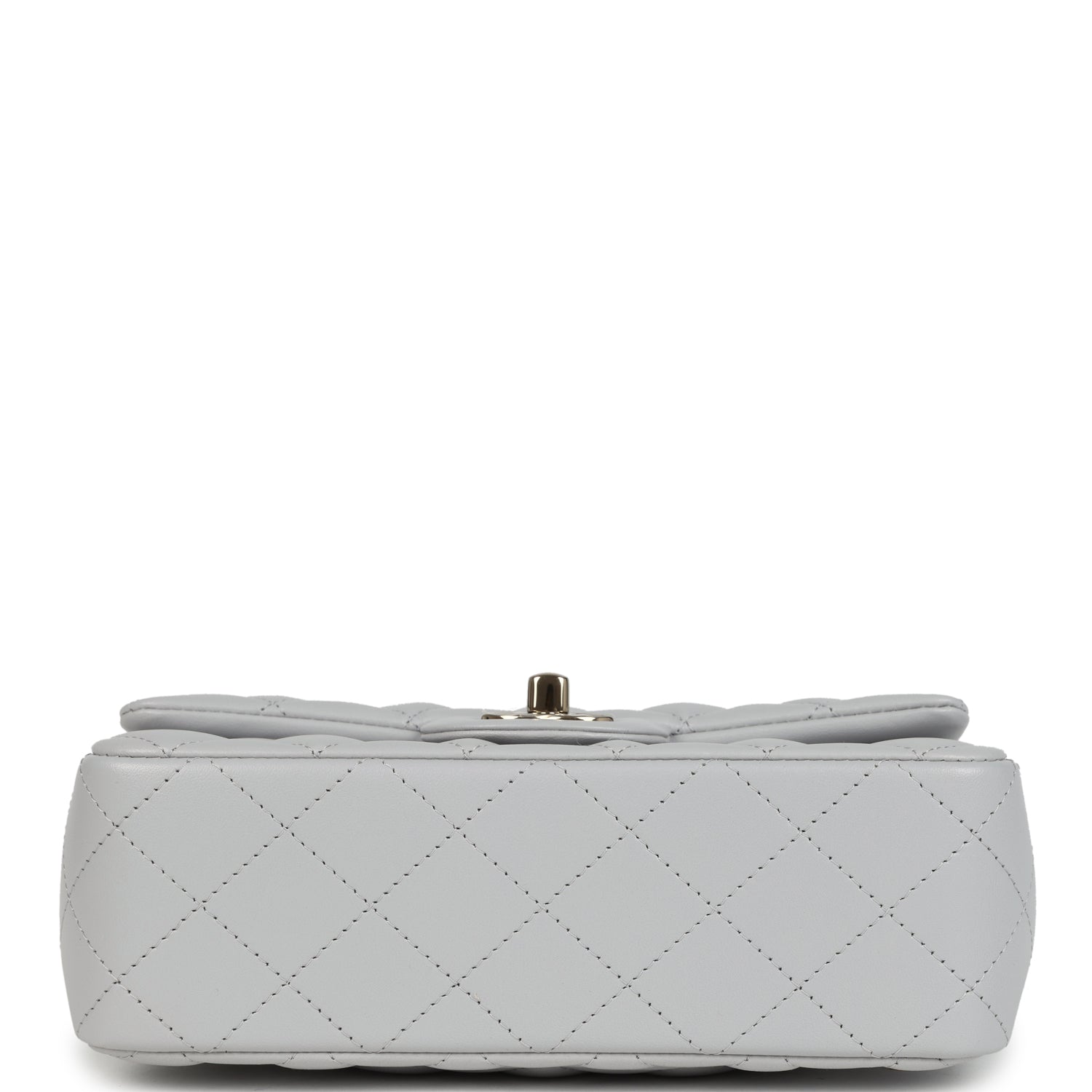 Chanel Mini Rectangular Flap Bag with Top Handle Light Grey Lambskin Light Gold Hardware
