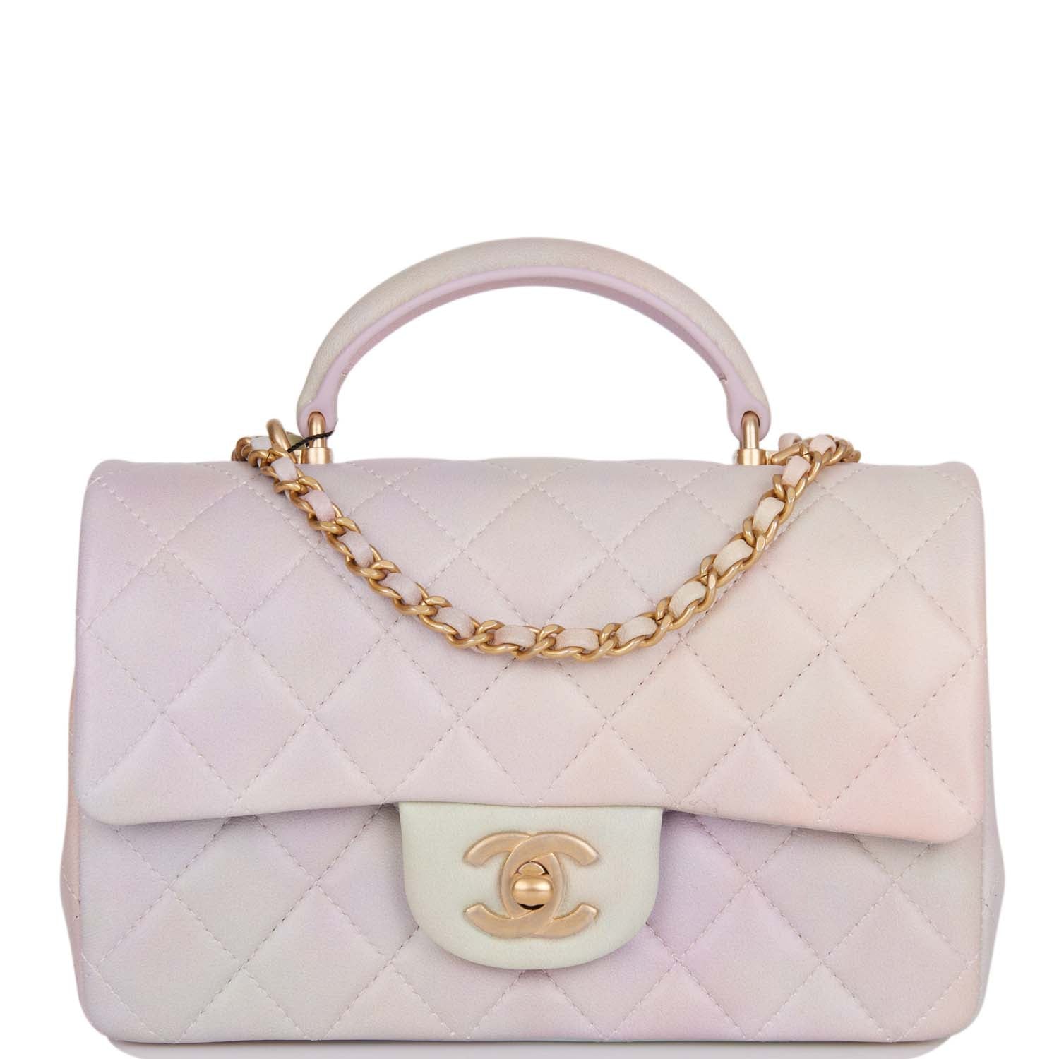 Chanel Mini Rectangular Flap Bag with Top Handle Light Pink Ombre Lambskin Antique Gold Hardware