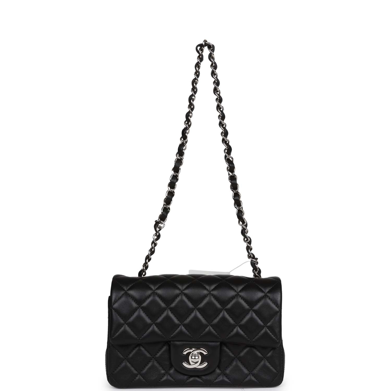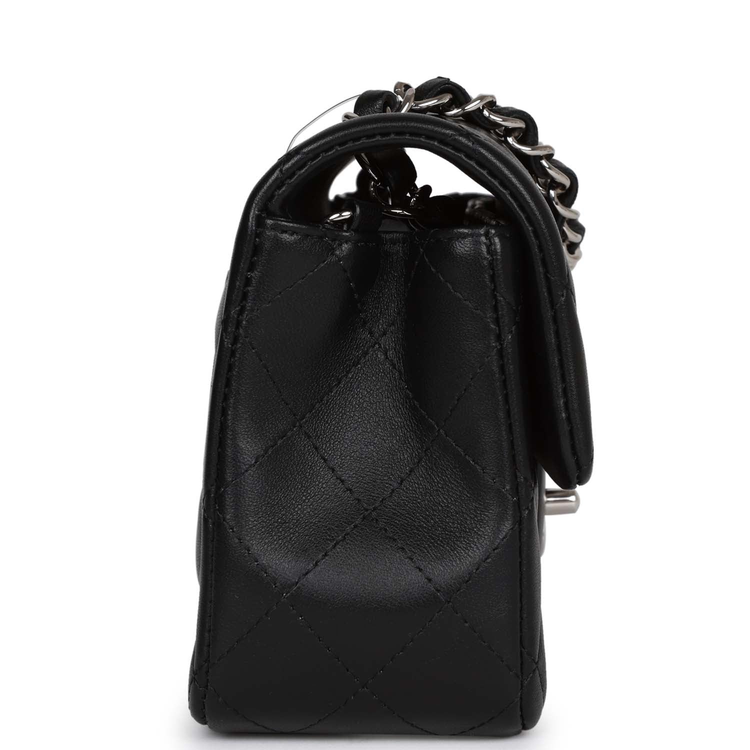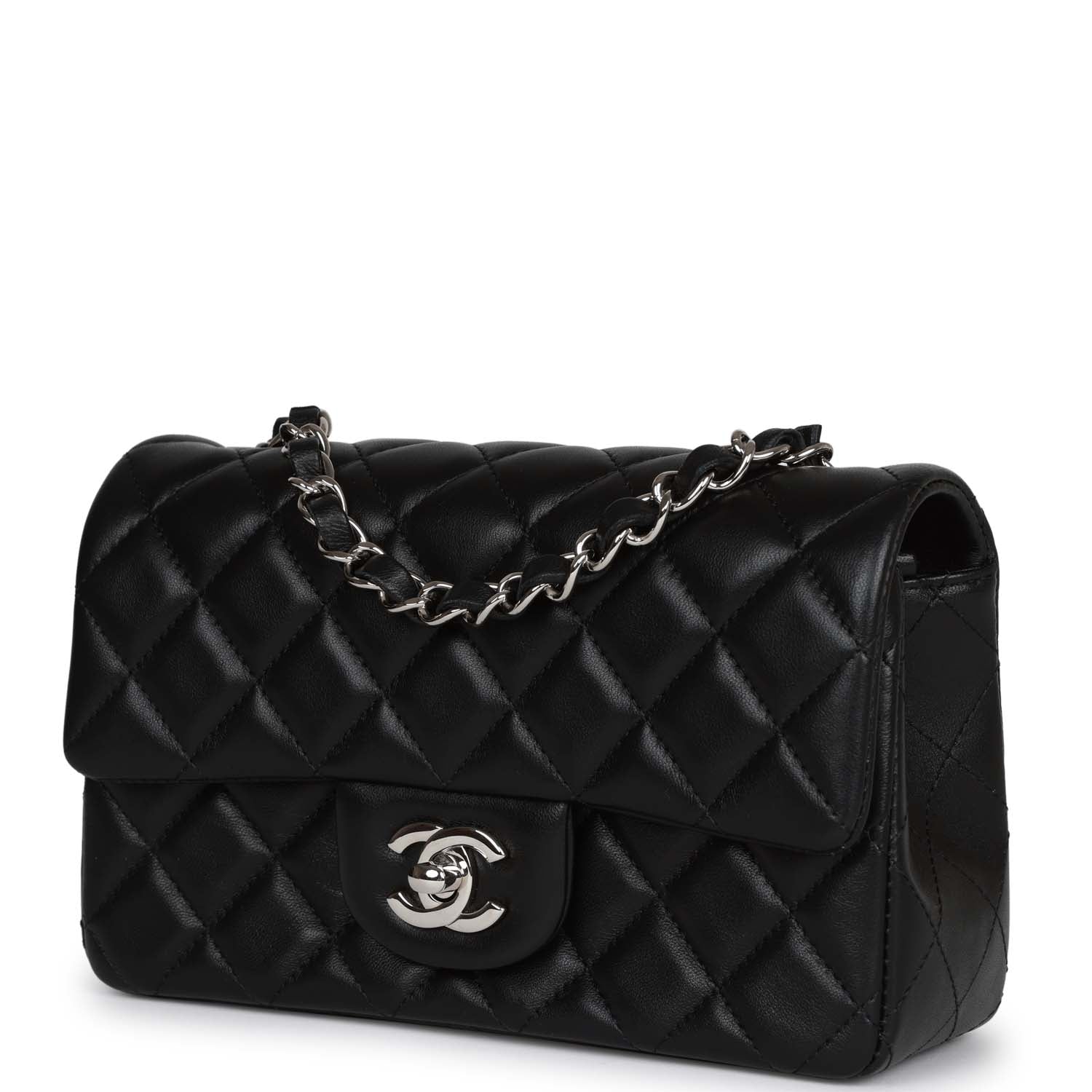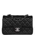 Chanel Mini Rectangular Flap Bag Black Lambskin Silver Hardware