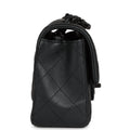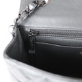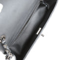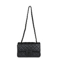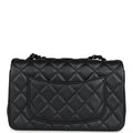 This Mini Classic Rectangular Flap Bag is in So Black Iridescent lambskin with black hardware and features a front flap with CC turnlock closure, half moon back pocket and interwoven black chain link and black leather shoulder/crossbody strap.