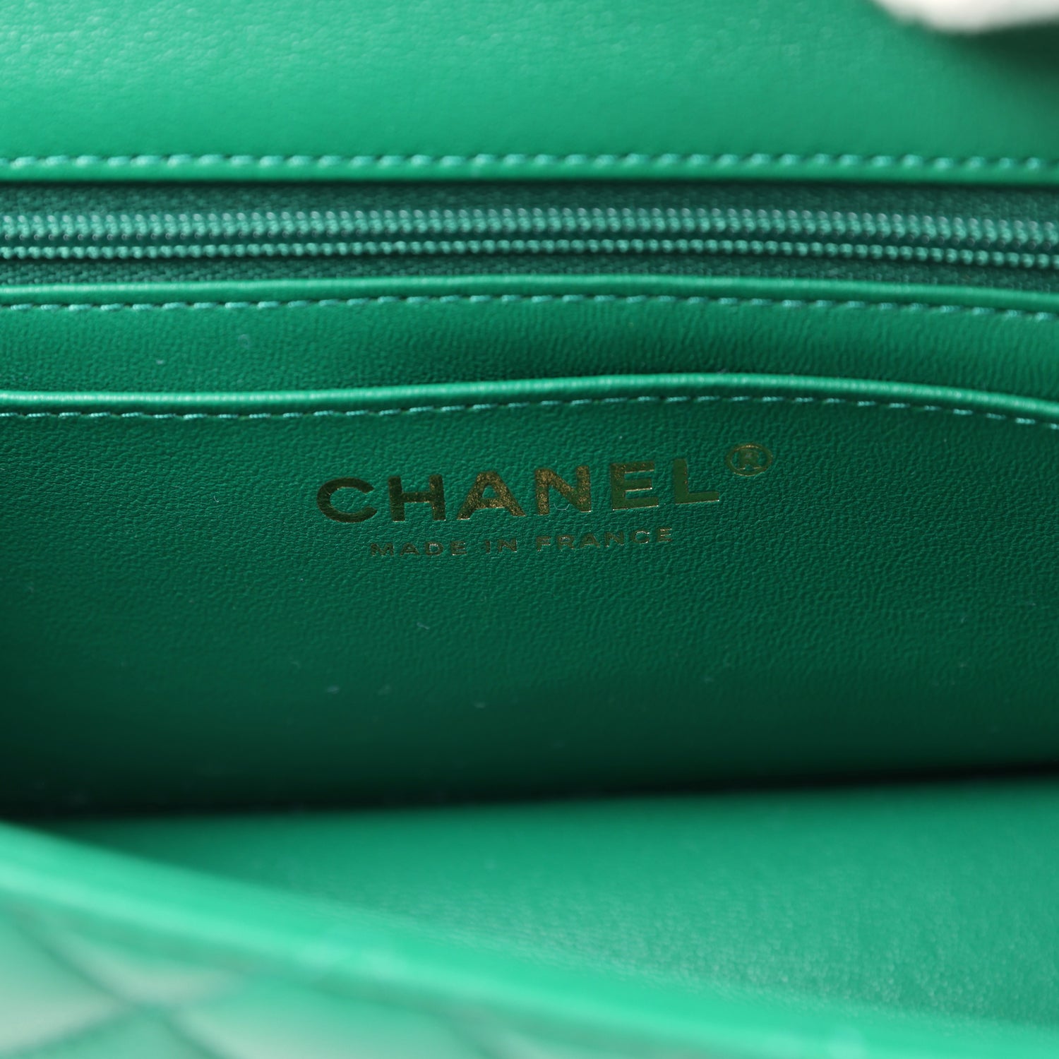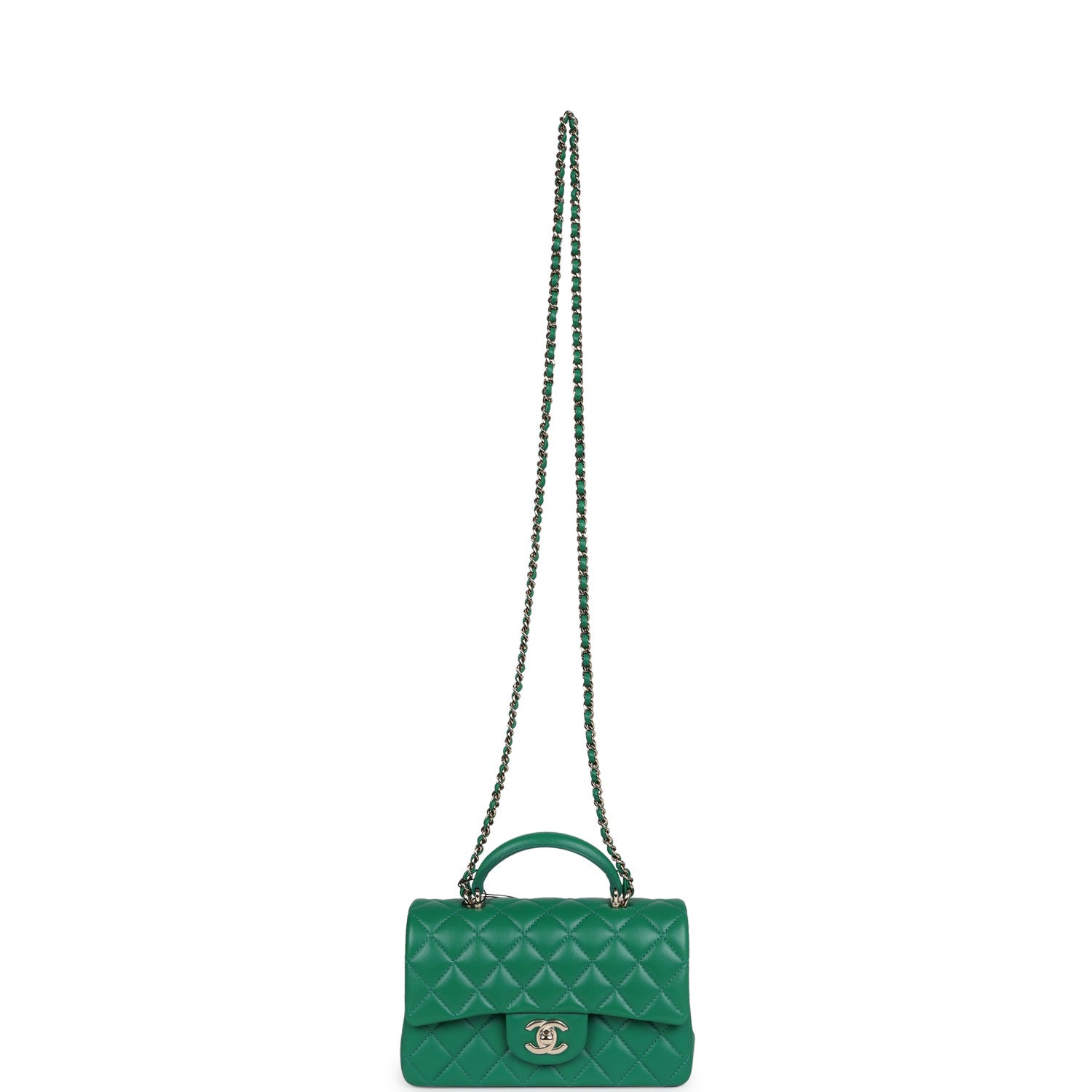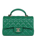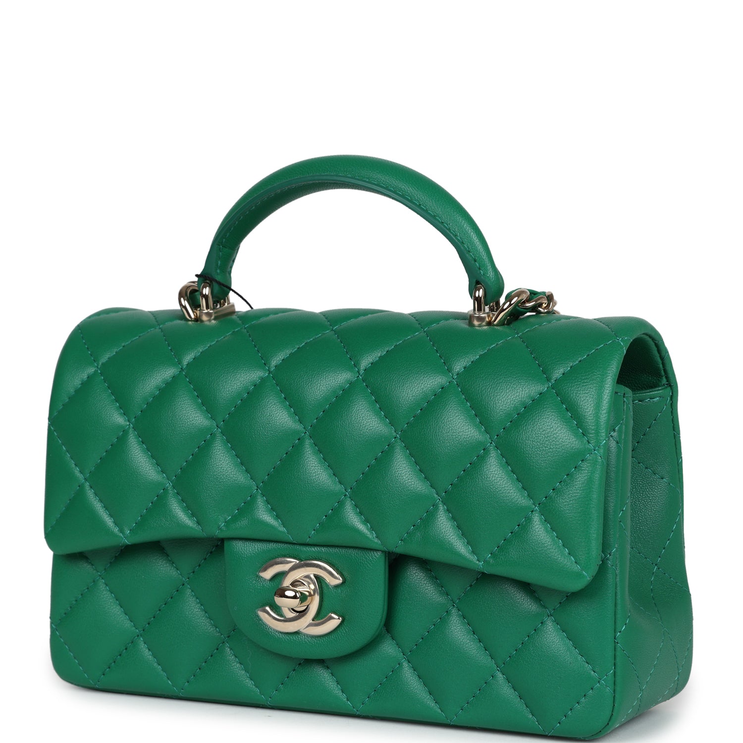 Chanel Mini Rectangular Flap with Top Handle Dark Green Lambskin Light Gold Hardware