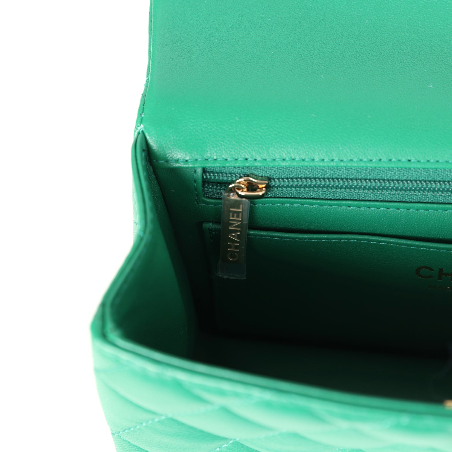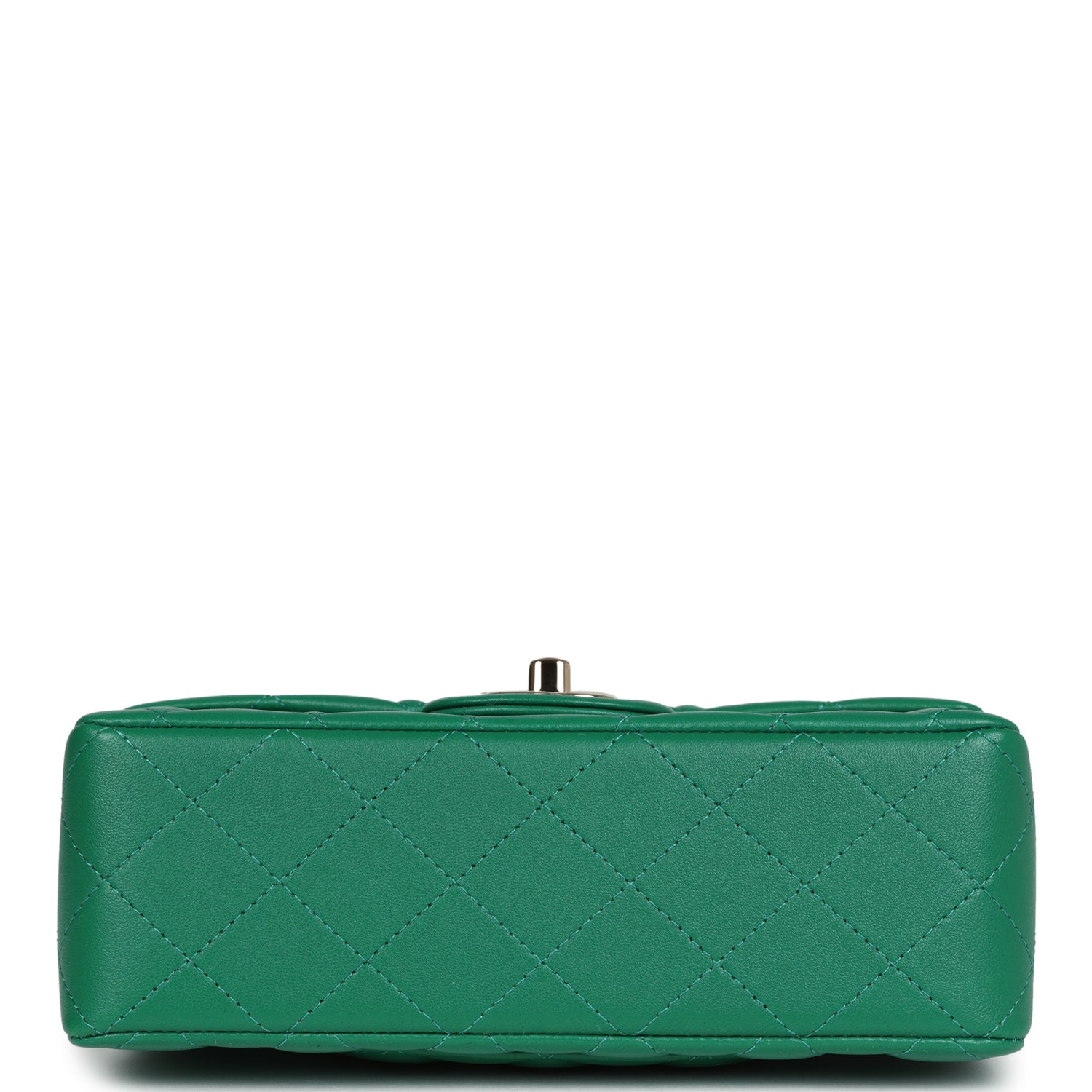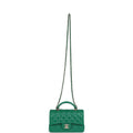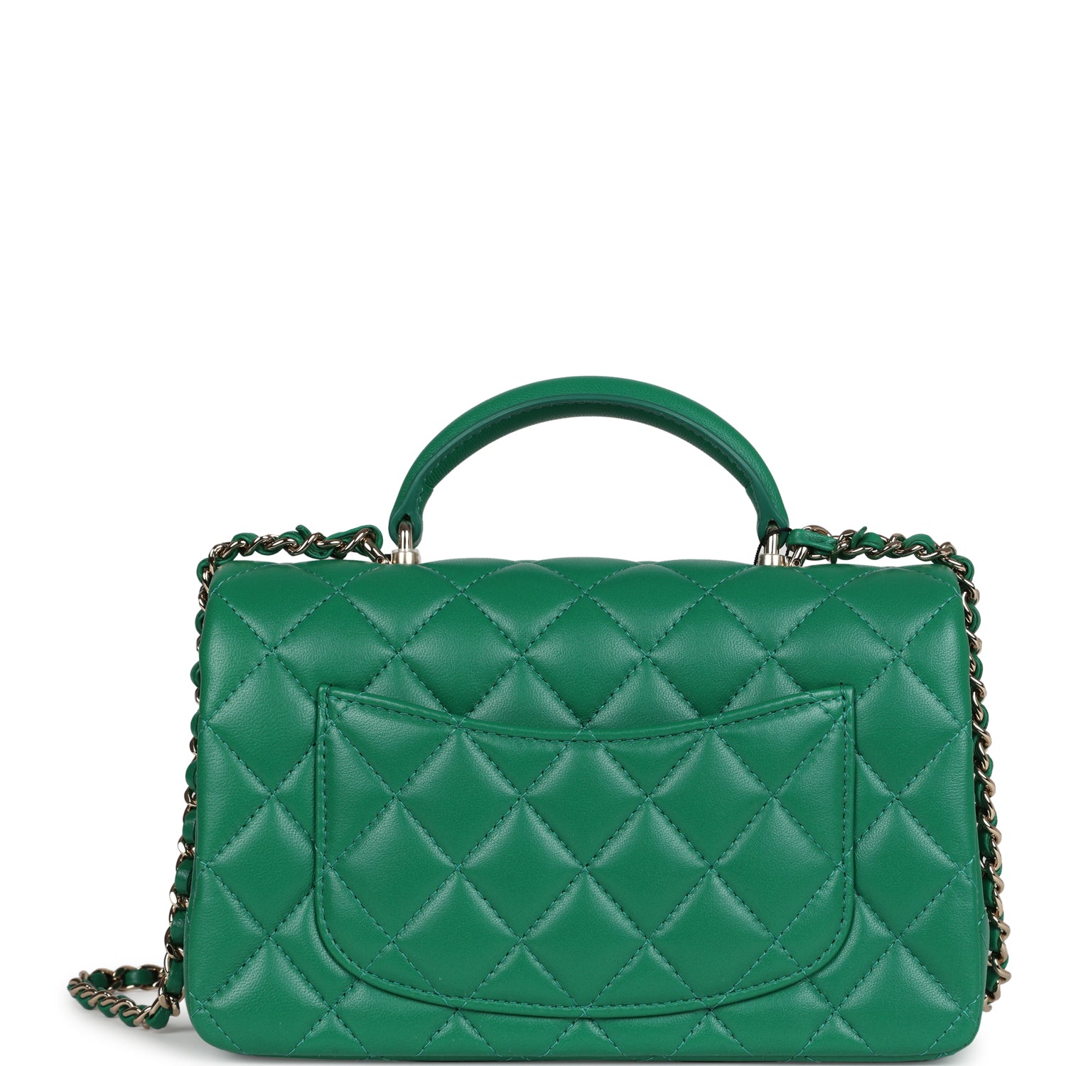 Chanel Mini Rectangular Flap with Top Handle Dark Green Lambskin Light Gold Hardware