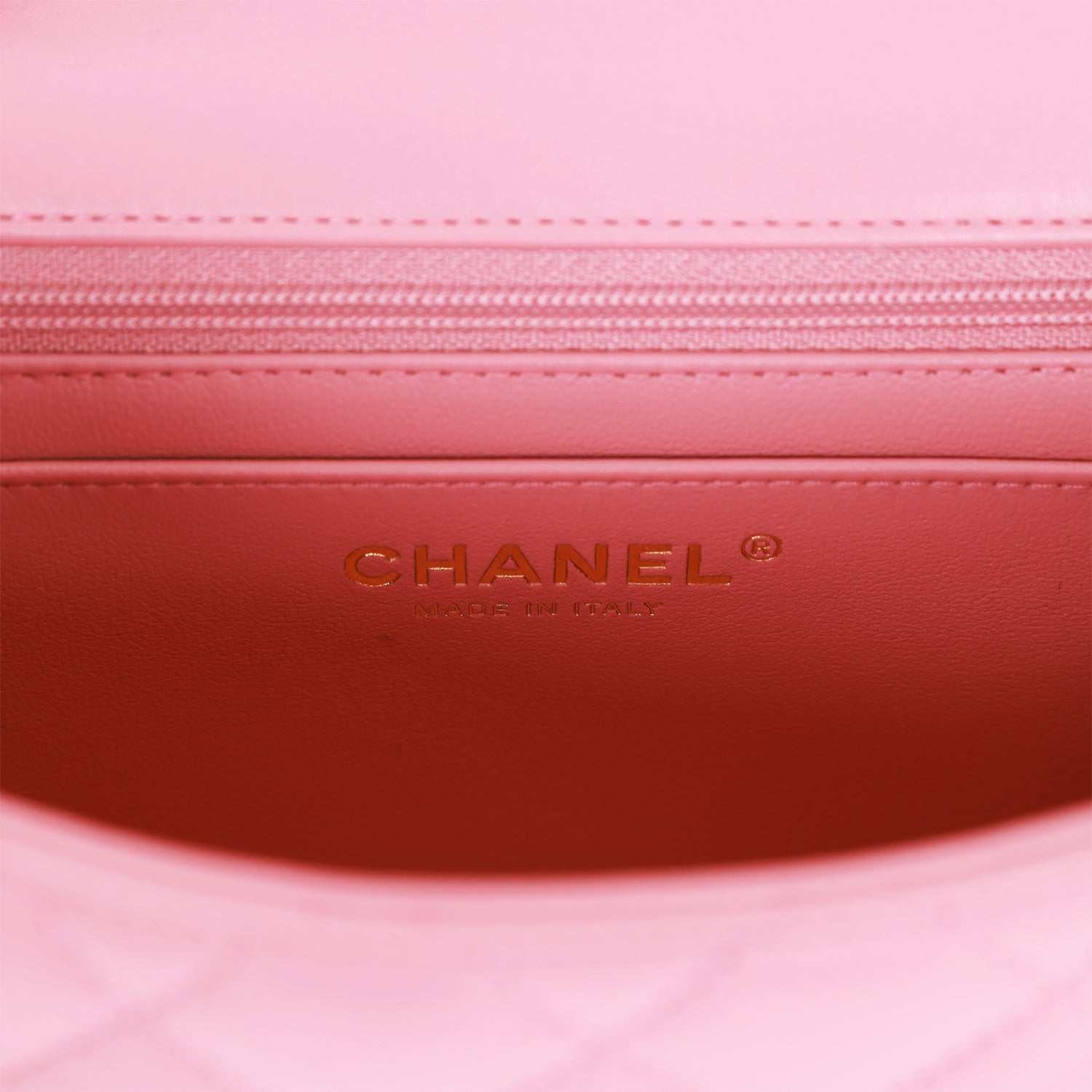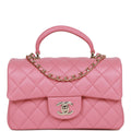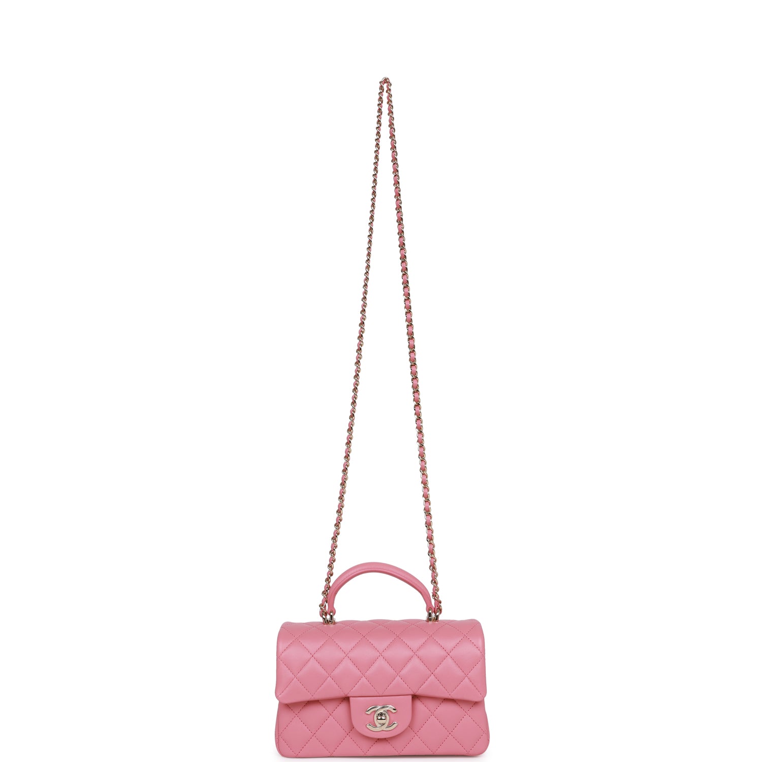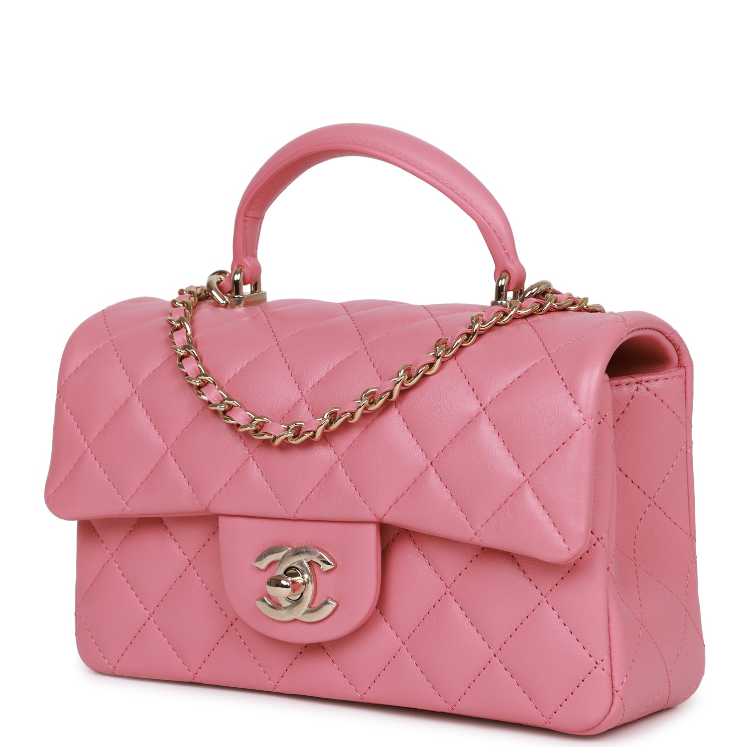 Chanel Mini Rectangular Flap with Top Handle Dark Pink Lambskin Light Gold Hardware