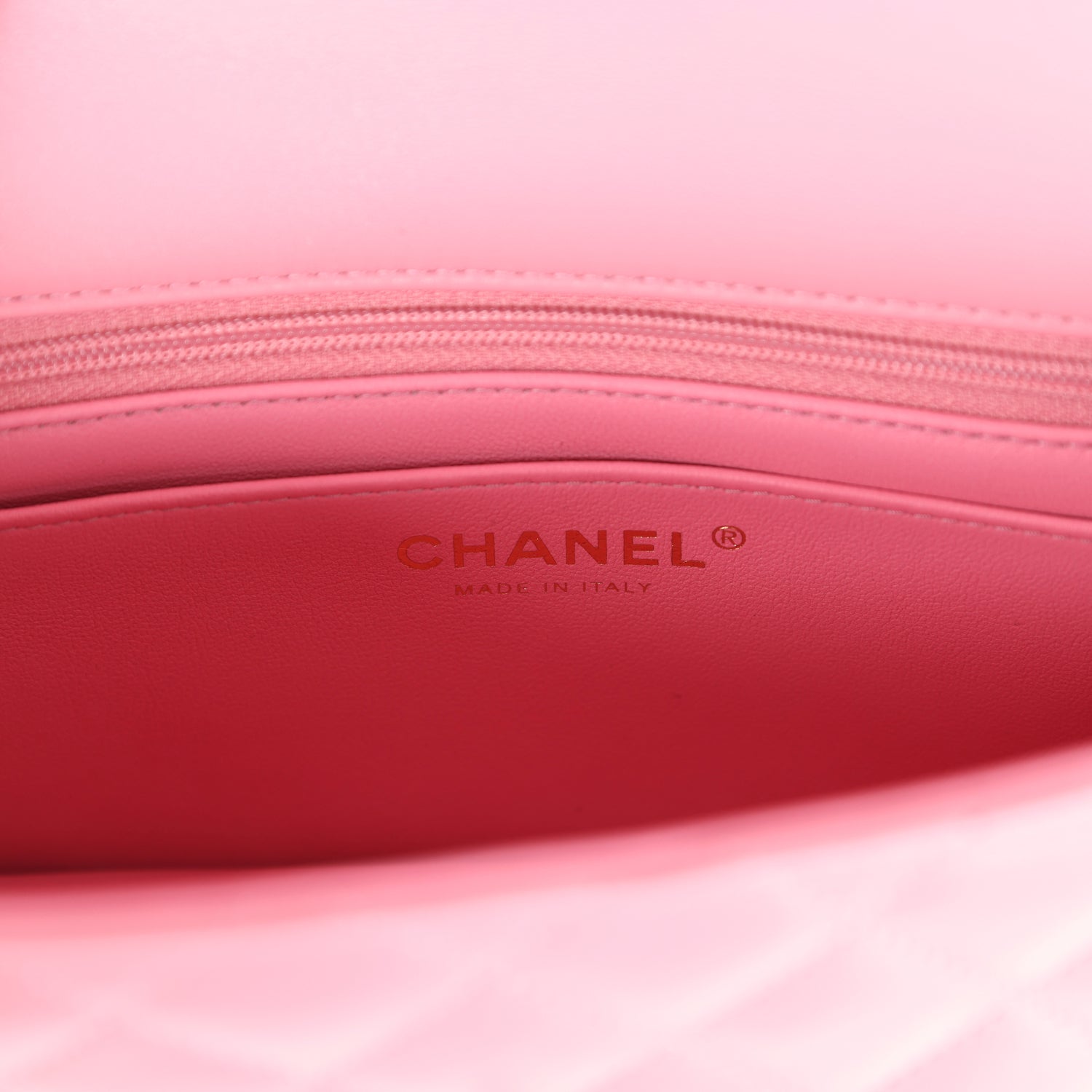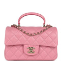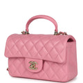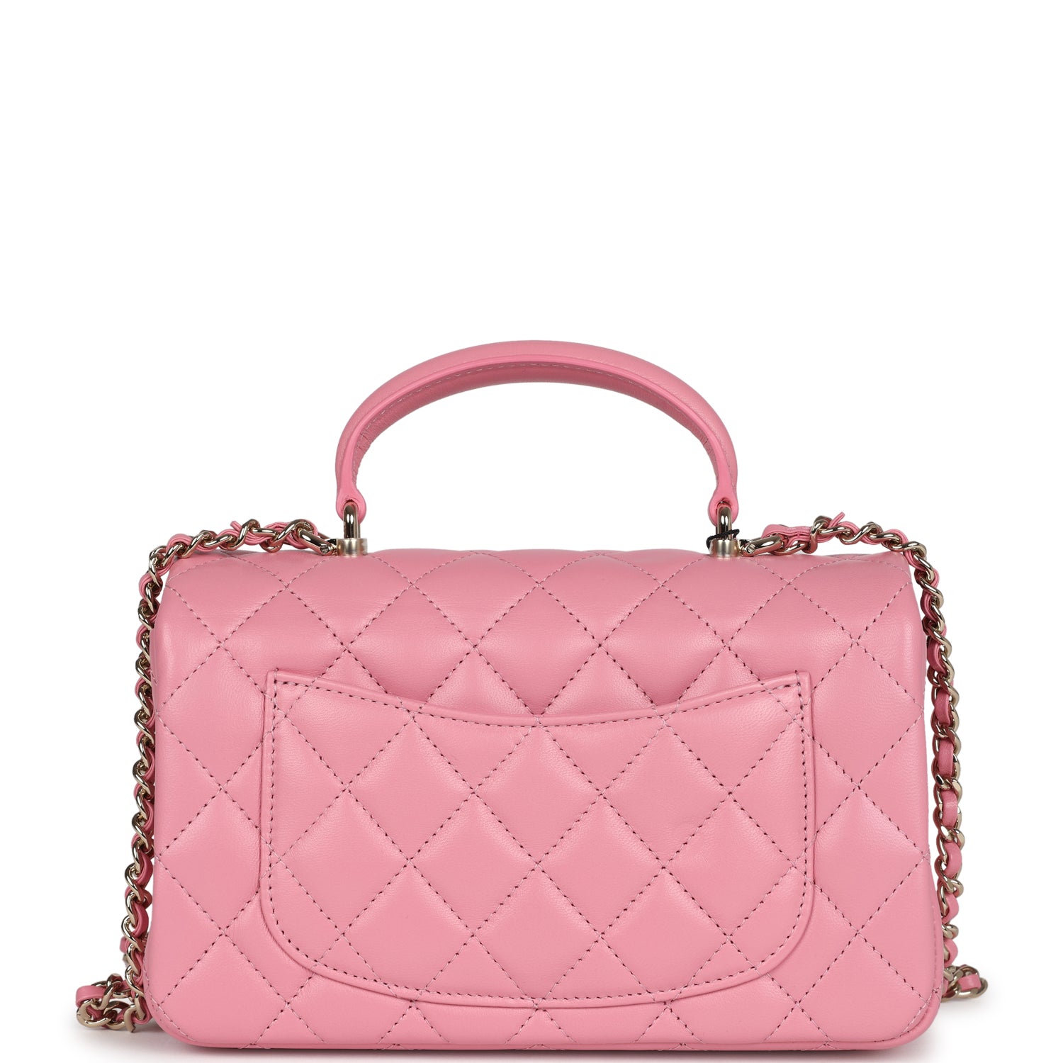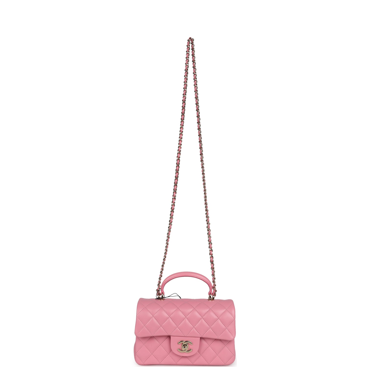 Chanel Mini Rectangular Flap with Top Handle Pink Lambskin Light Gold Hardware