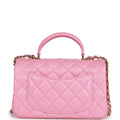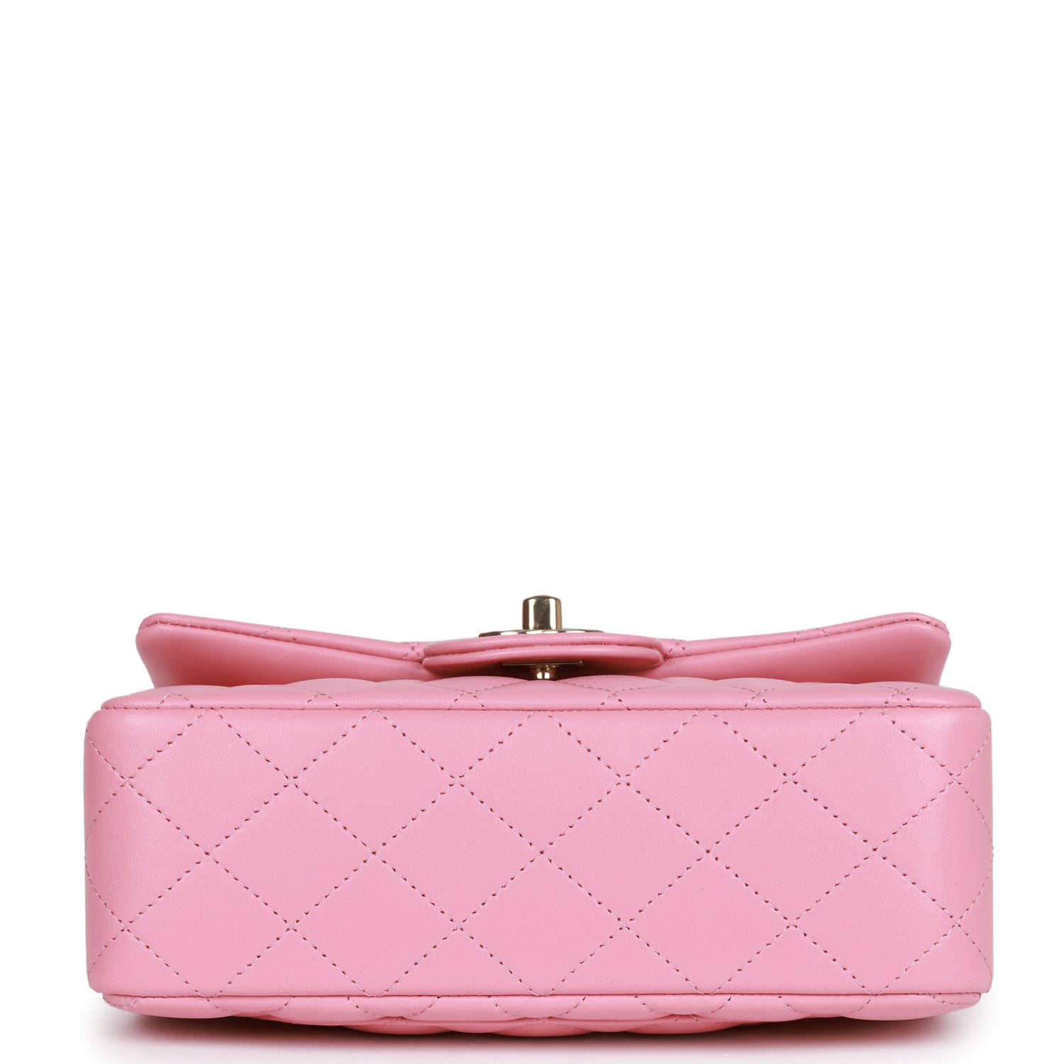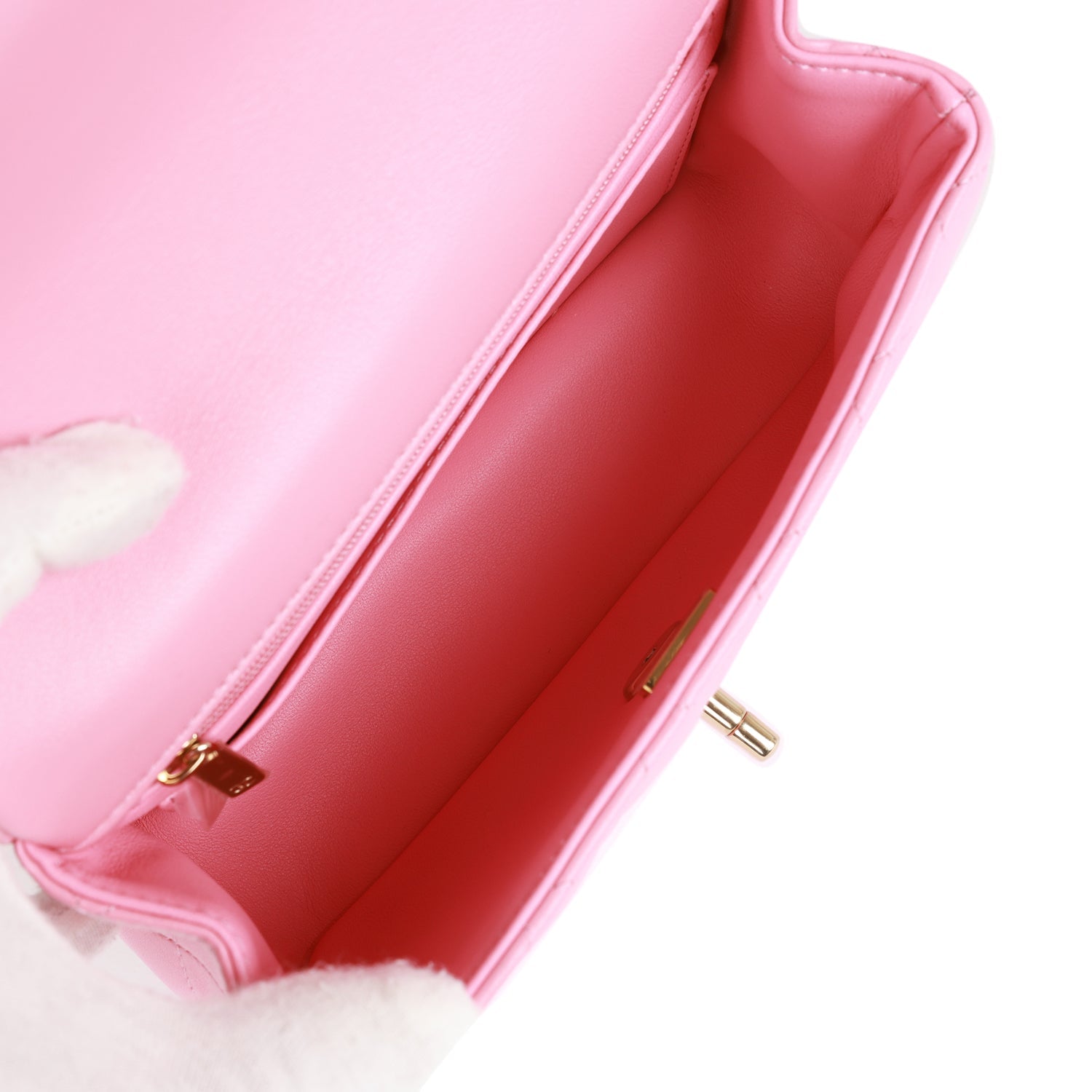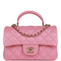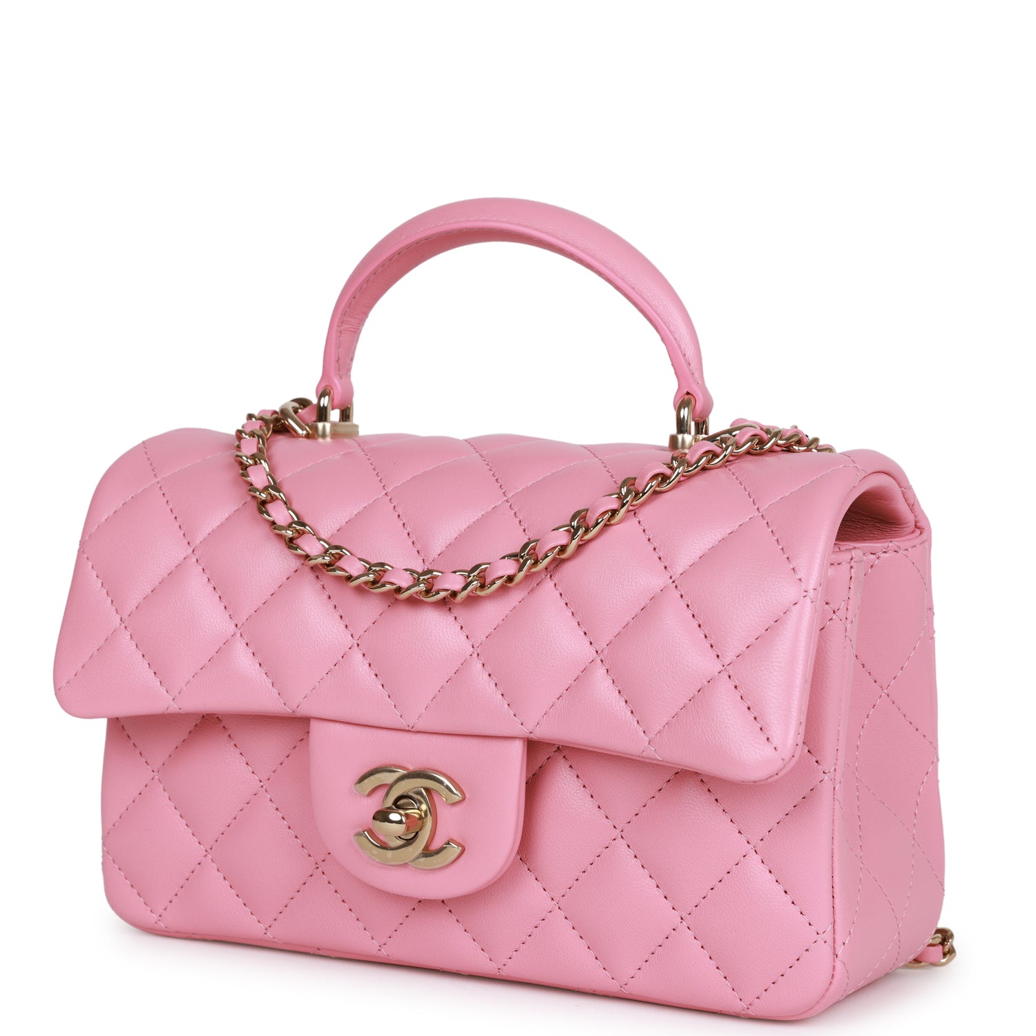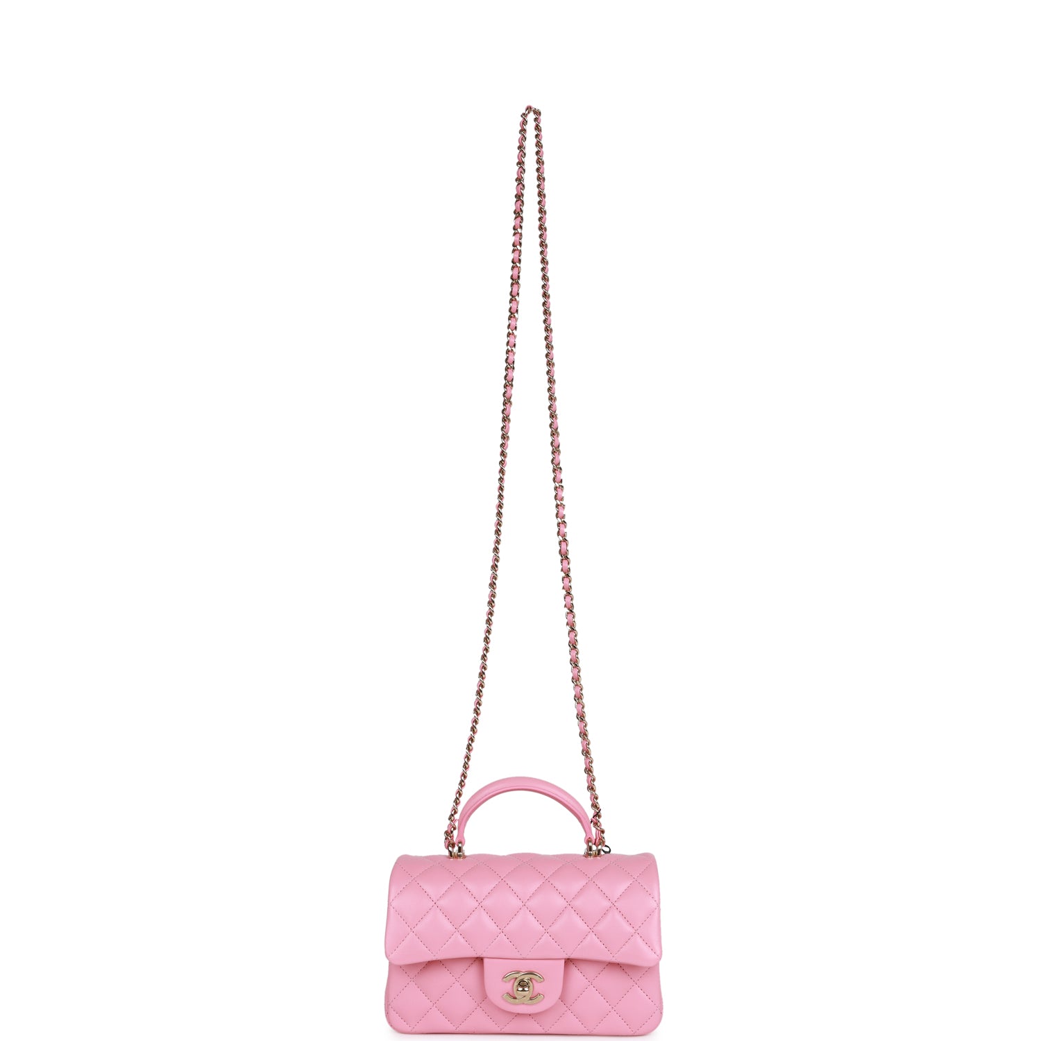 Chanel Mini Rectangular Flapbag with Top Handle Pink Lambskin Light Gold Hardware