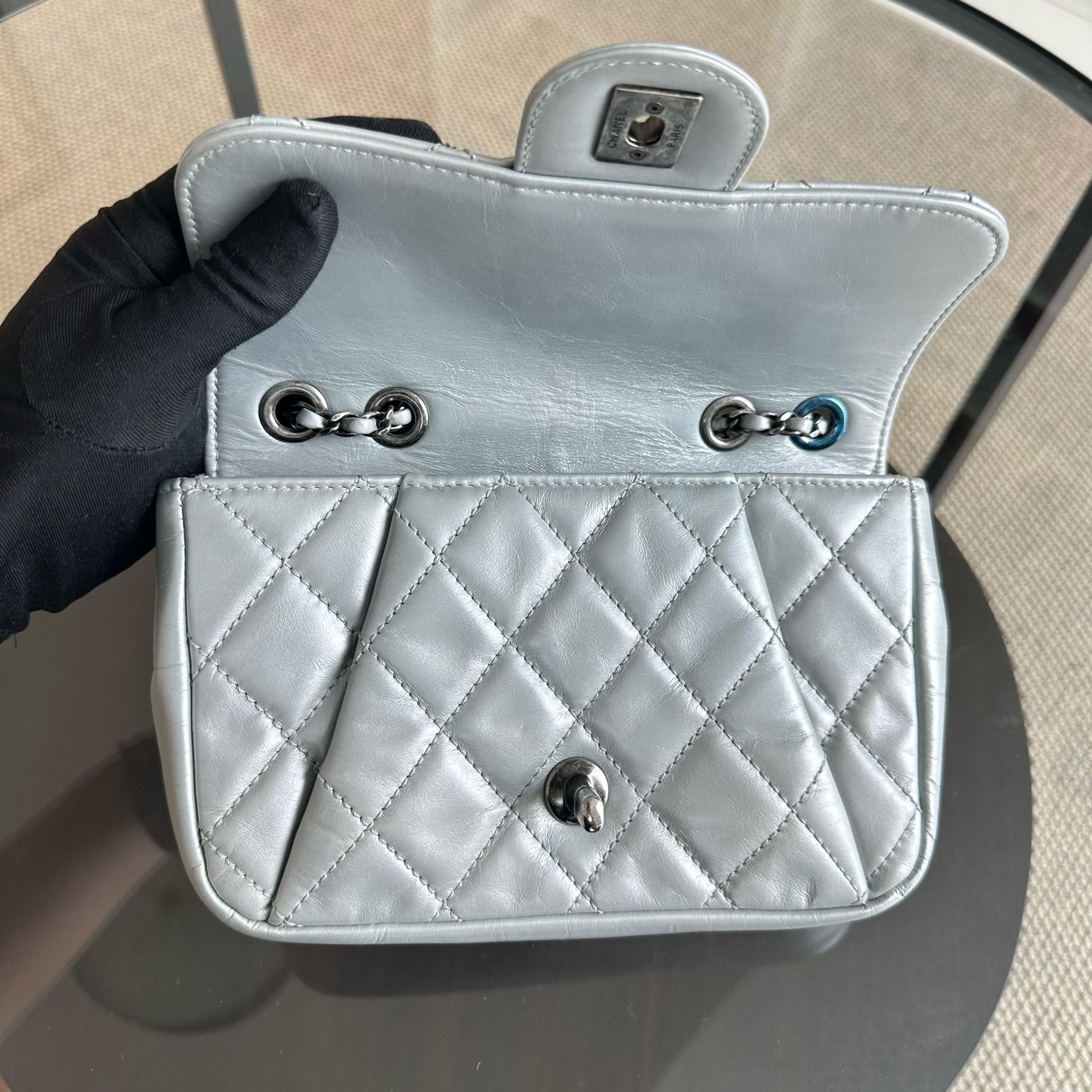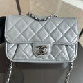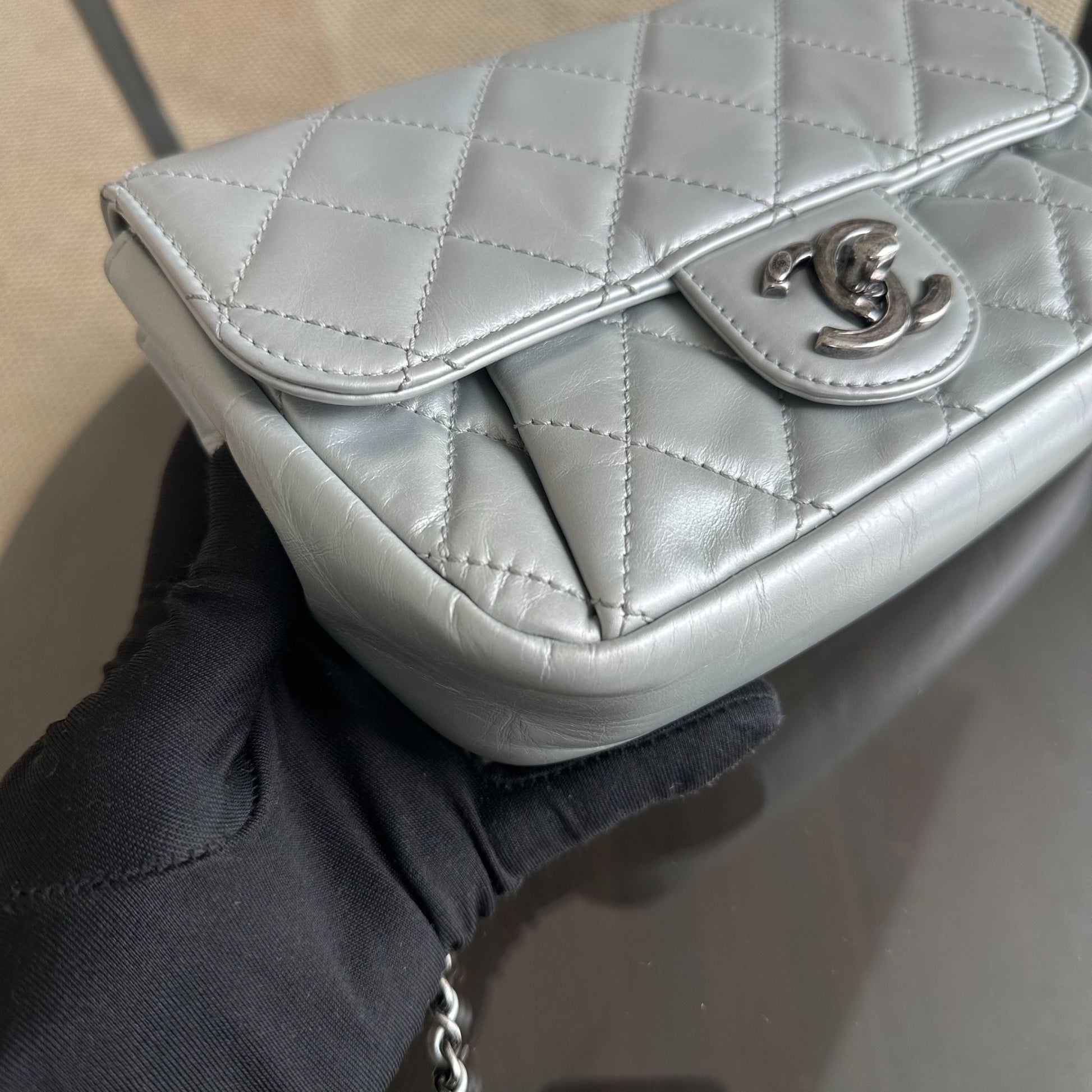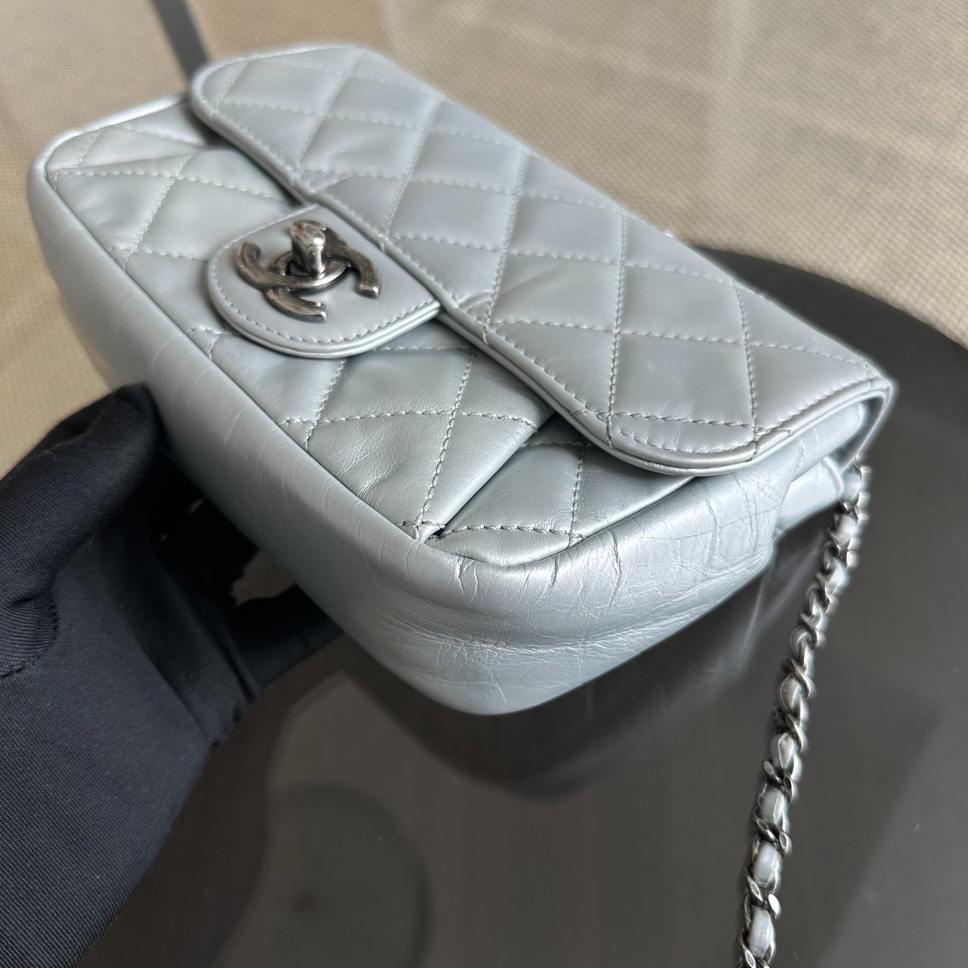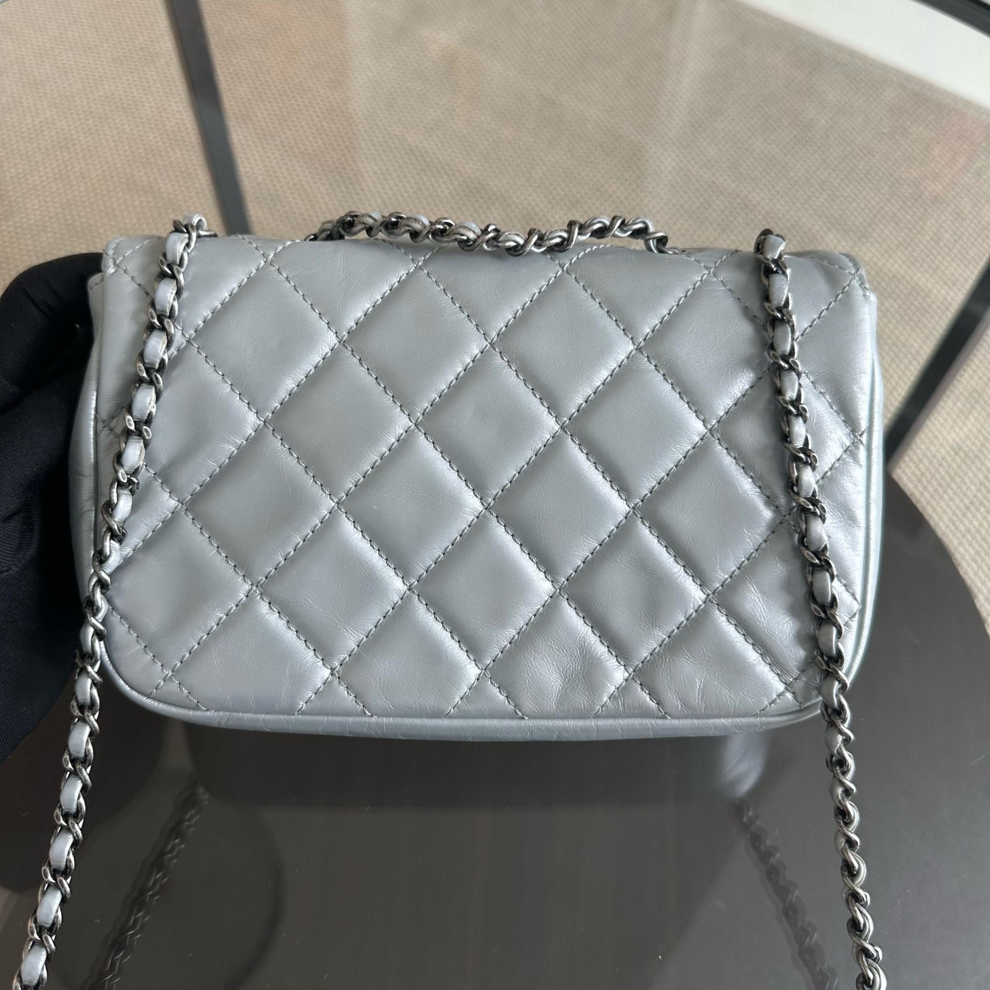 Chanel Mini Rectangular Flap - Plated Chain Seasonal Flap Quilted Calfskin Silver SHW No 21