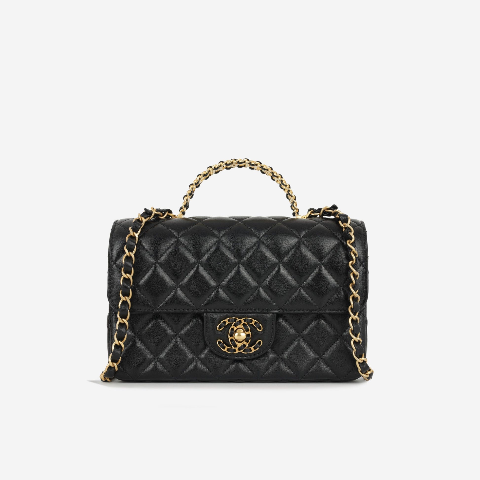 Chanel Mini Rectangular Strass Top Handle Black Lambskin Gold Hardware