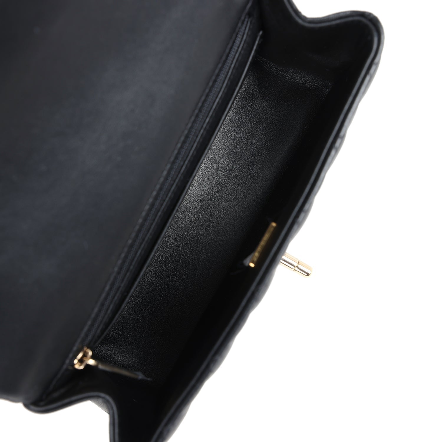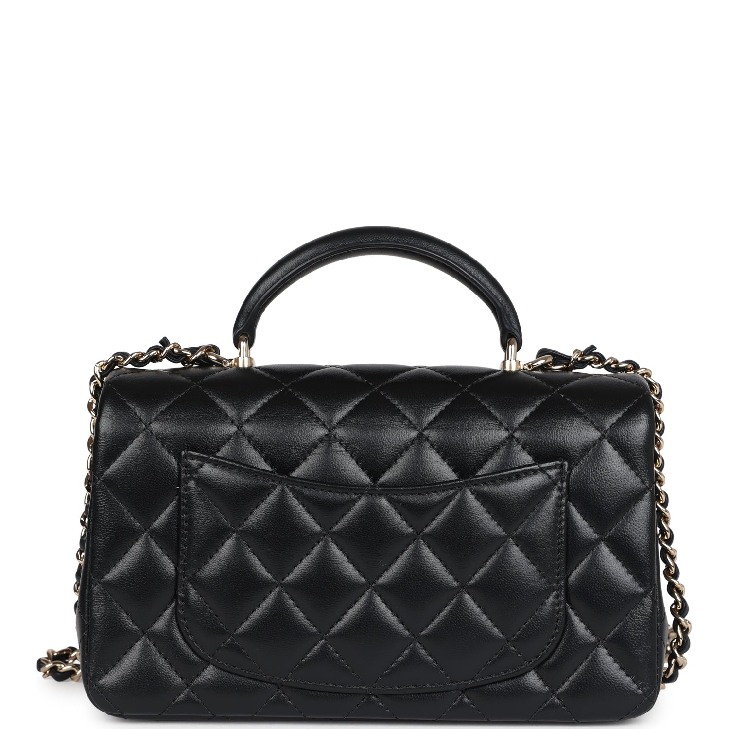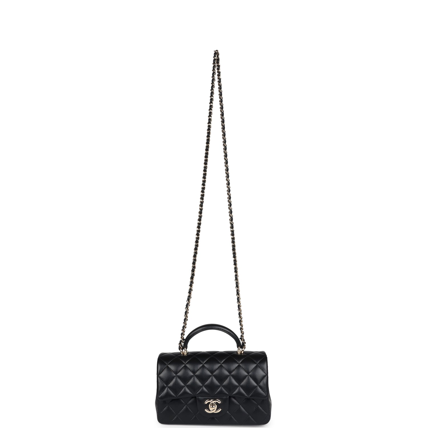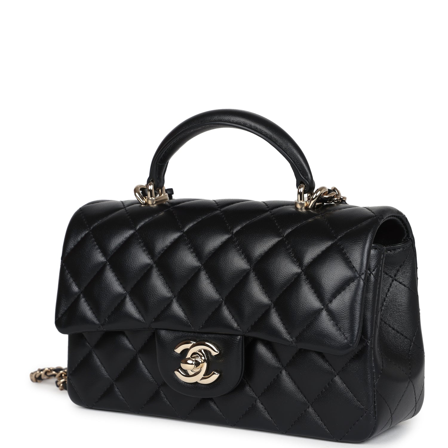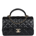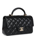 Chanel Mini Rectangular Top Handle Flap Bag Black Lambskin Light Gold Hardware