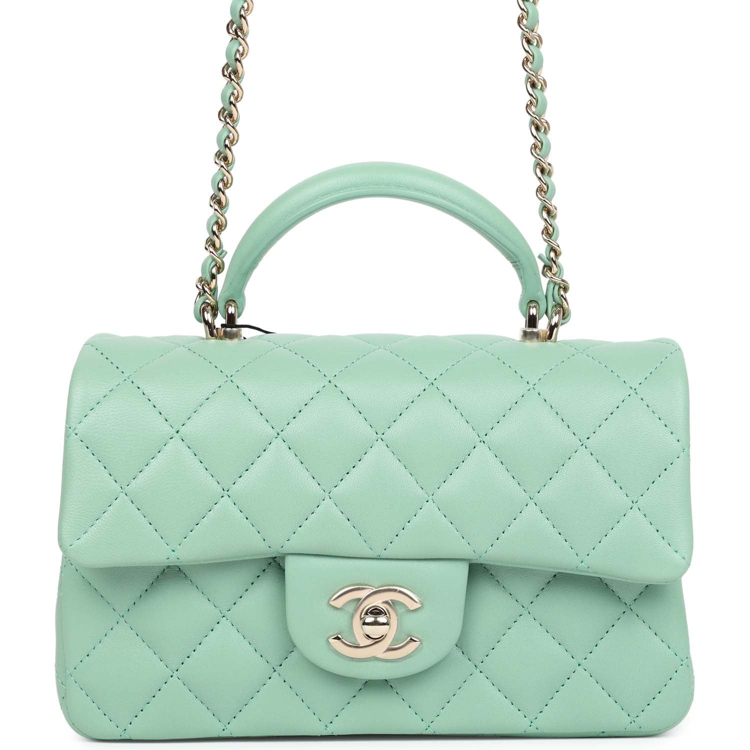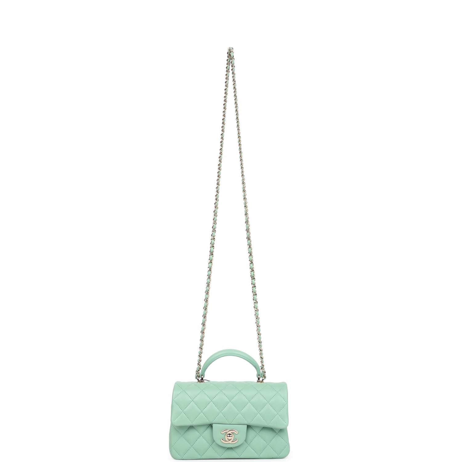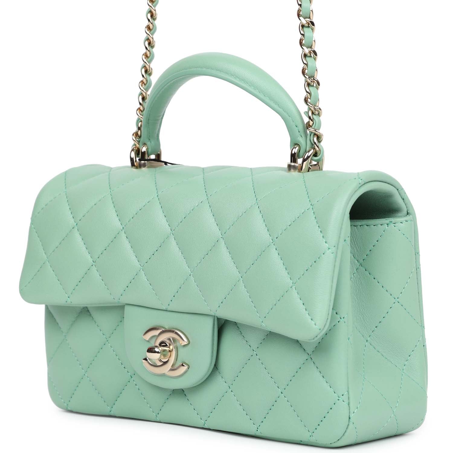 Chanel Mini Rectangular Top Handle Flap Bag Light Green Lambskin Light Gold Hardware