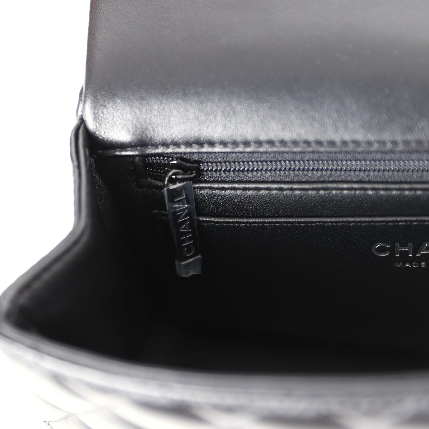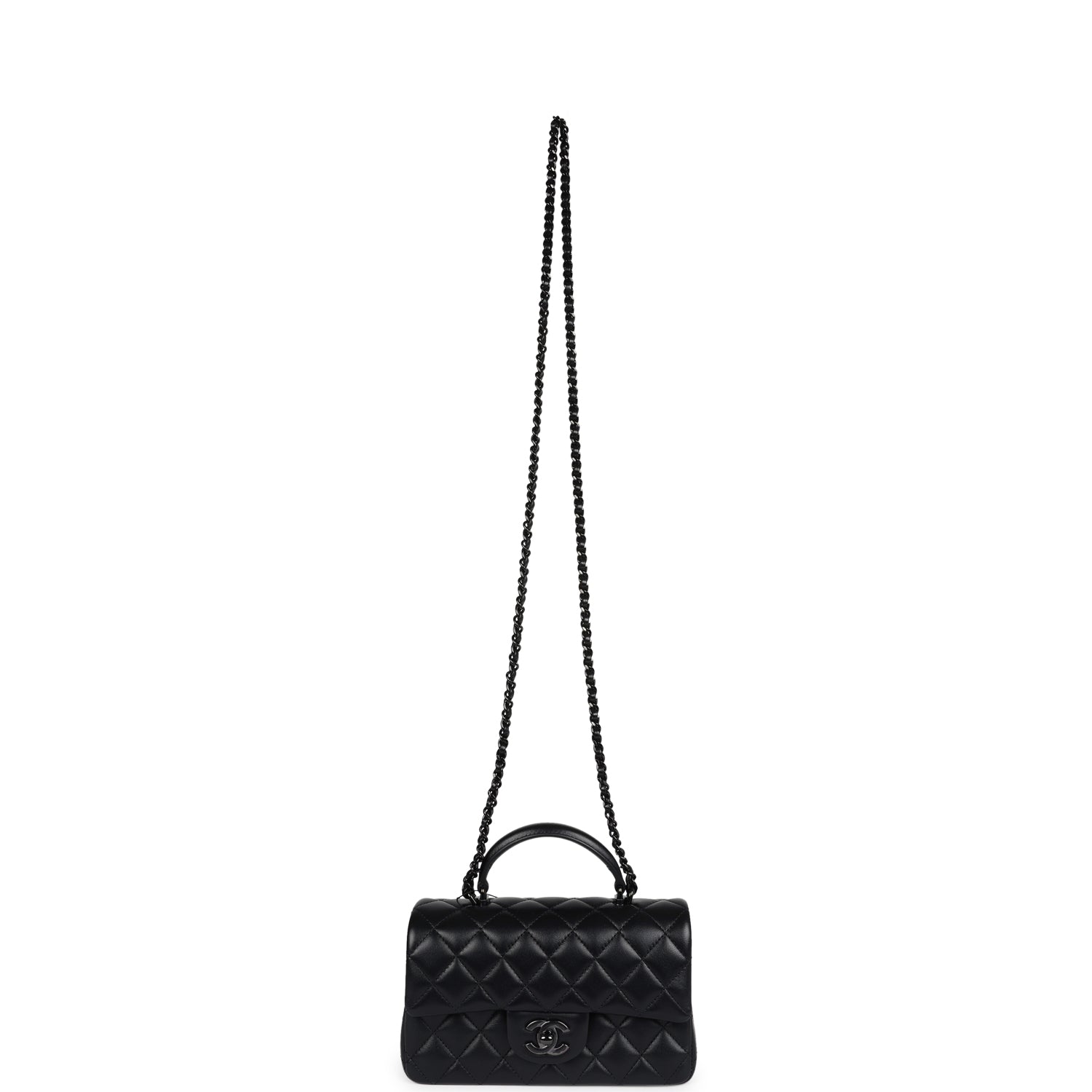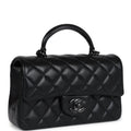 Chanel Mini Rectangular Top Handle Flap Bag So Black Lambskin Black Hardware