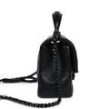 This Mini Classic Rectangular Top Handle flap bag is in So Black lambskin leather with So Black hardware and has a front flap with signature CC turnlock closure, rear half moon pocket, a leather top handle and single interwoven black leather and black chain link shoulder strap.