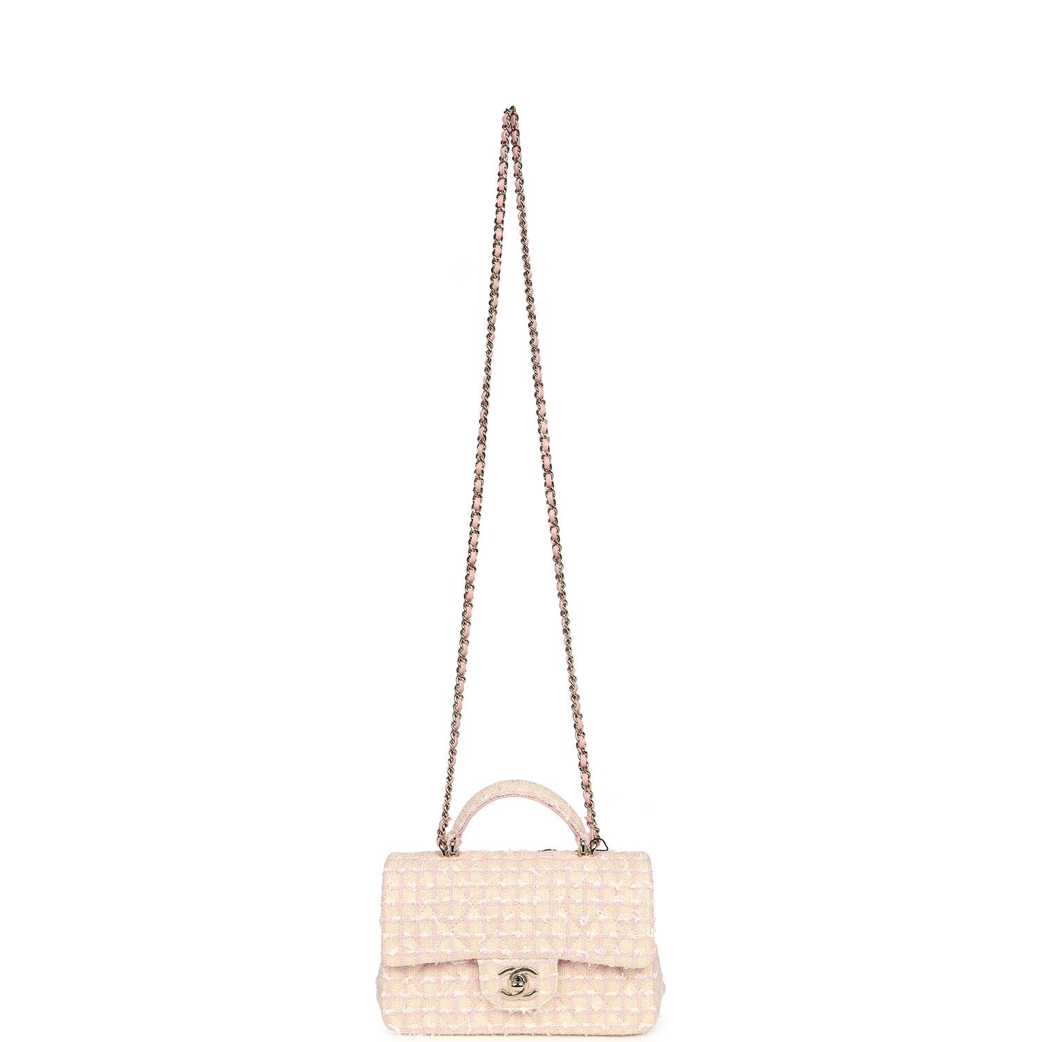Chanel Mini Rectangular Top Handle Flap Pink and White Tweed Light Gold Hardware