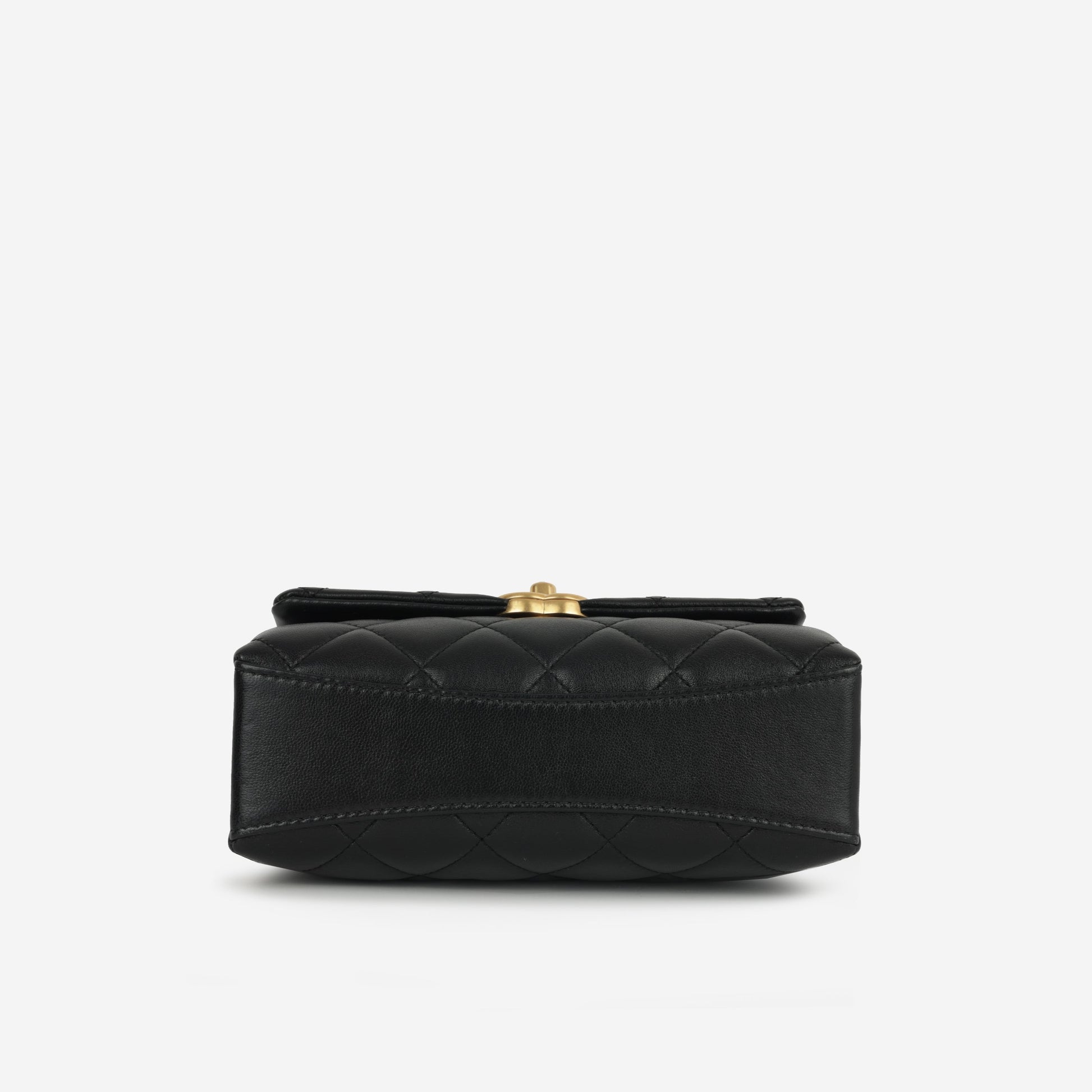 Chanel Mini Rectangular with Pearl Top Handle Black Lambskin Aged Gold Hardware