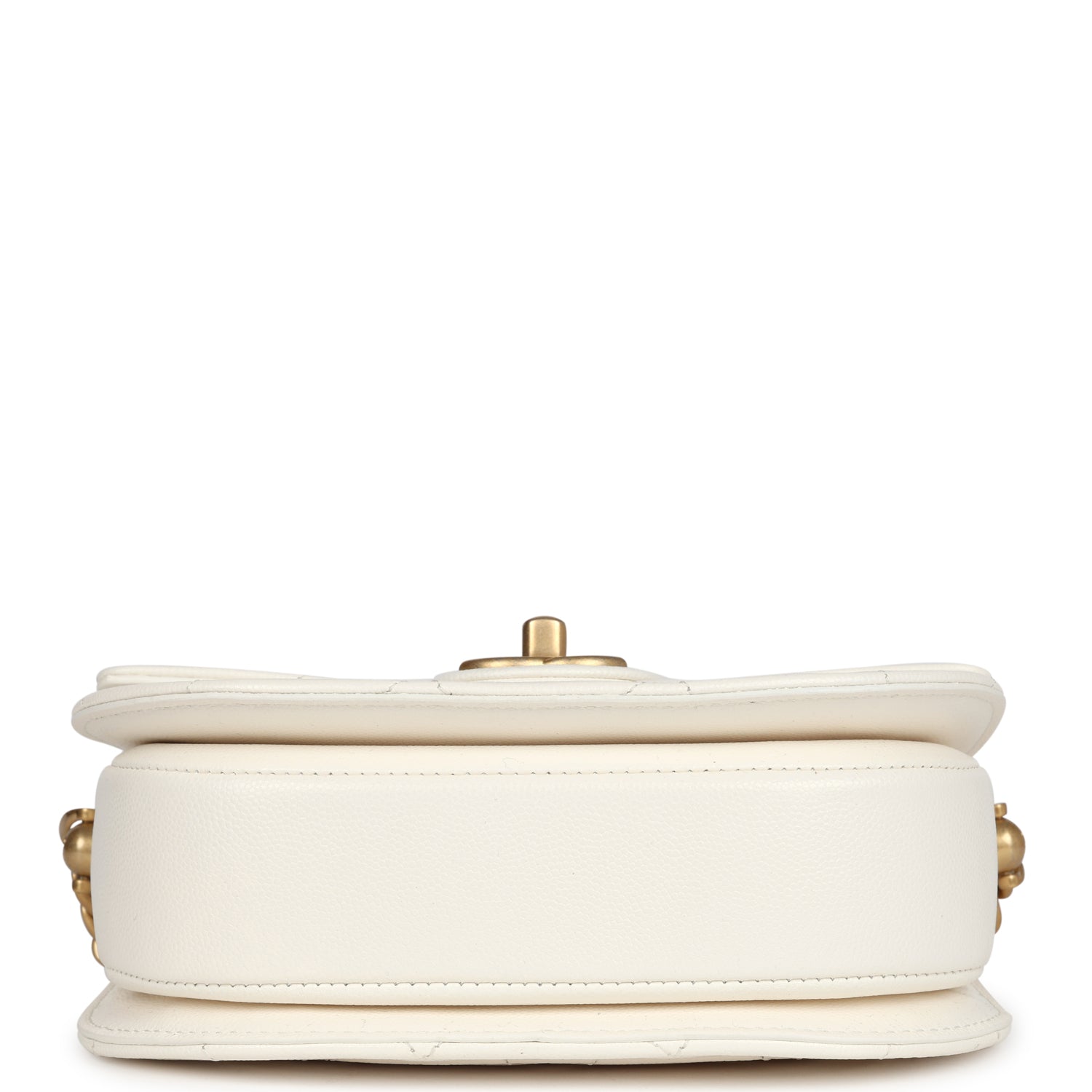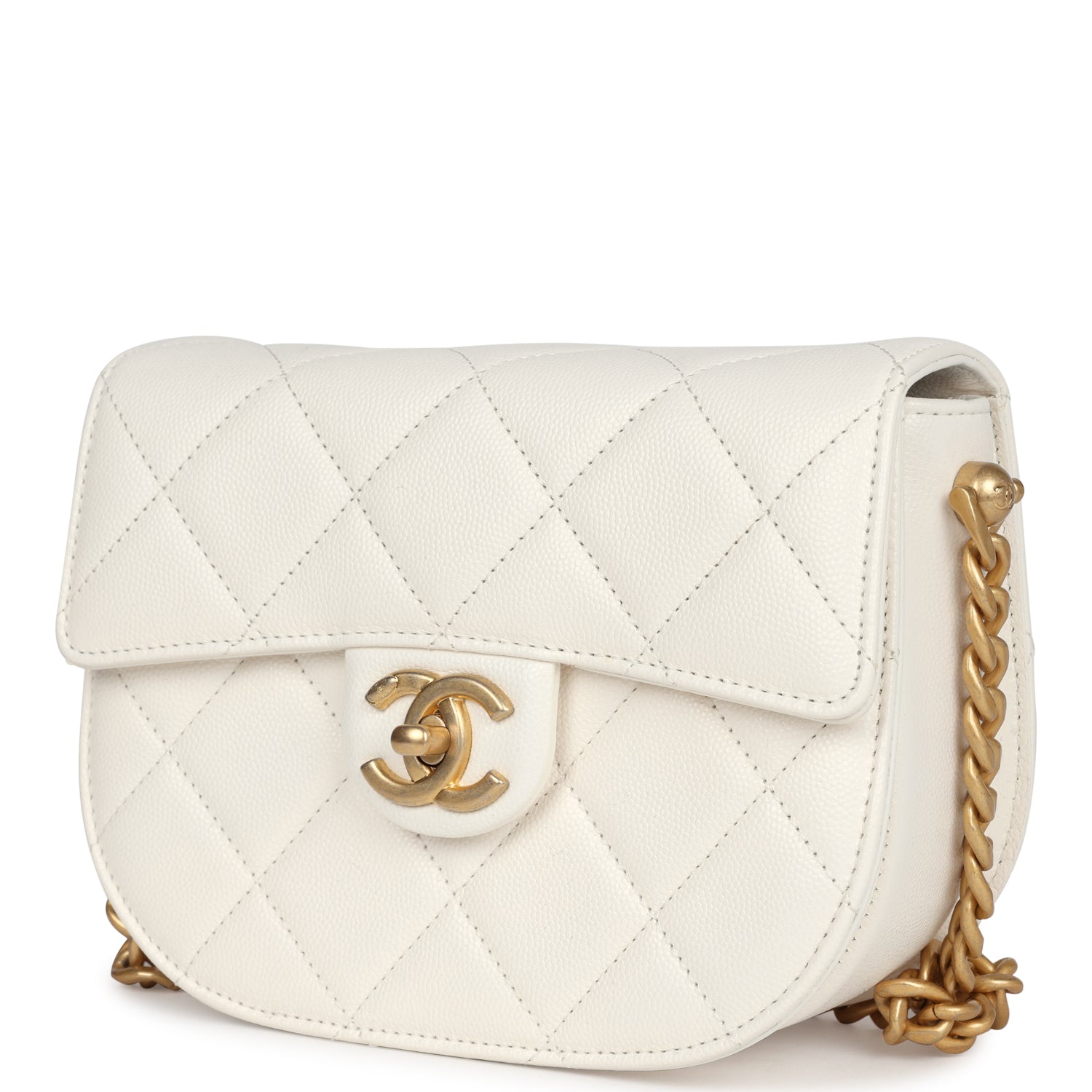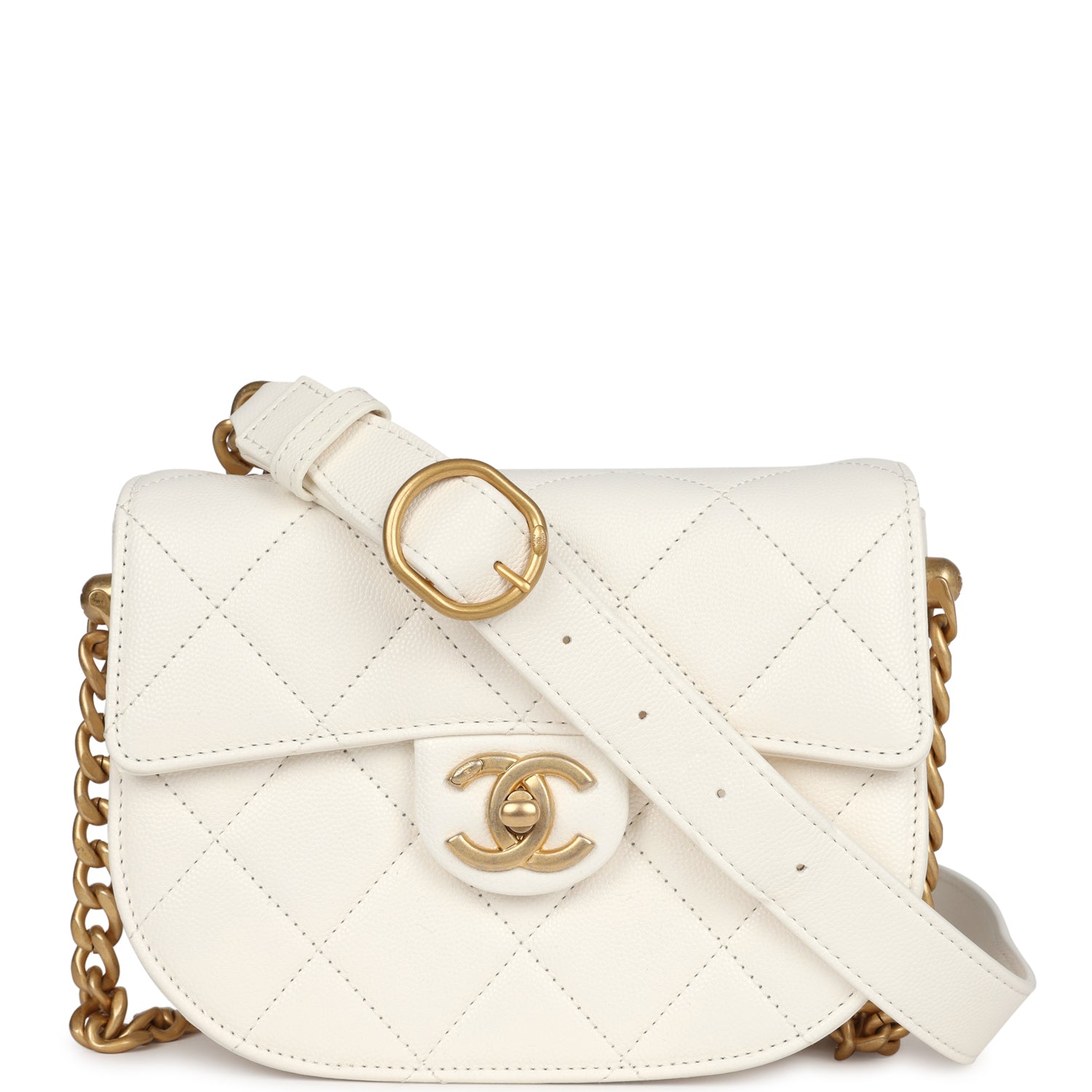Chanel Mini Round Messenger Flap Bag White Caviar Antique Gold Hardware