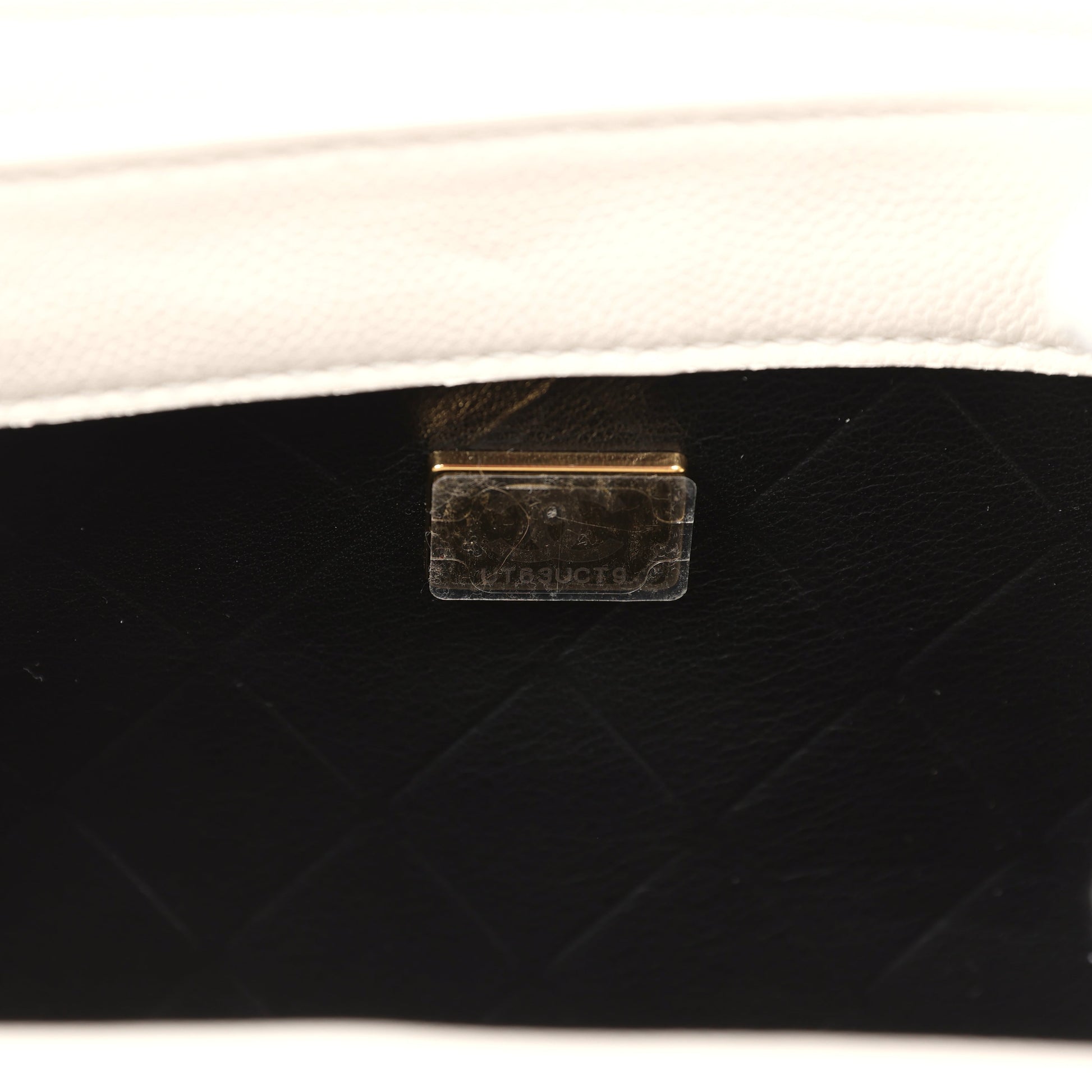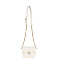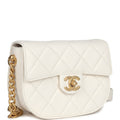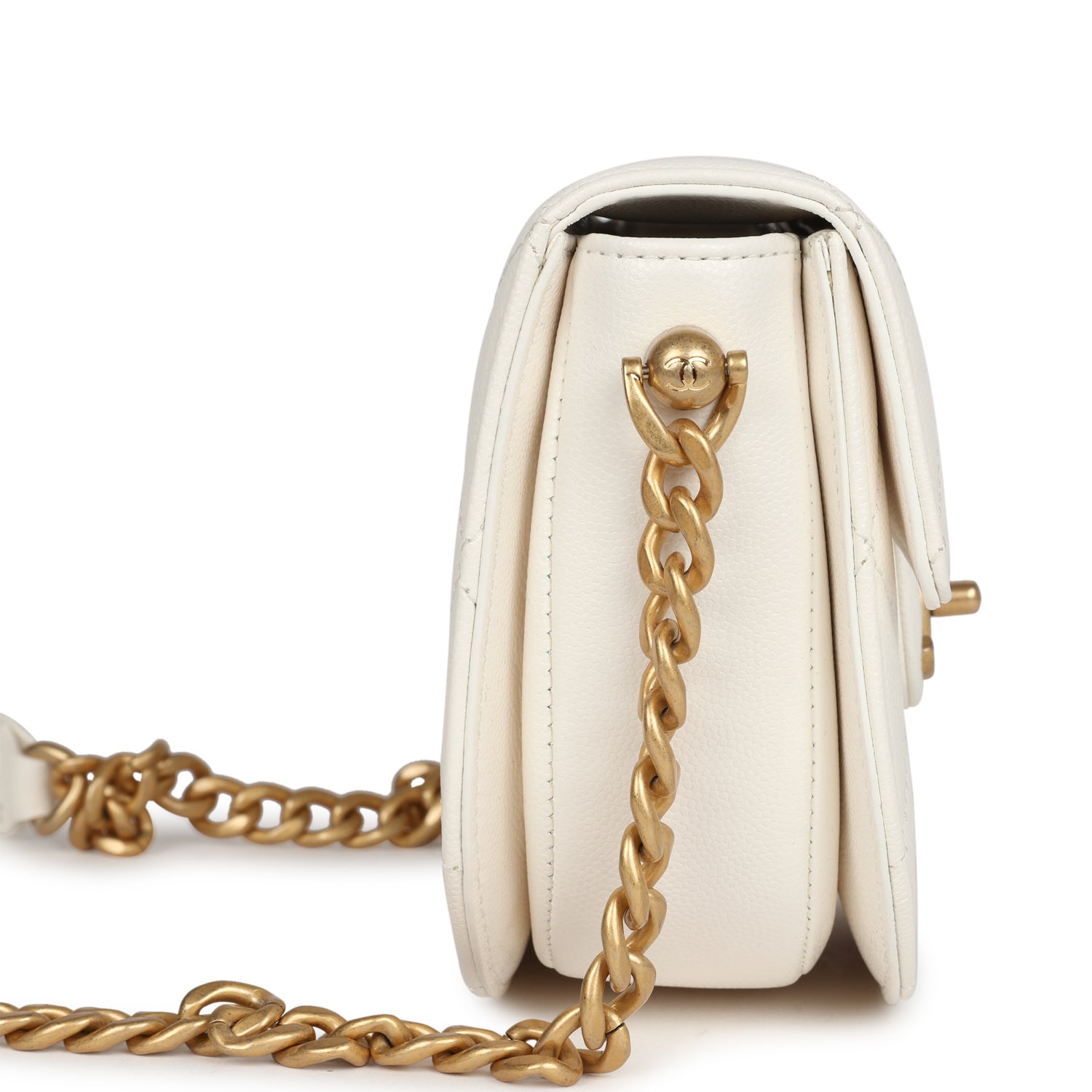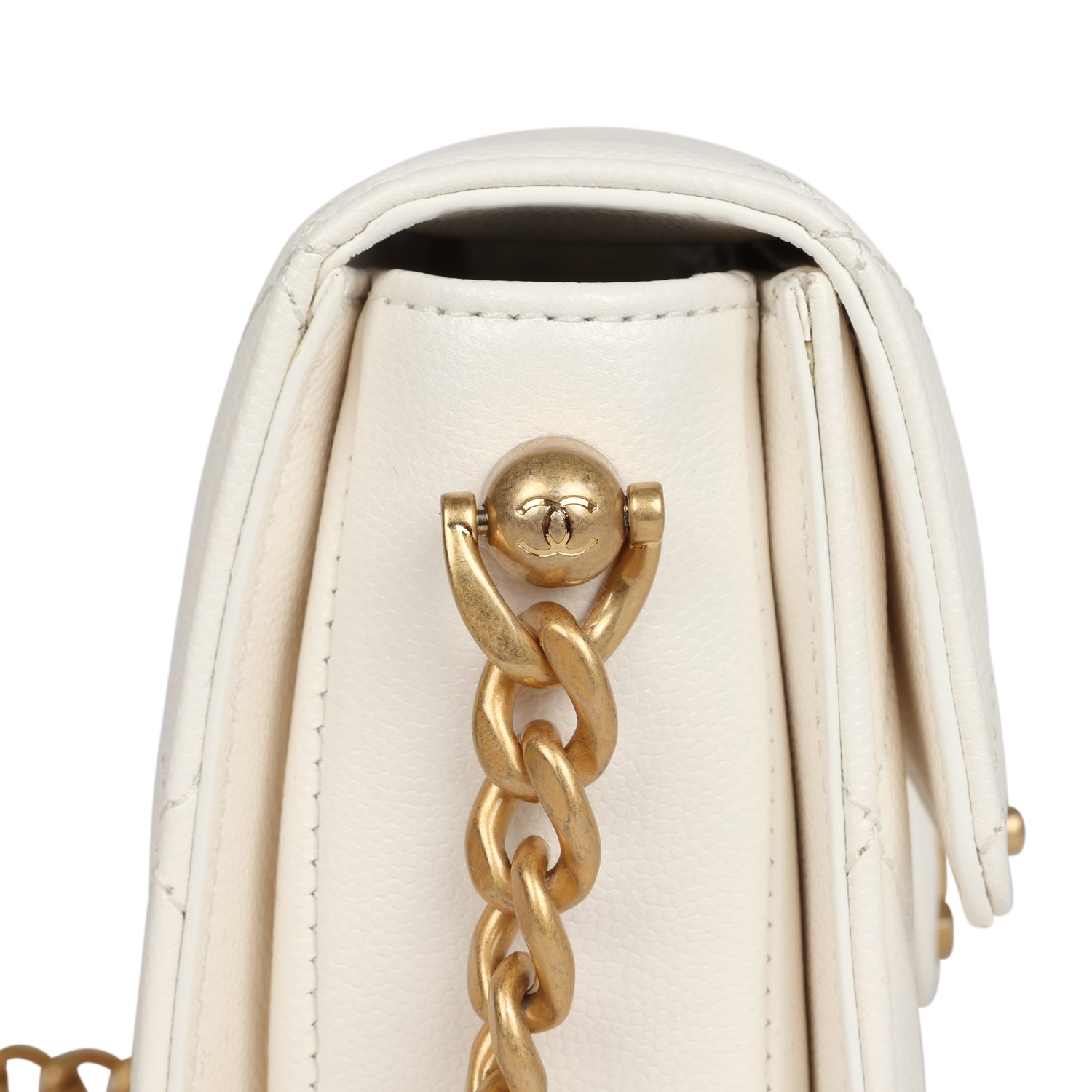 Chanel Mini Round Messenger Flap Bag White Caviar Antique Gold Hardware
