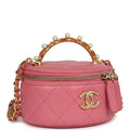 Chanel Mini Round Top Handle Vanity Case Dark Pink Lambskin Gold Hardware