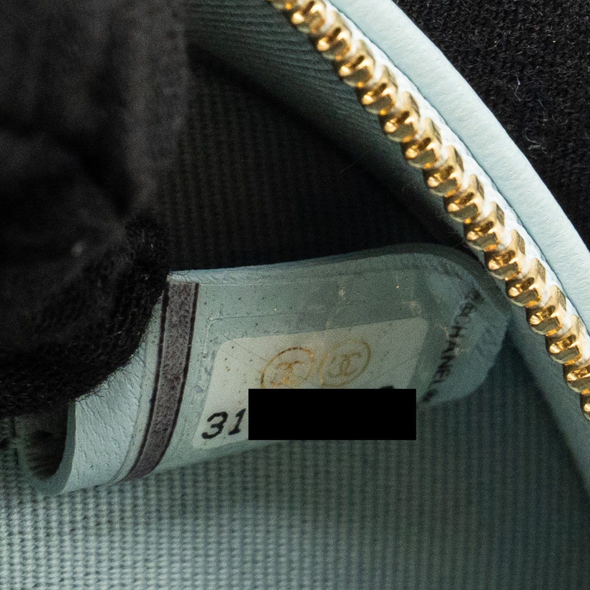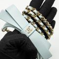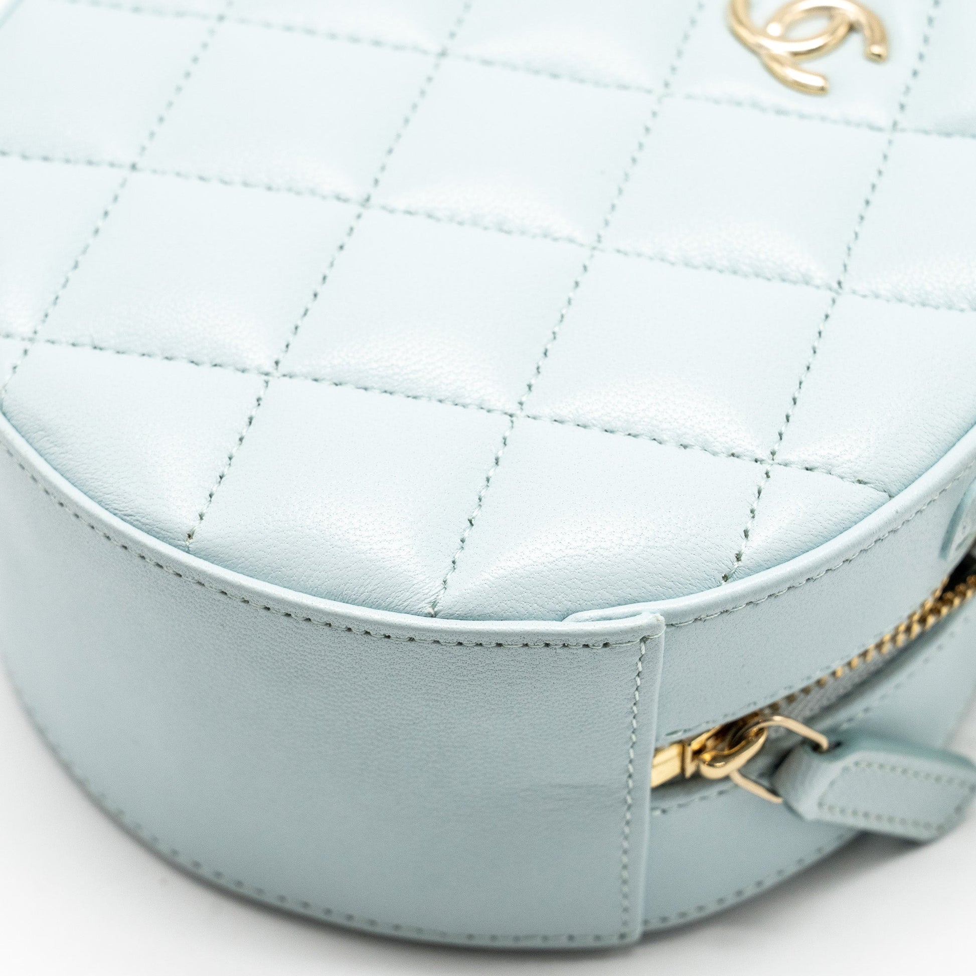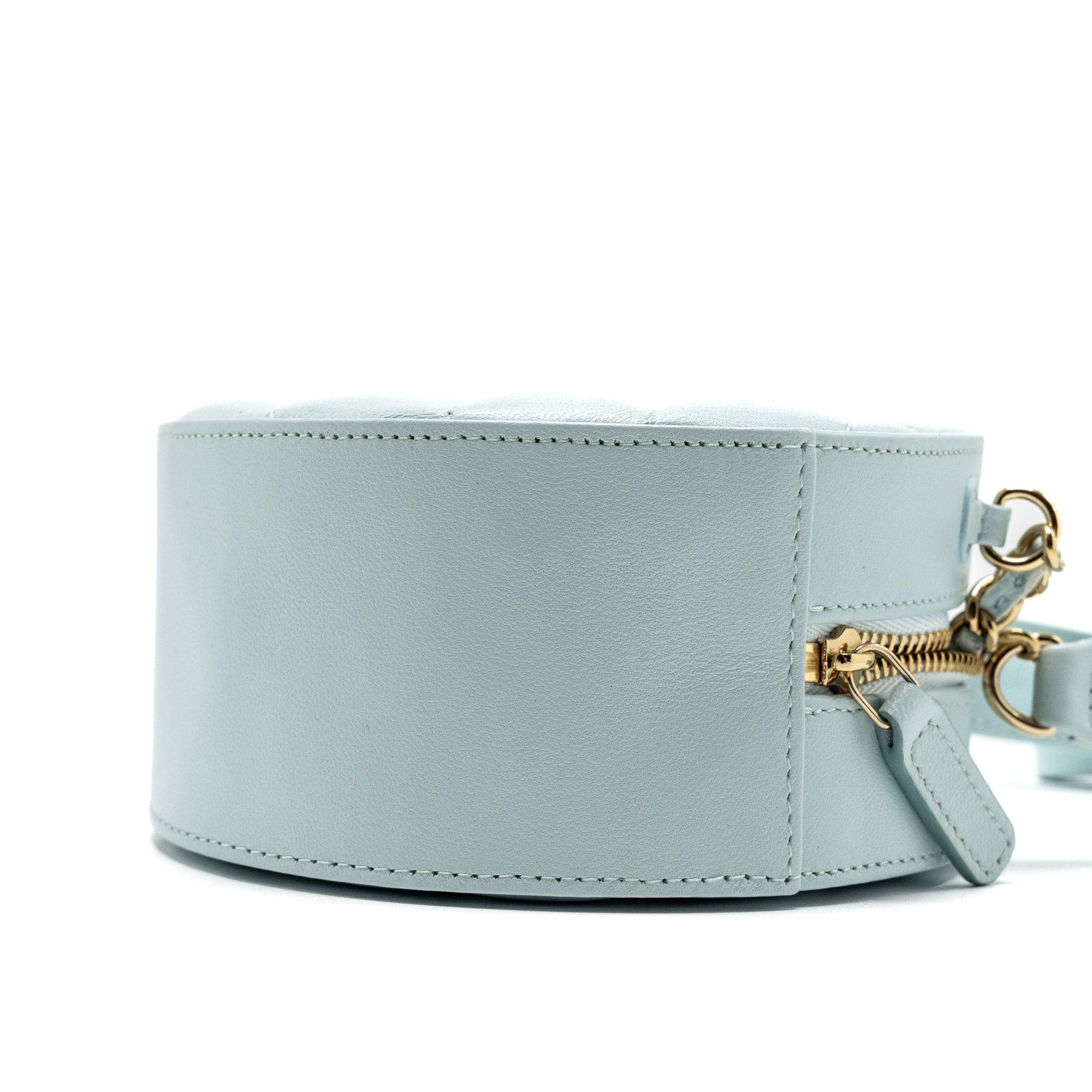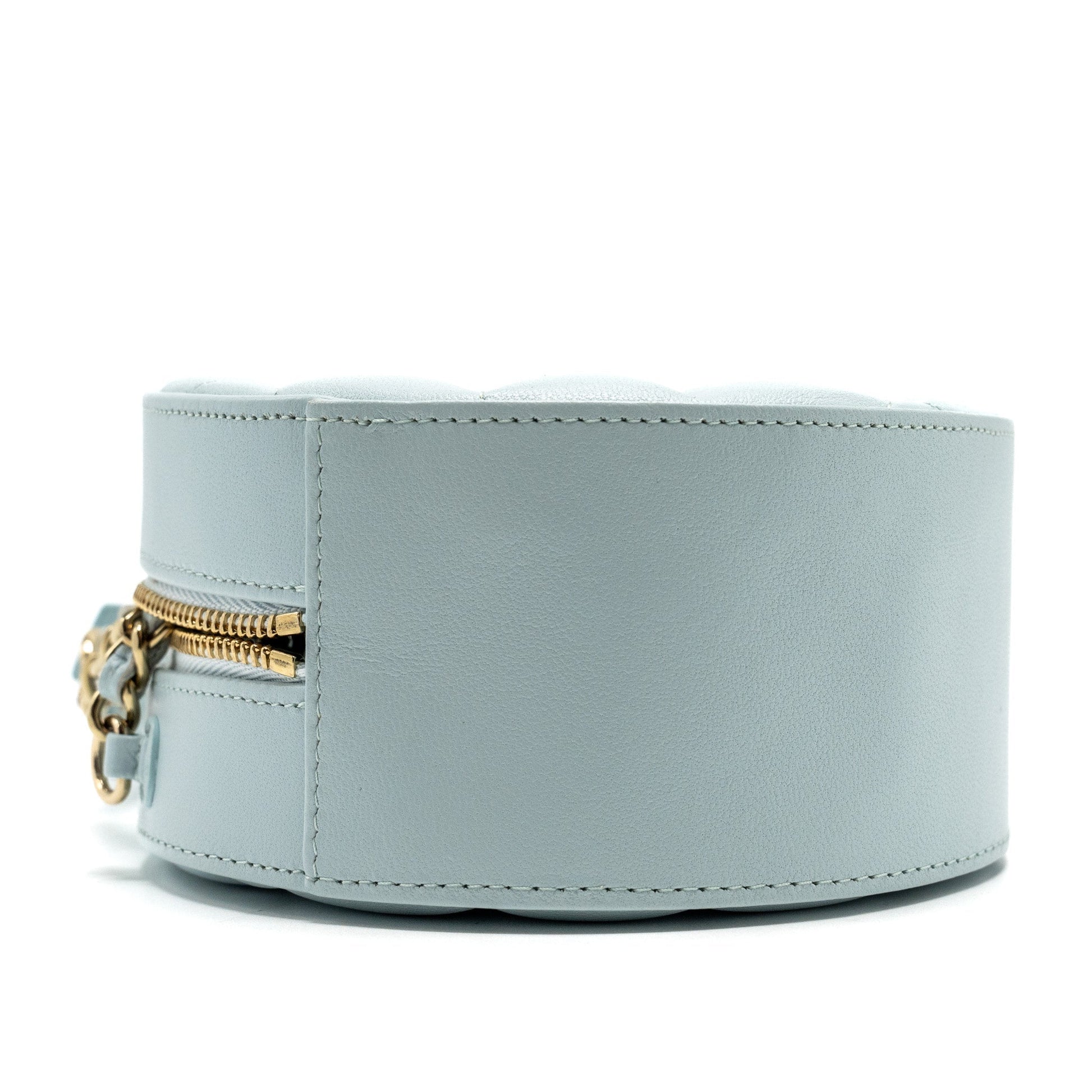 Chanel Mini Round Vanity With ribbon on chain Lambskin Light Blue LGHW
