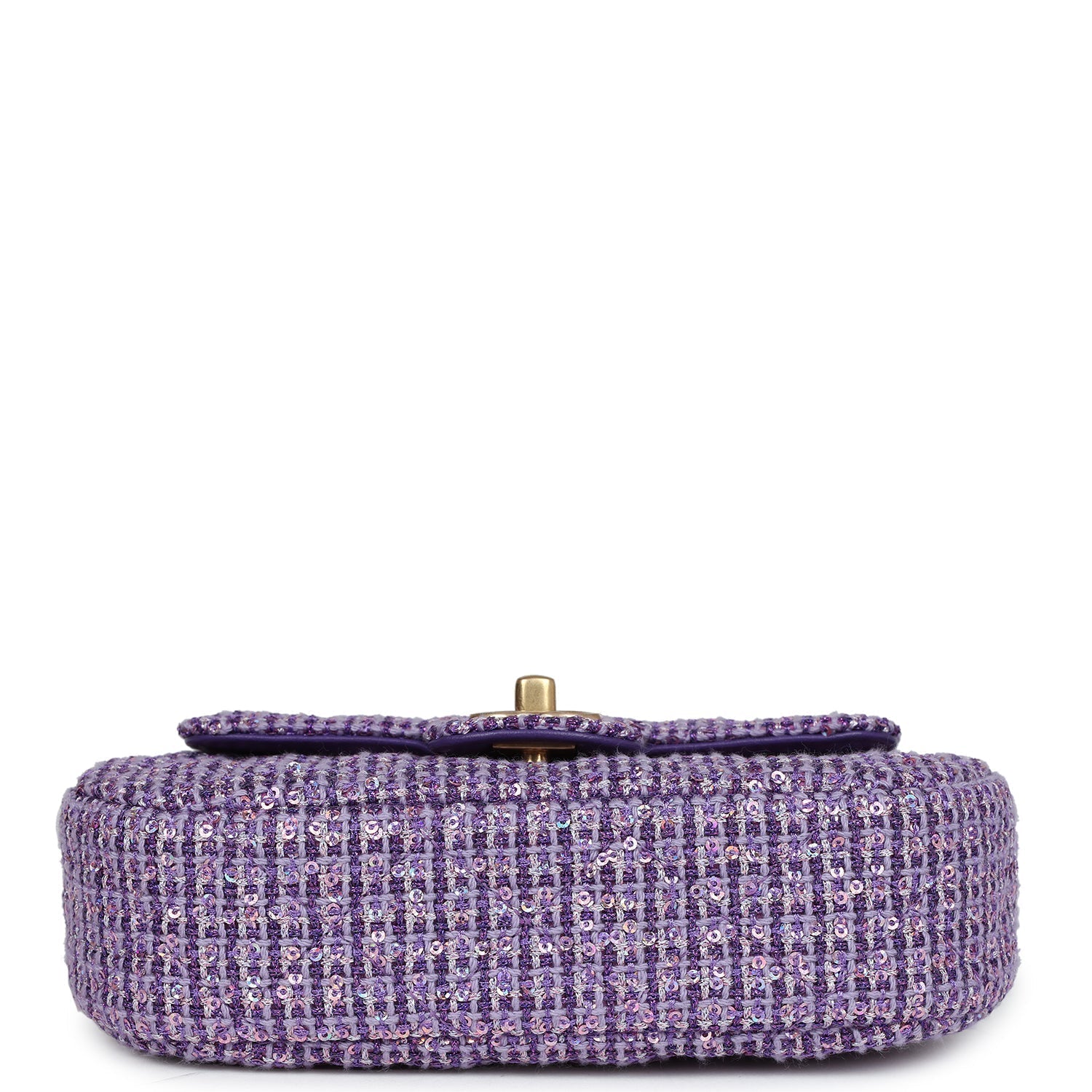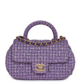 Chanel Mini Sequin Flap Bag with Top Handle Purple Tweed Antique Gold Hardware
