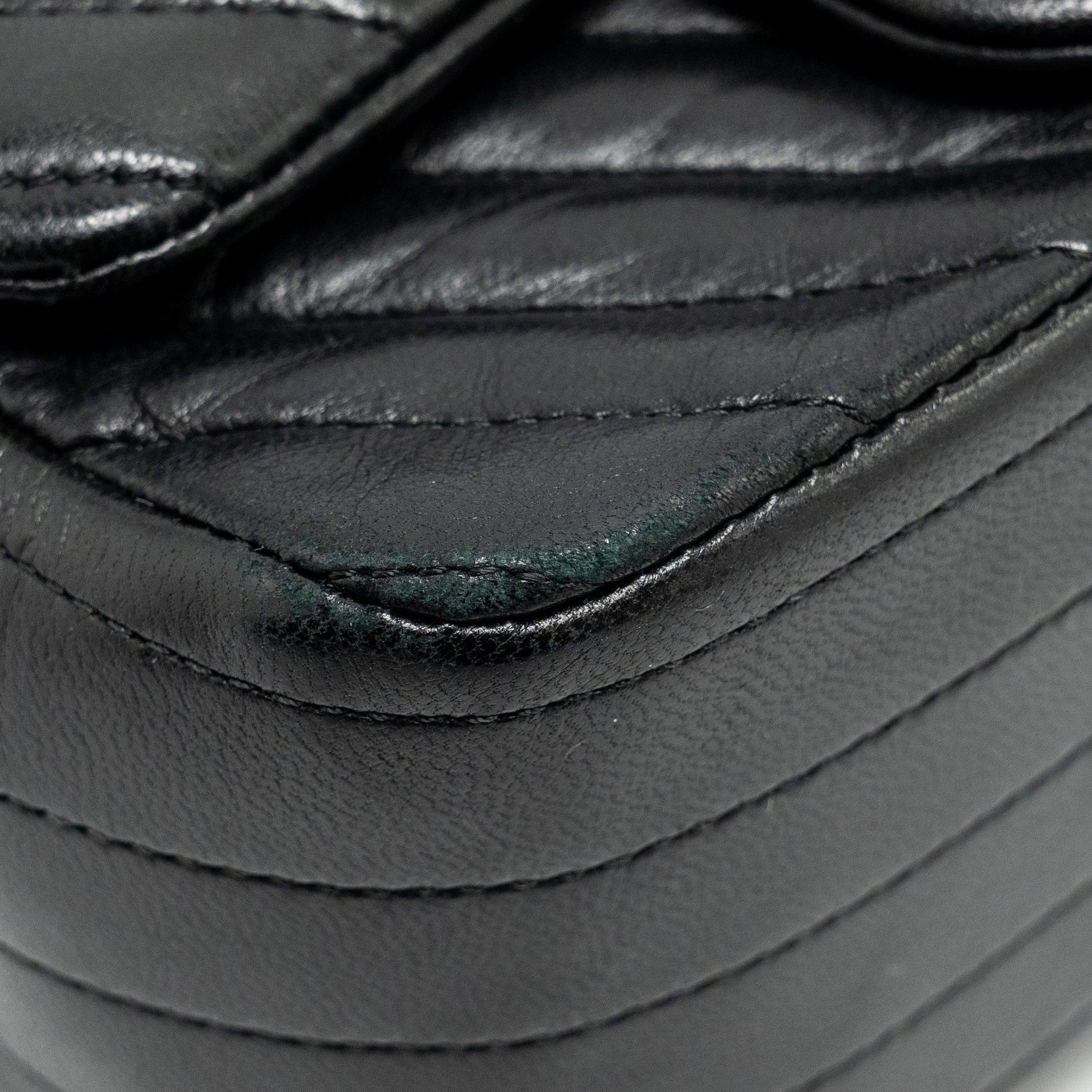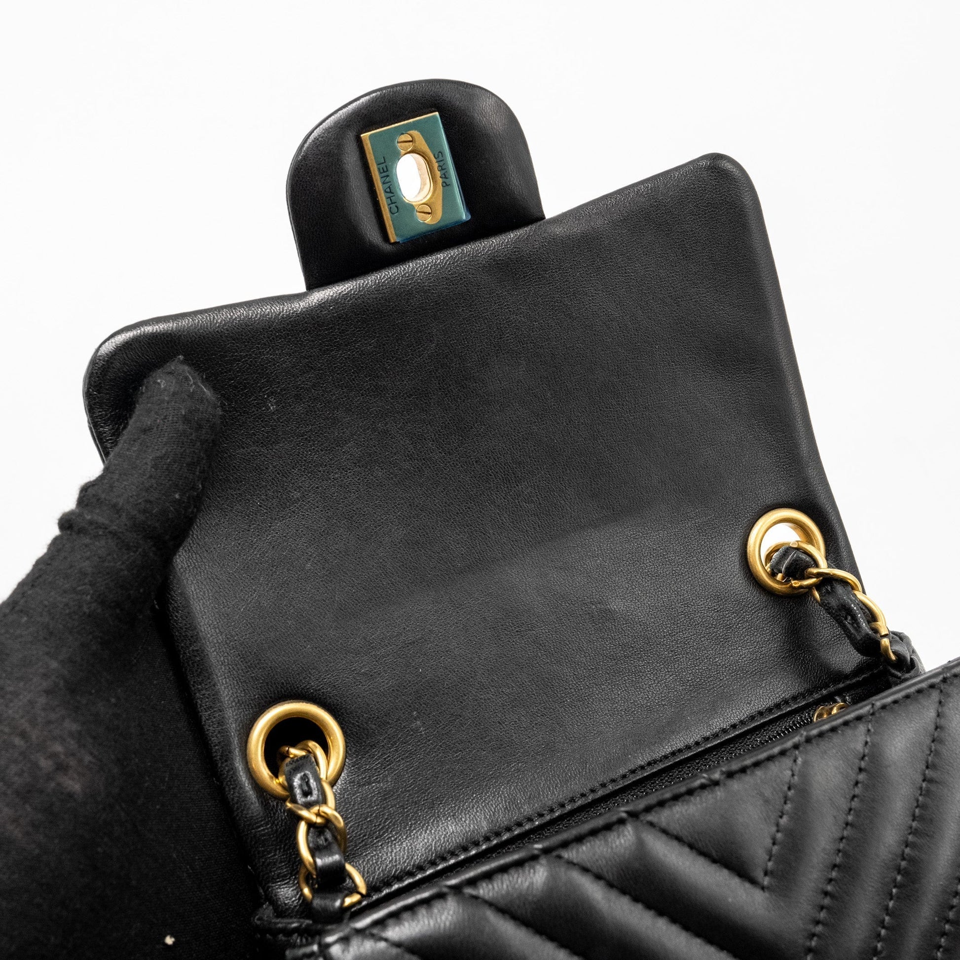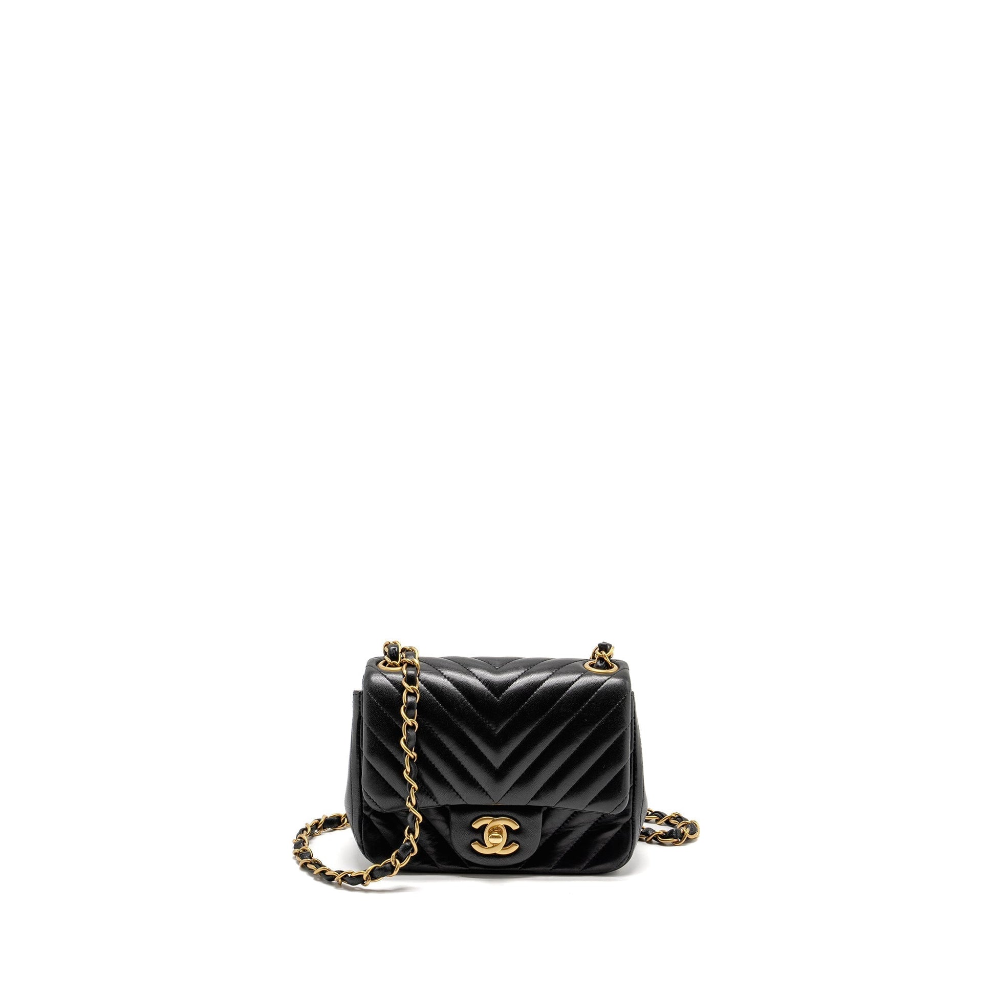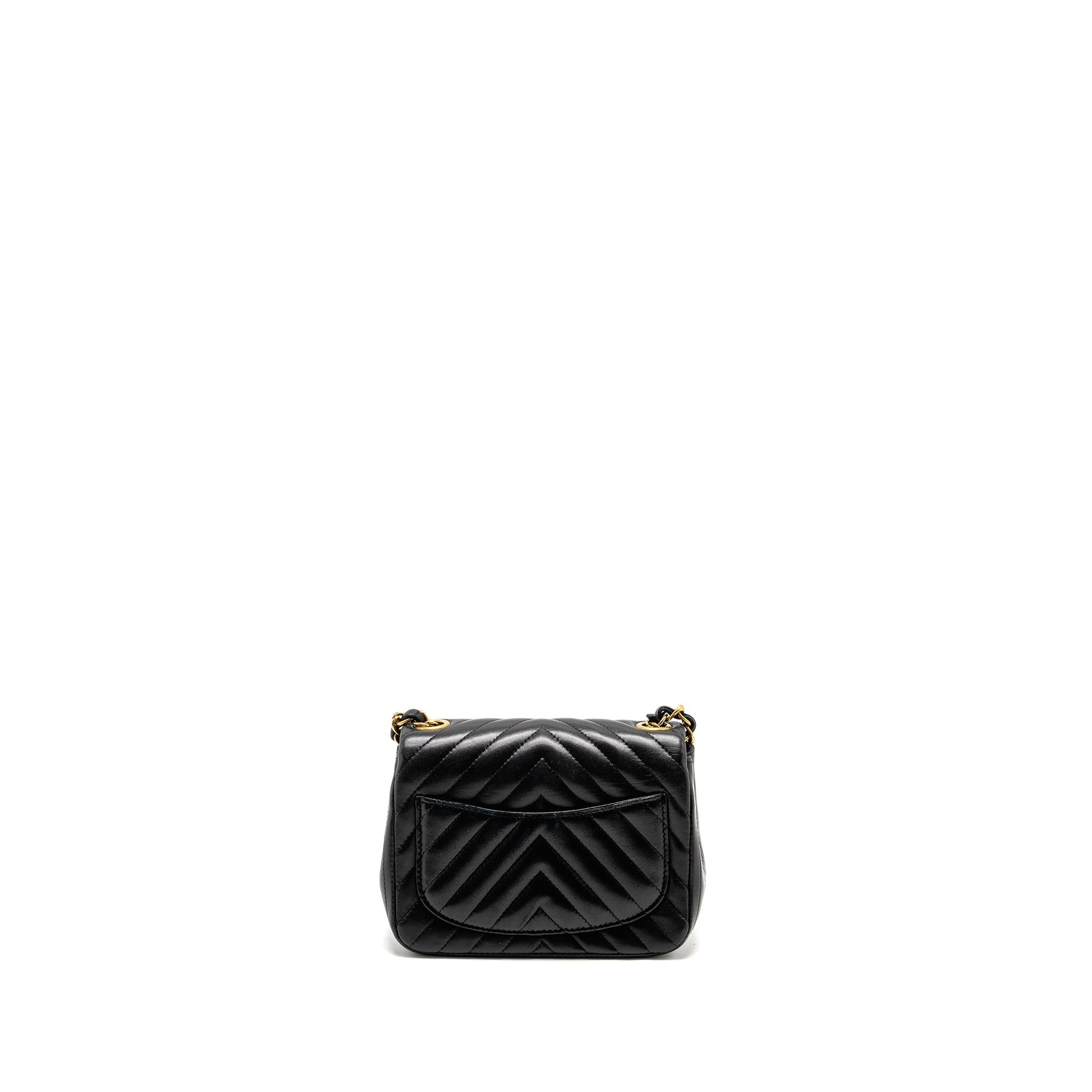Chanel Mini Square Chevron Flap Bag Lambskin Black GHW