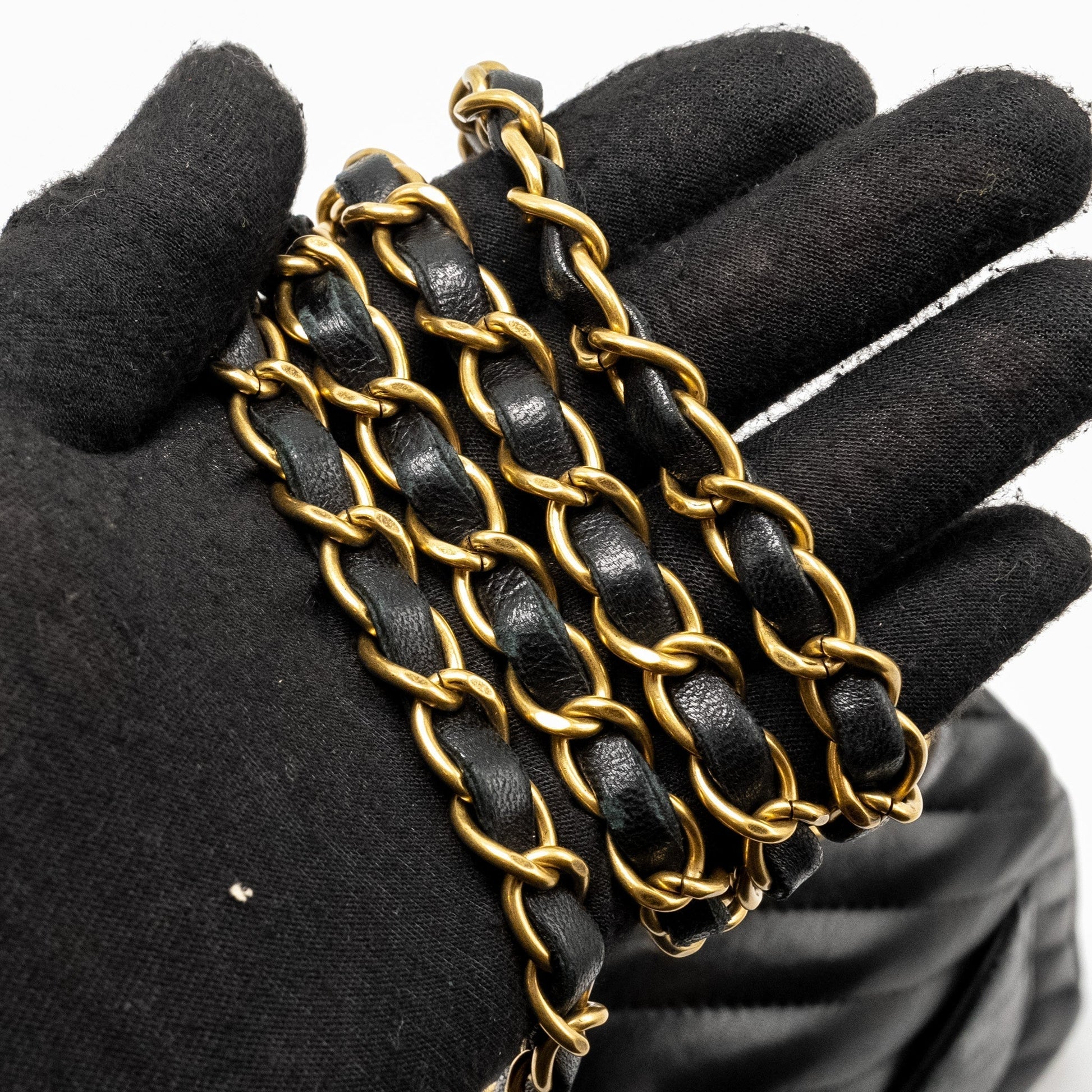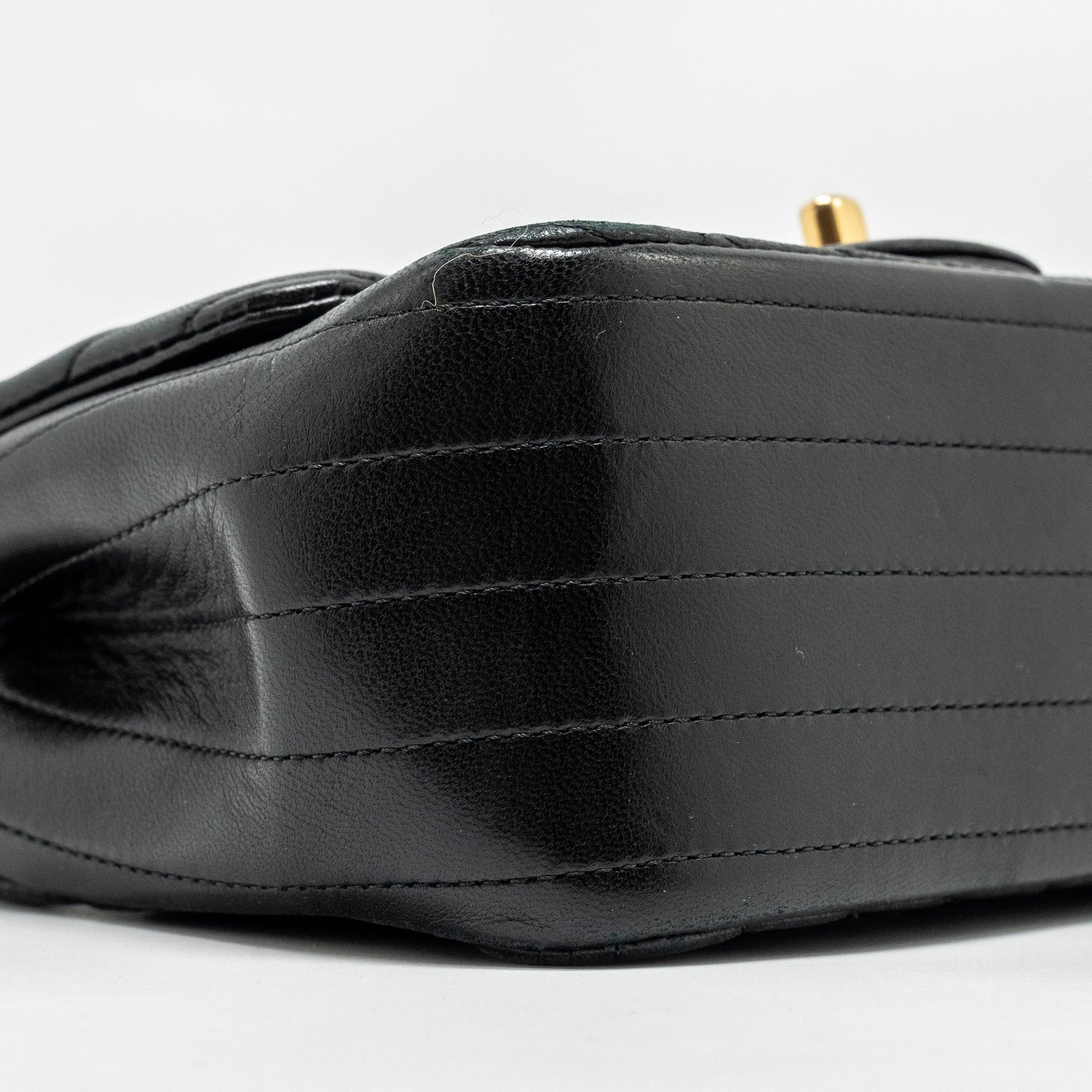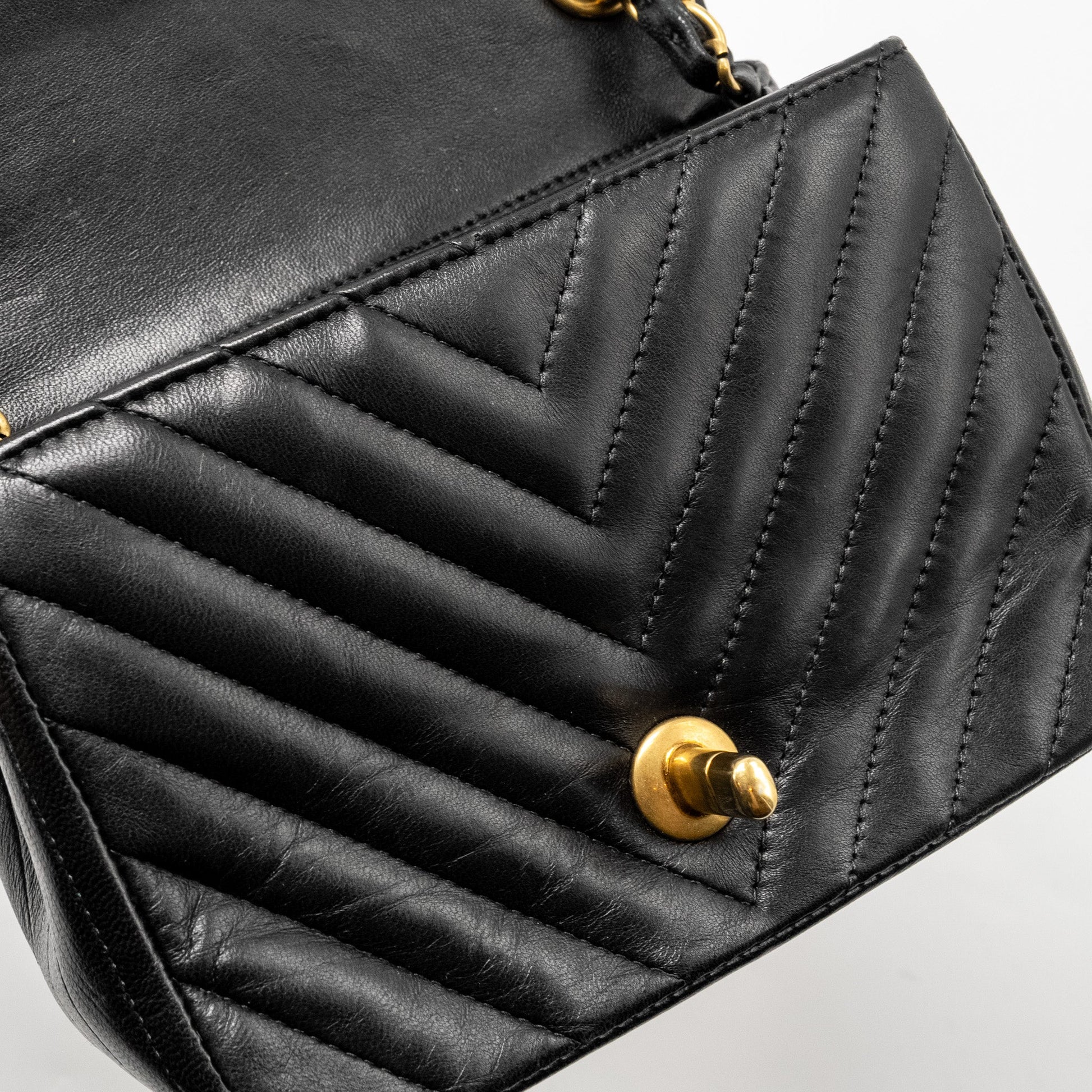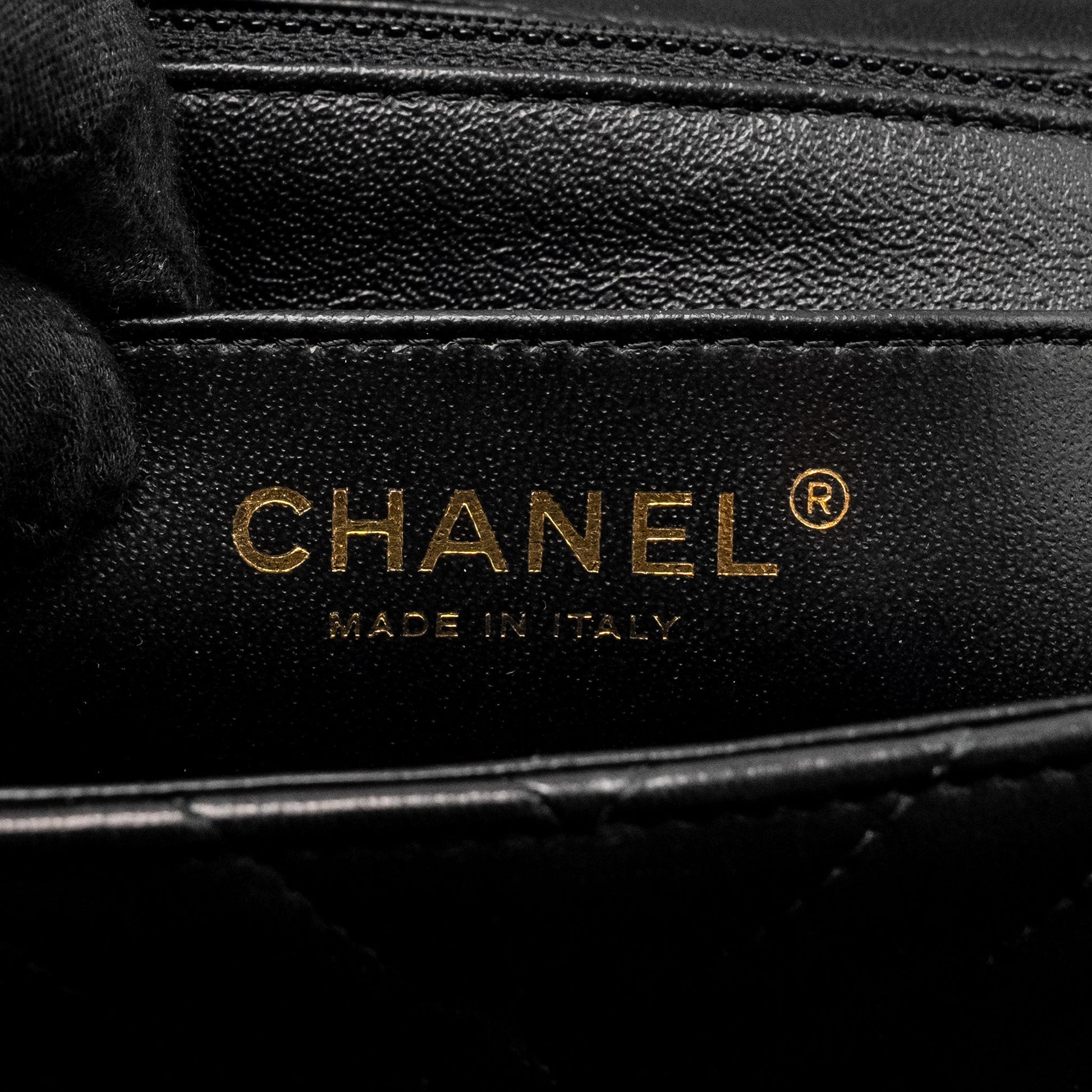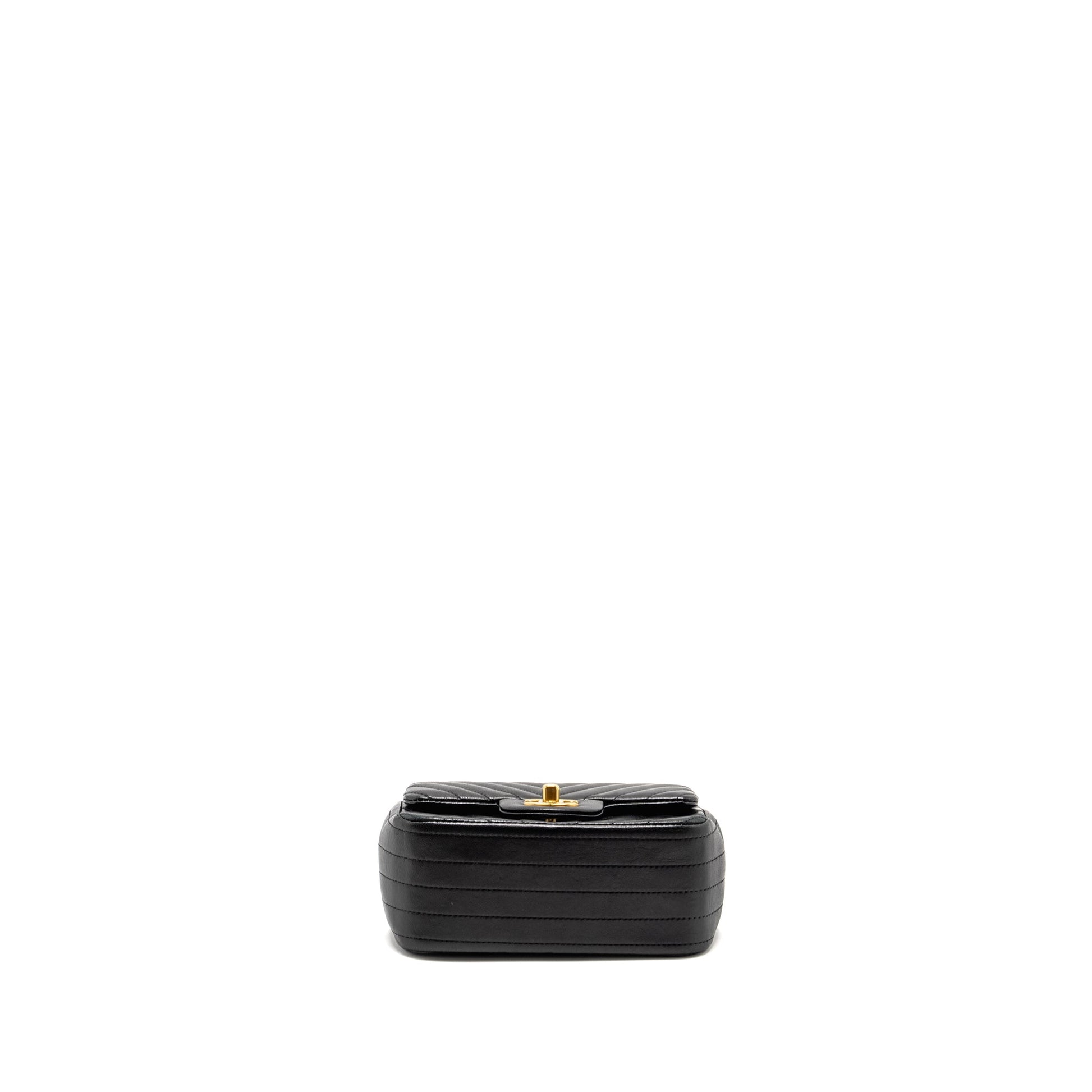 Chanel Mini Square Chevron Flap Bag Lambskin Black GHW