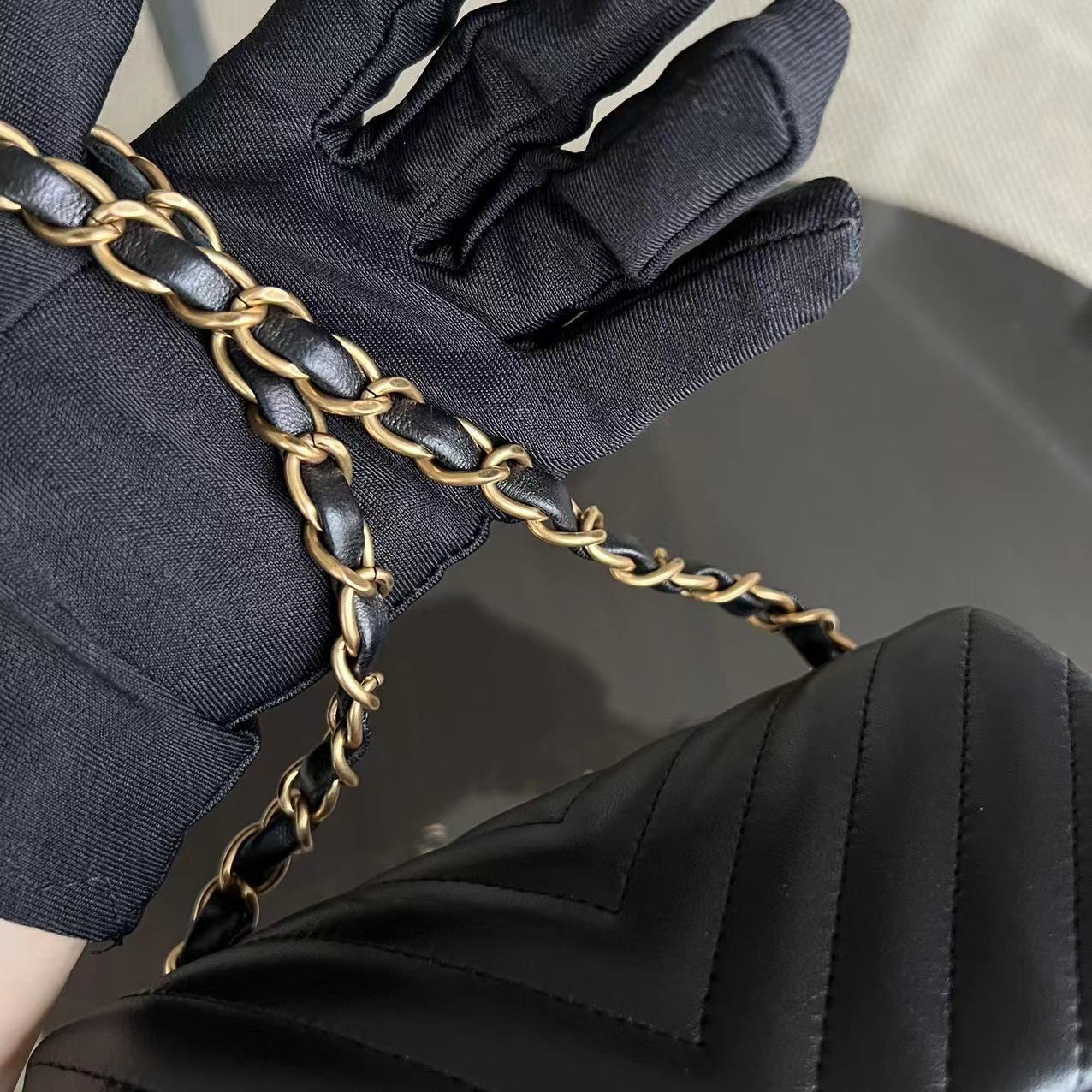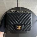 Mini Square Classic Flap Chevron Black Golden Hardware Series 21