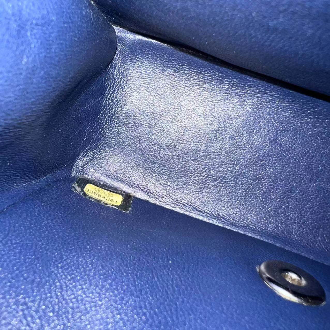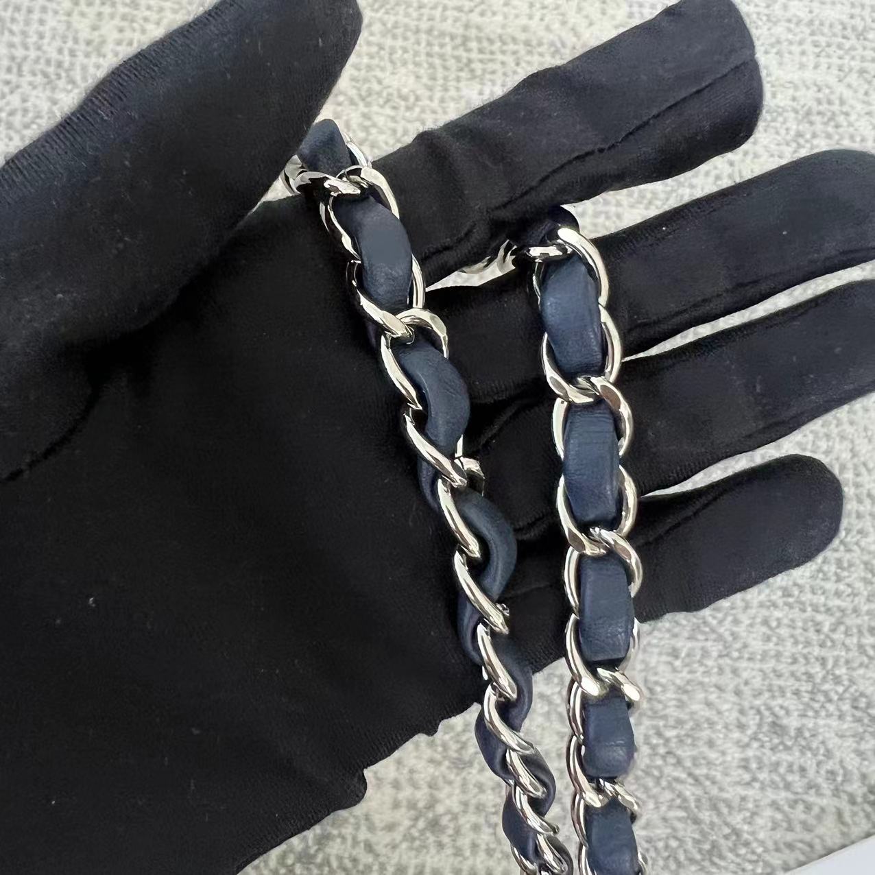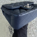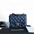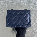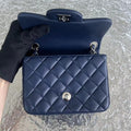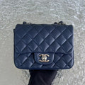 Chanel Mini Square Classic Flap Quilted Lambskin Dark Navy Blue Silver Hardware Series 22