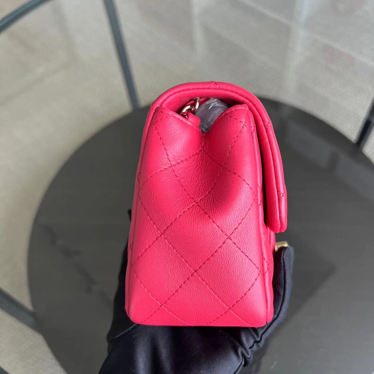 Mini Square Classic Flap Quilted Lambskin Hot Pink Golden Hardware Series 21