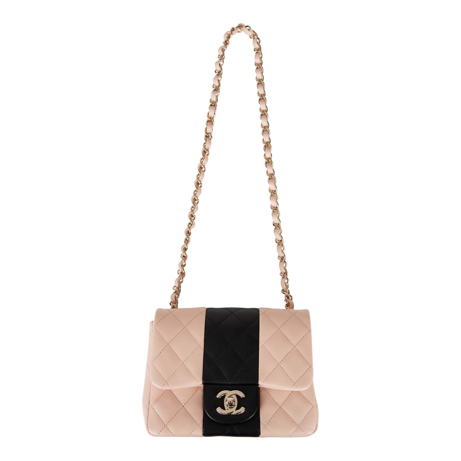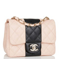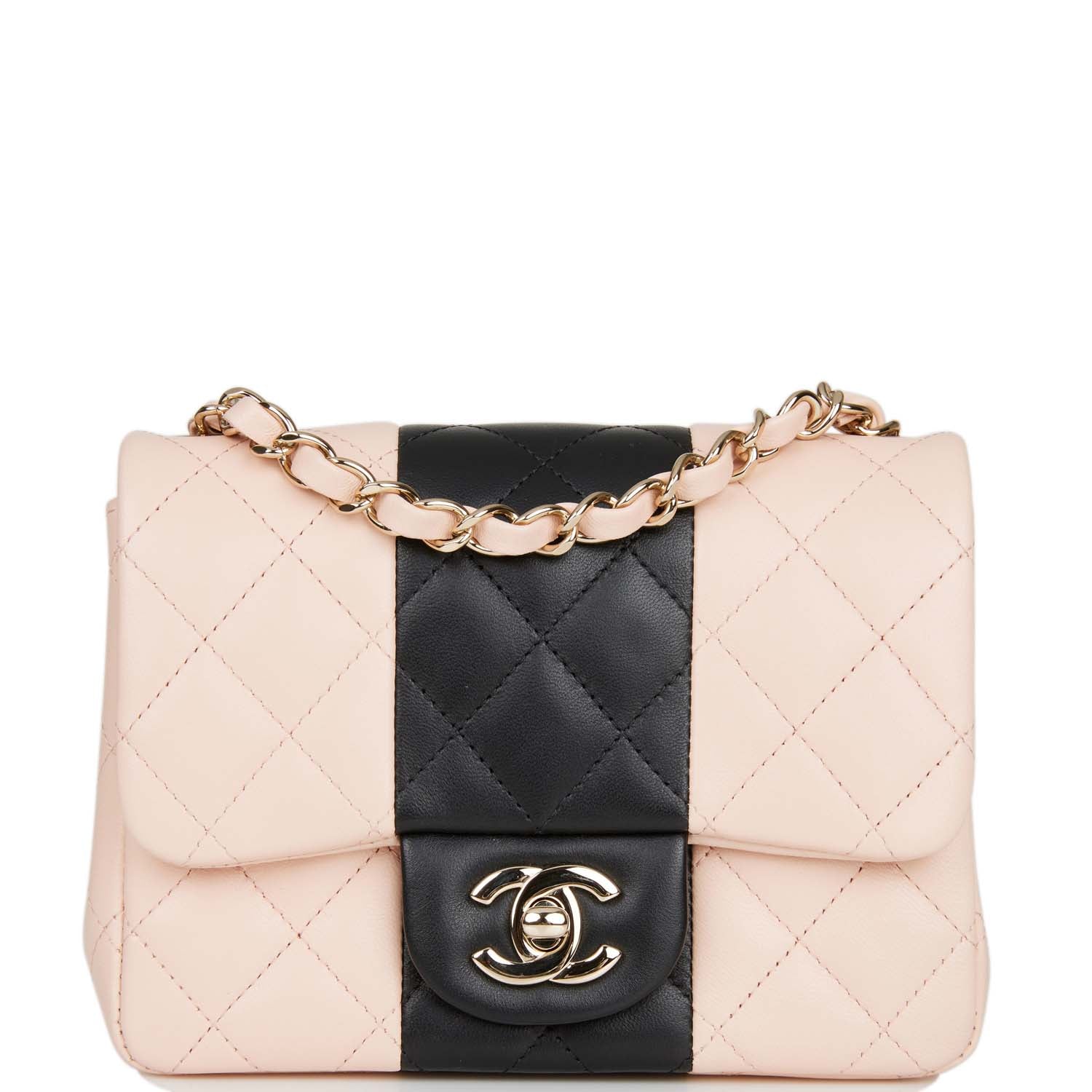 Chanel Mini Square Flap Bag Pink and Black Lambskin Light Gold Hardware
