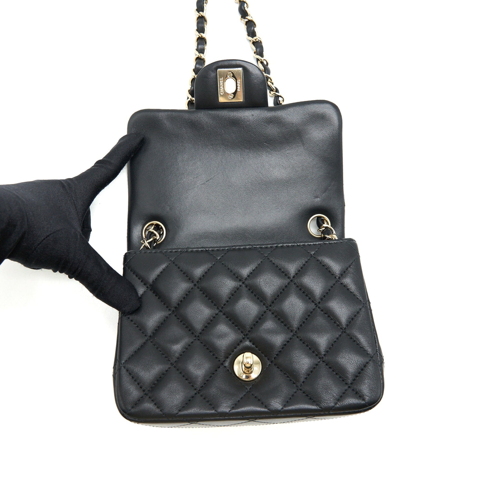 Chanel Mini Square Flap Bag Black Lambskin LGHW