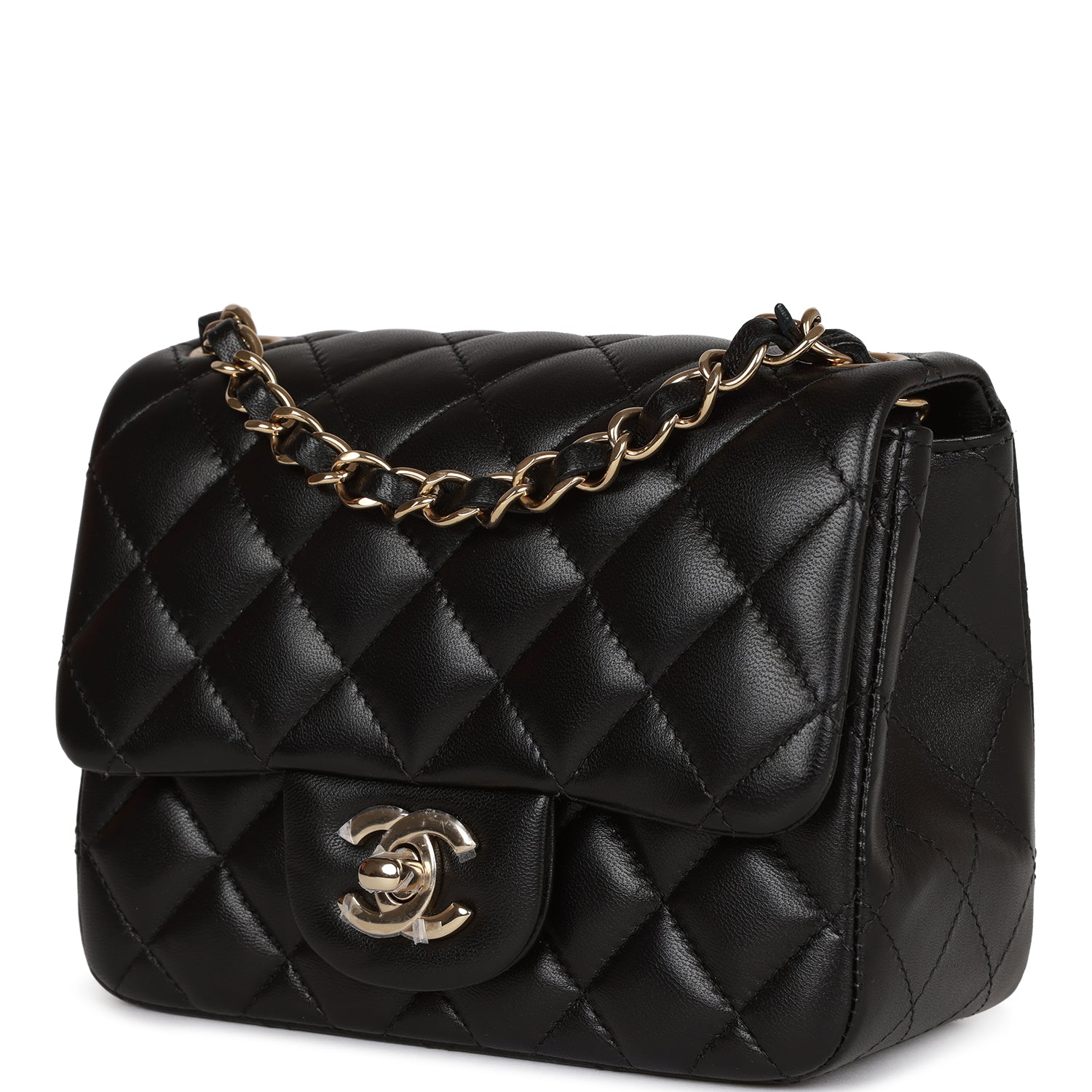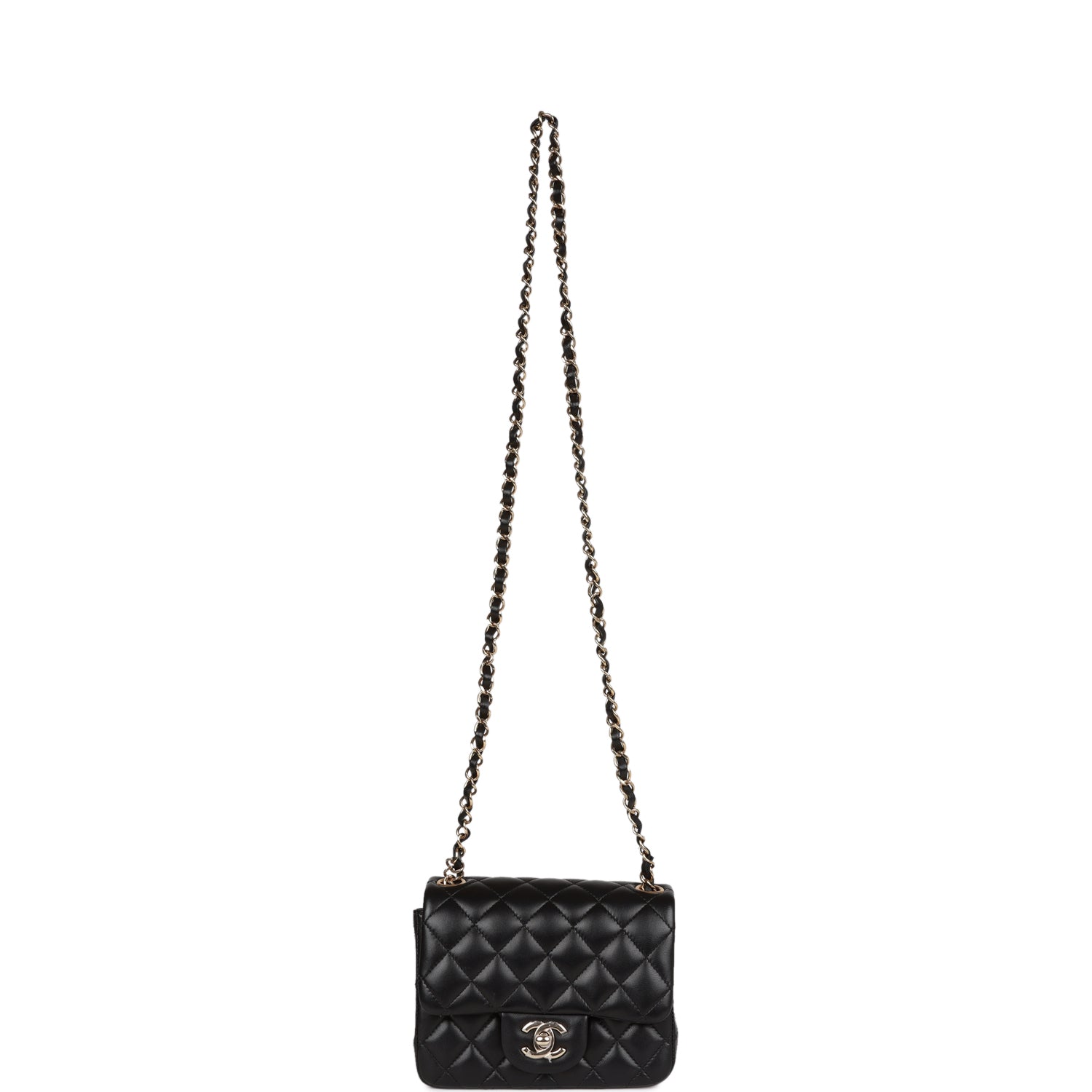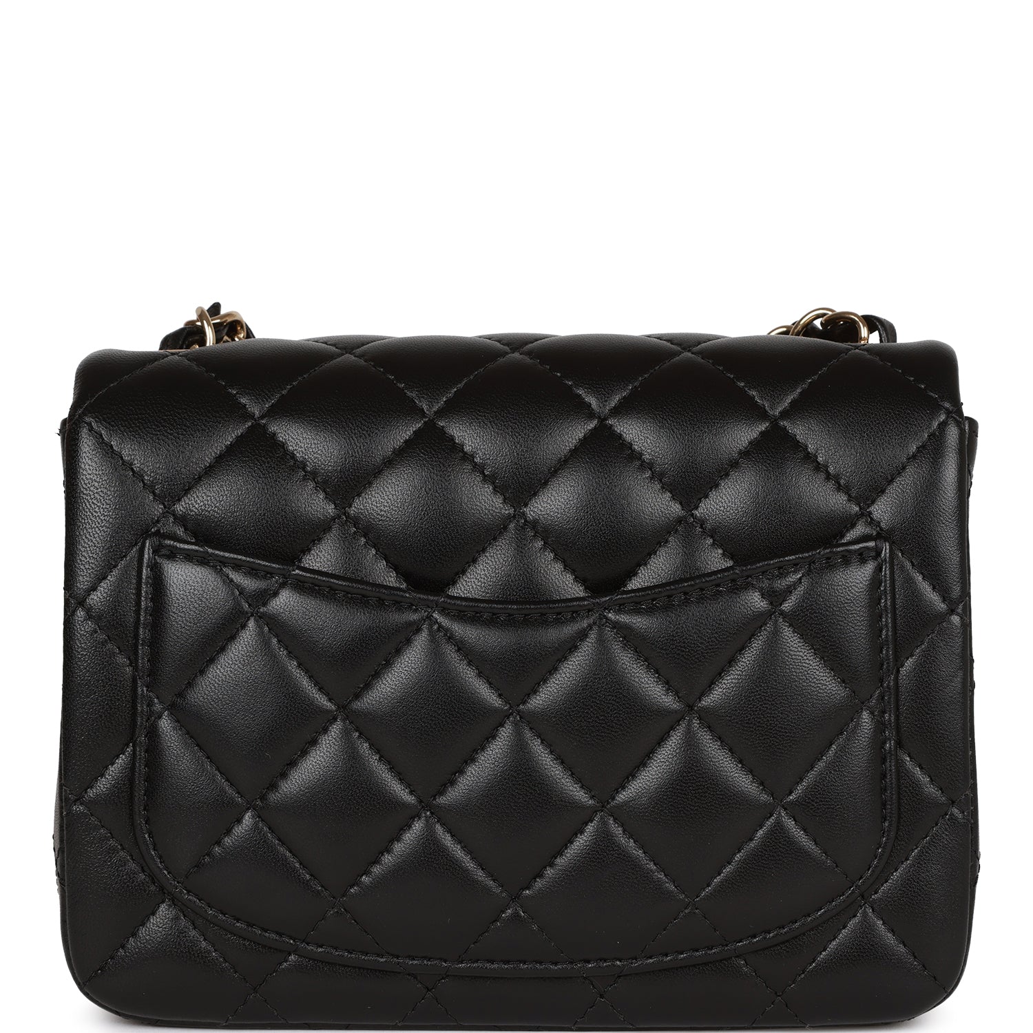 Chanel Mini Square Flap Bag Black Lambskin Light Gold Hardware