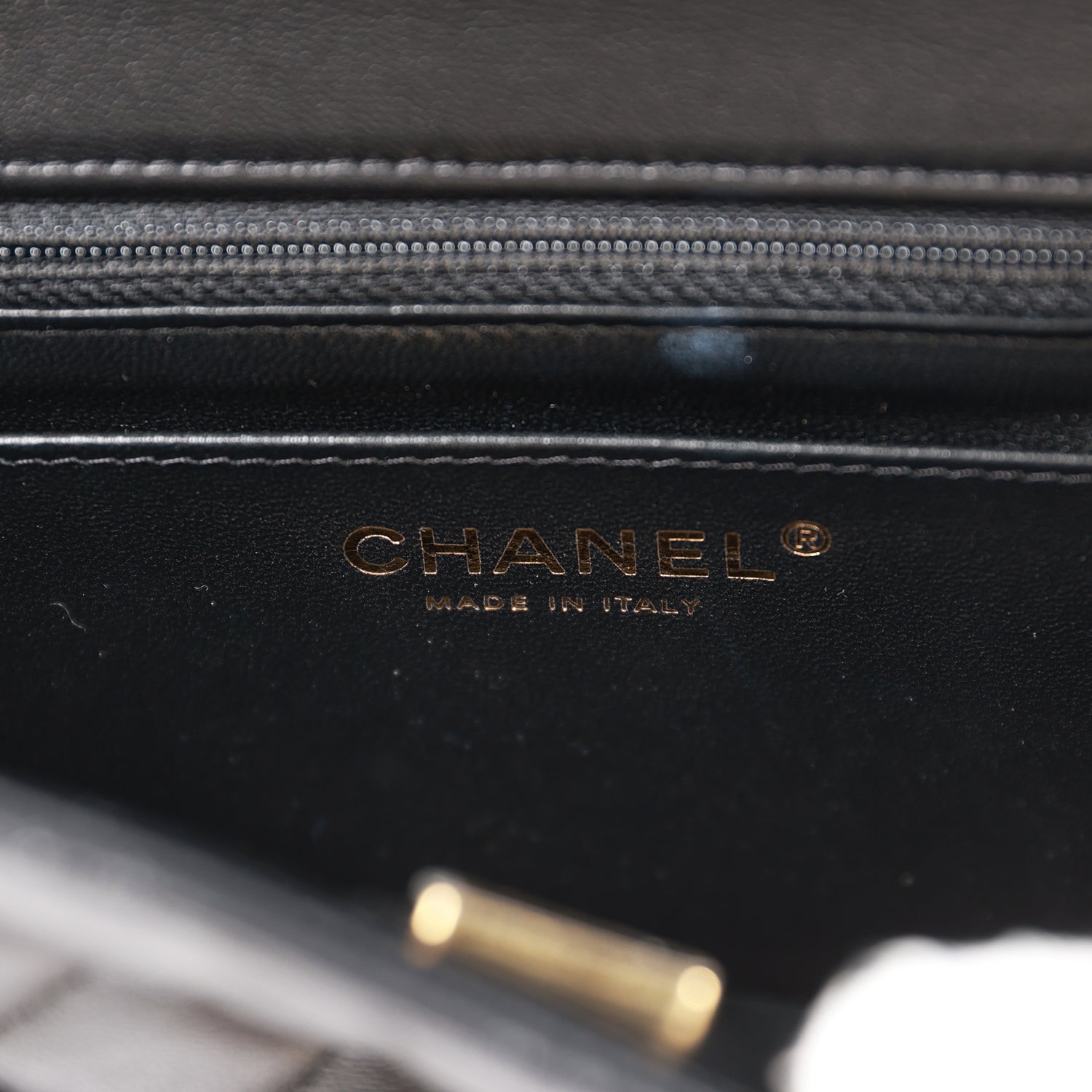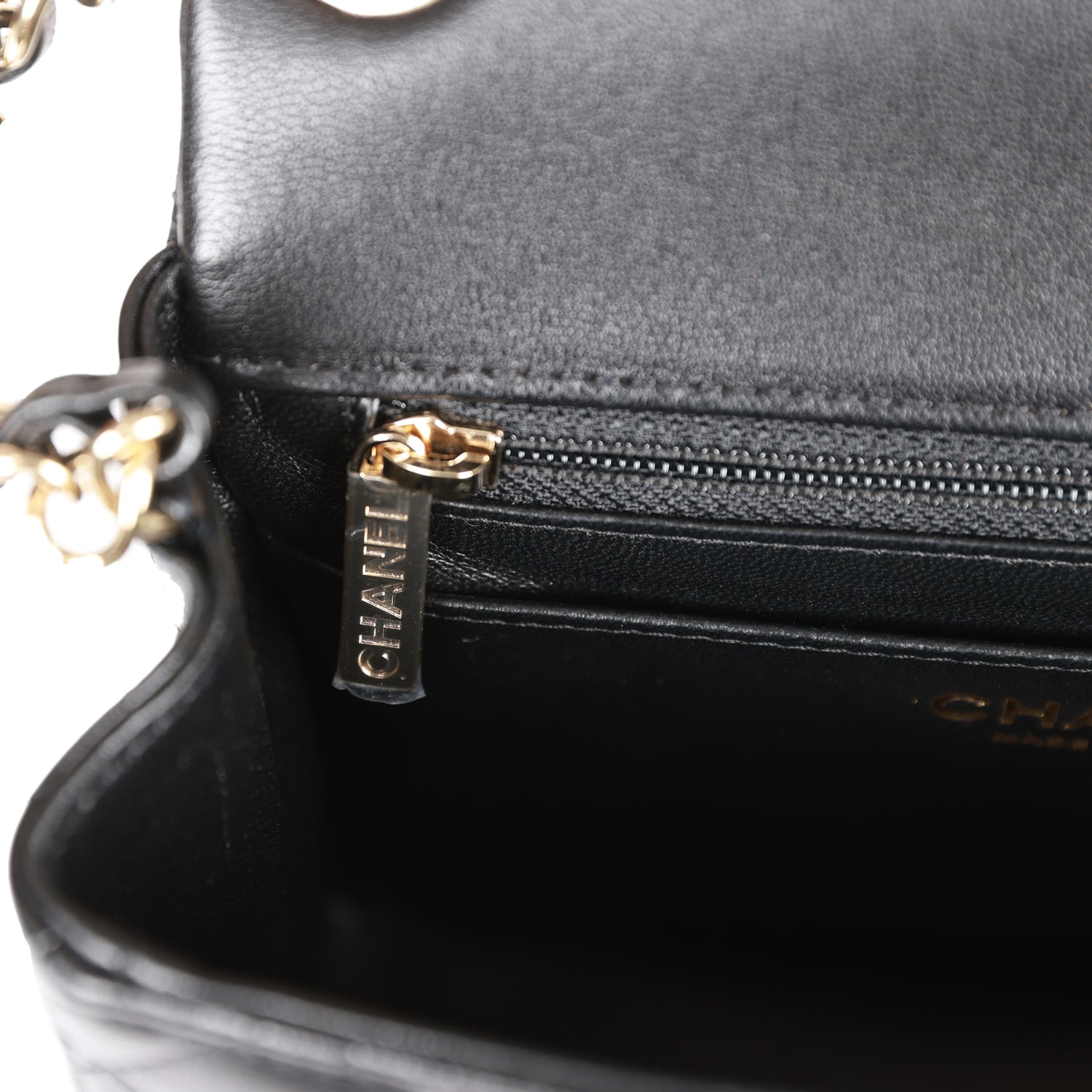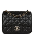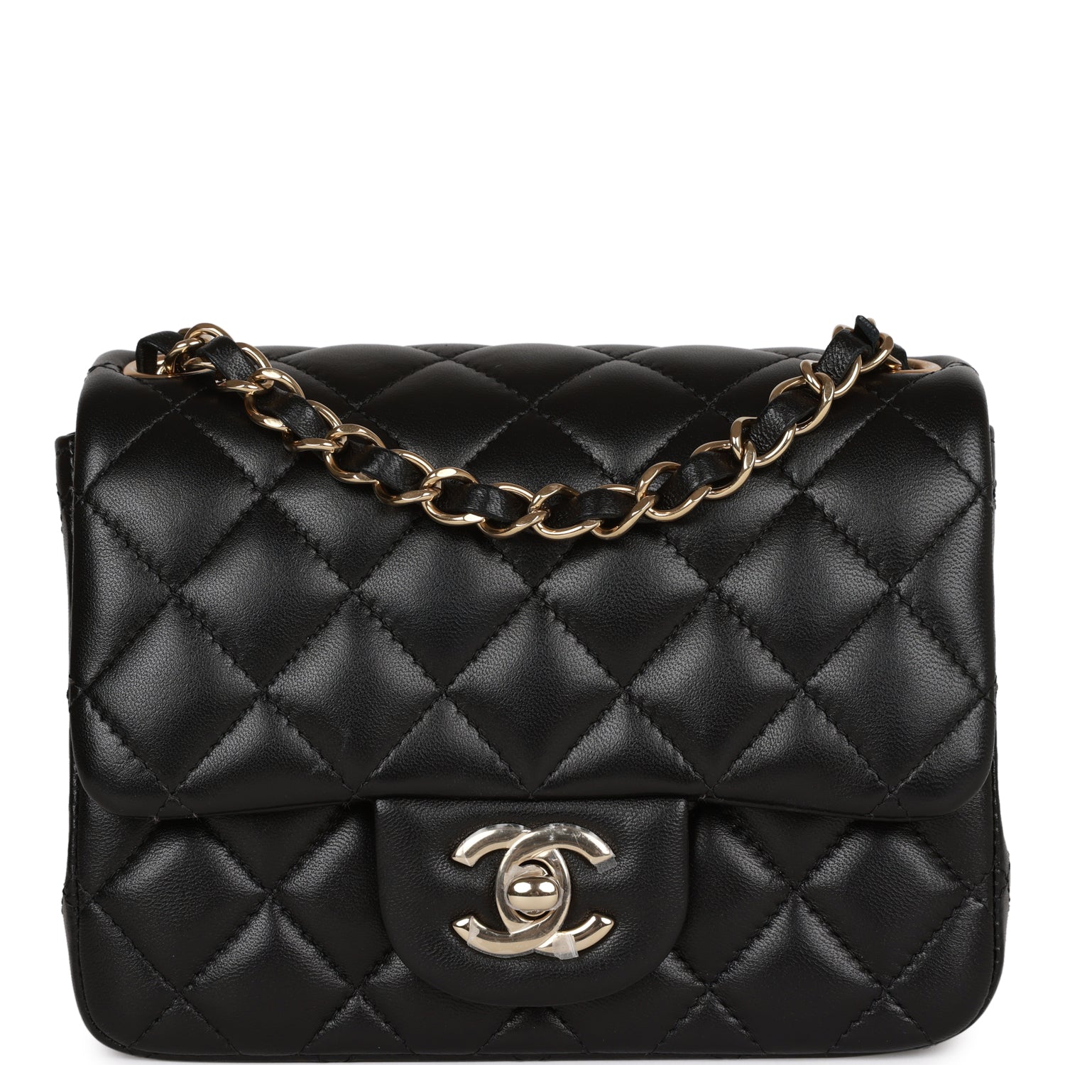 Chanel Mini Square Flap Bag Black Lambskin Light Gold Hardware