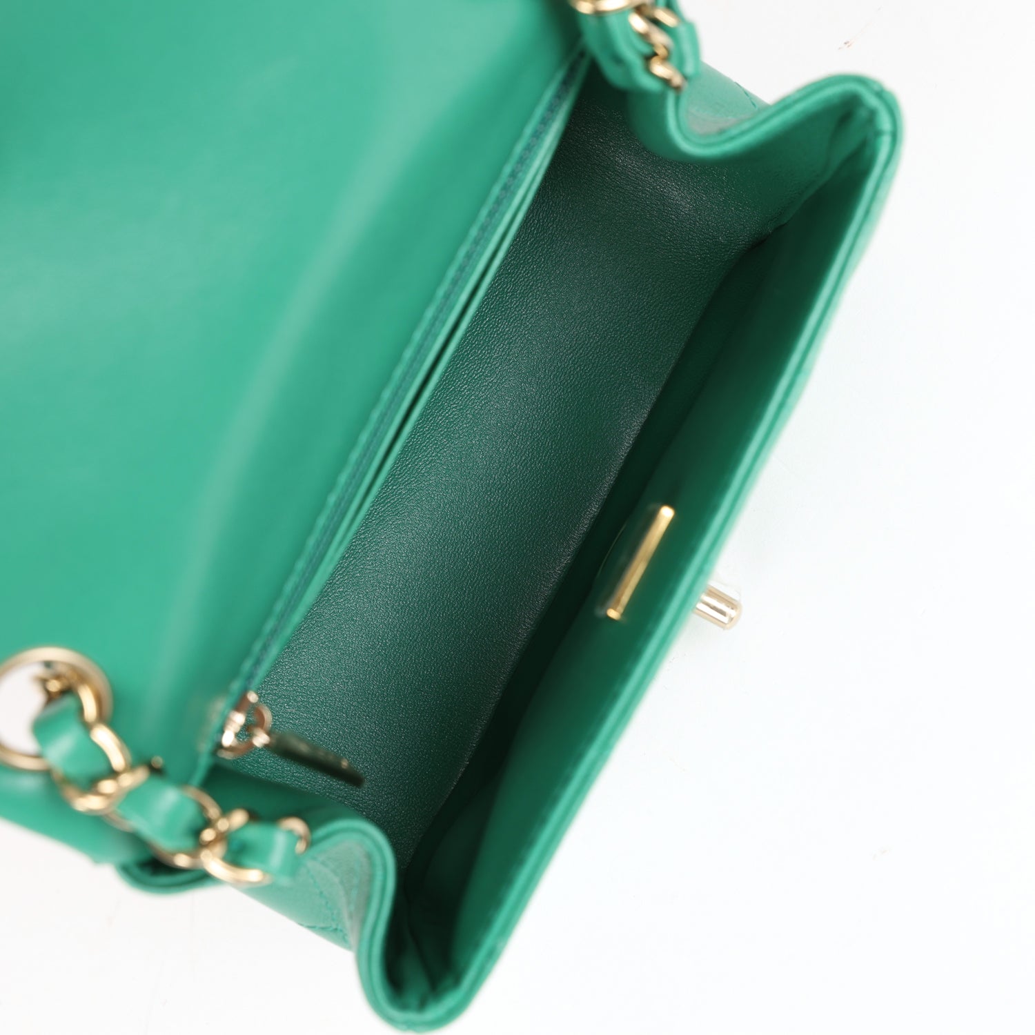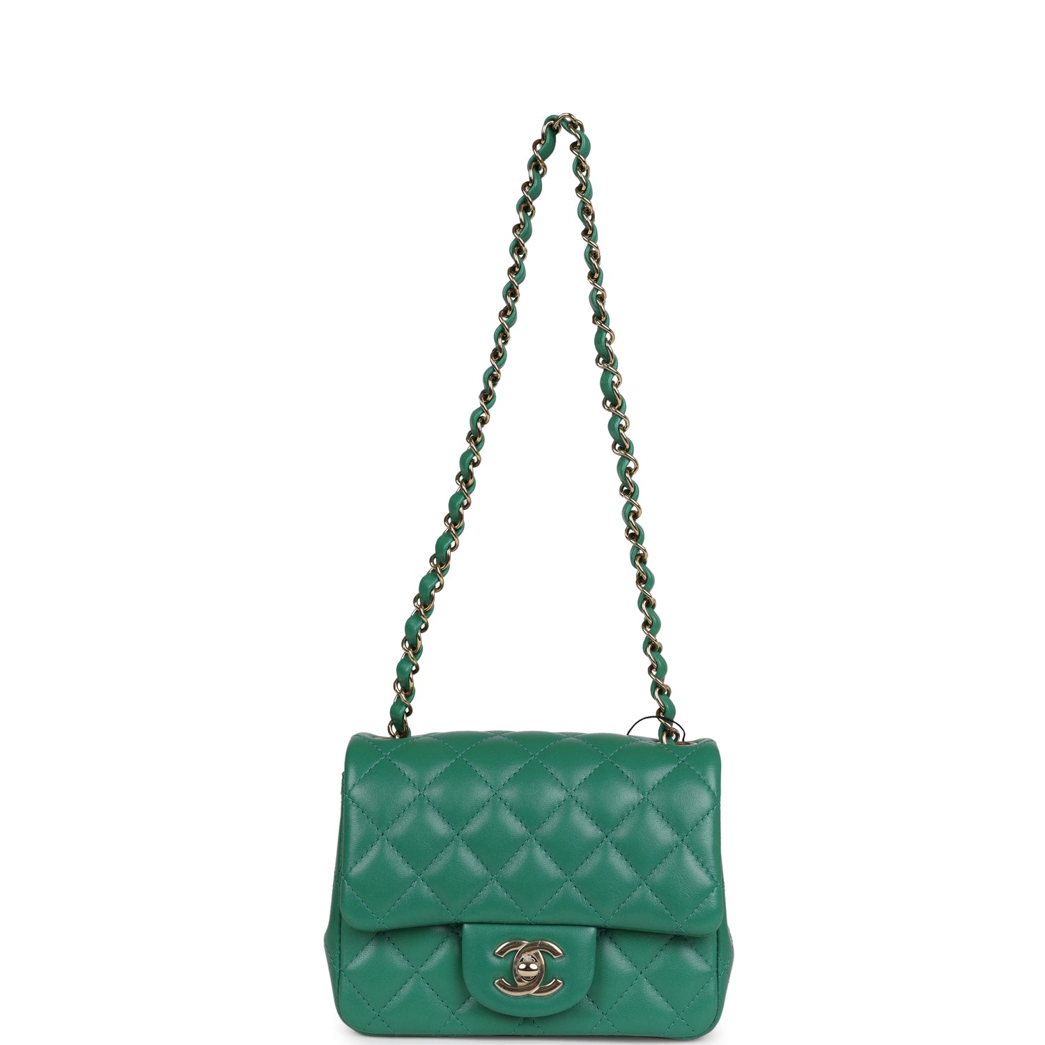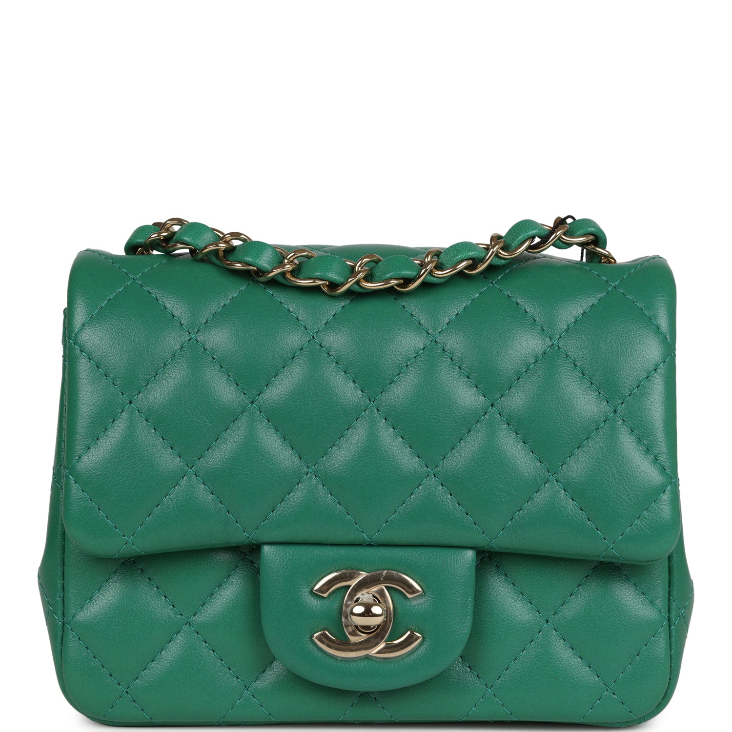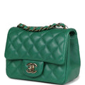 Chanel Mini Square Flap Bag Green Lambskin Gold Hardware
