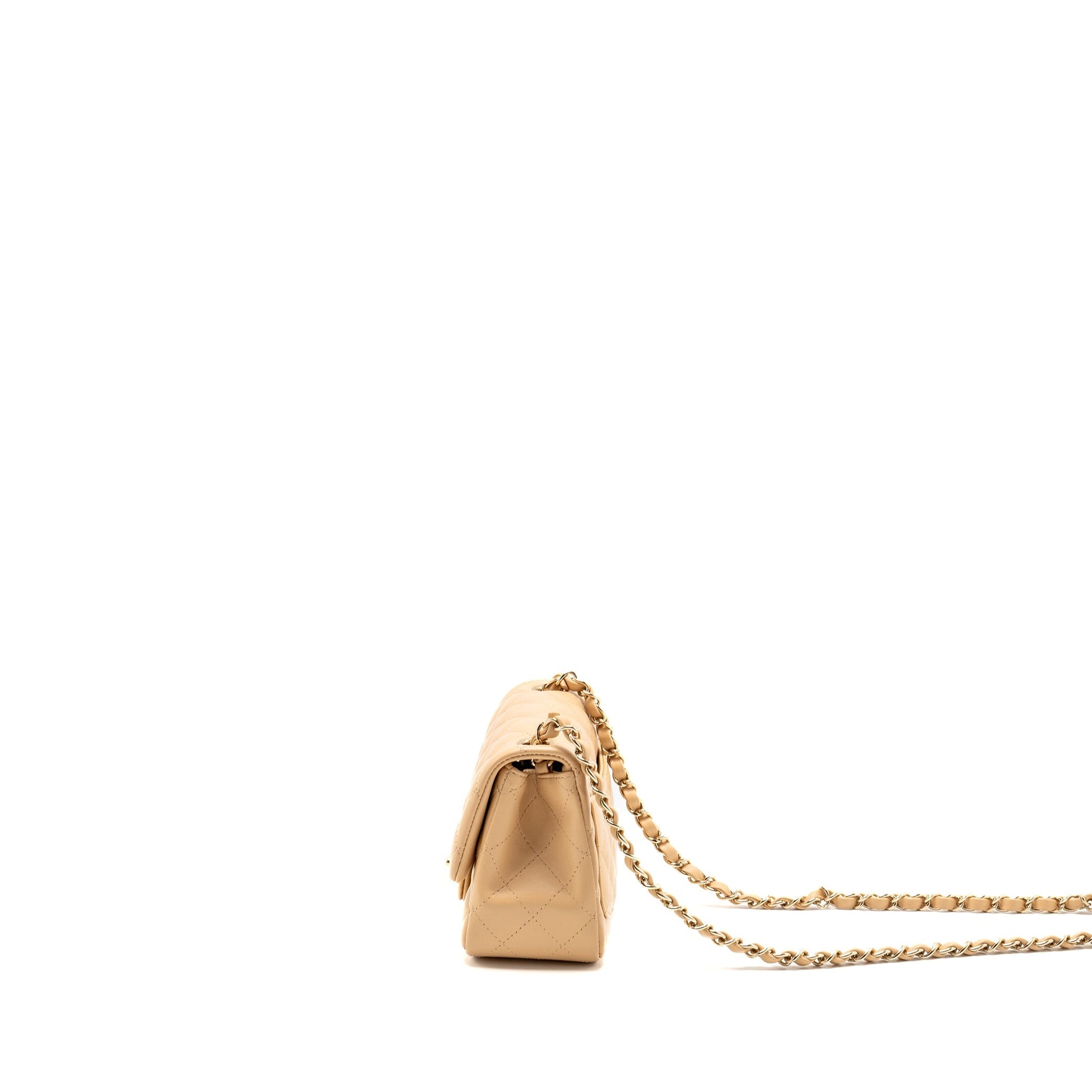 Chanel Mini Square Flap Bag Lambskin Beige LGHW (Microchip)