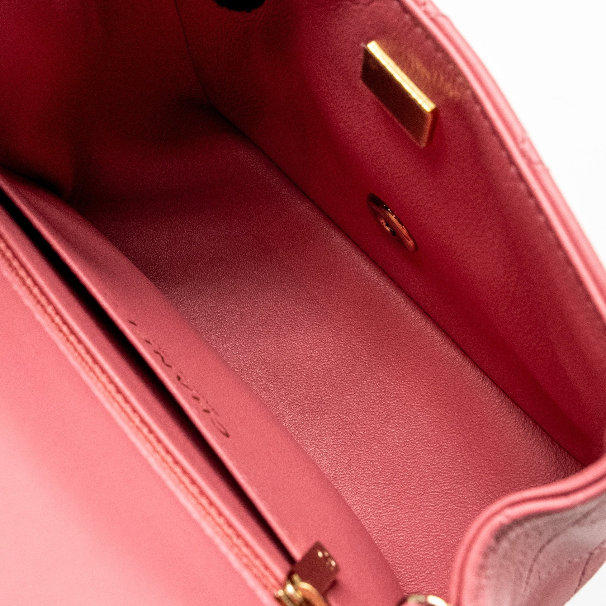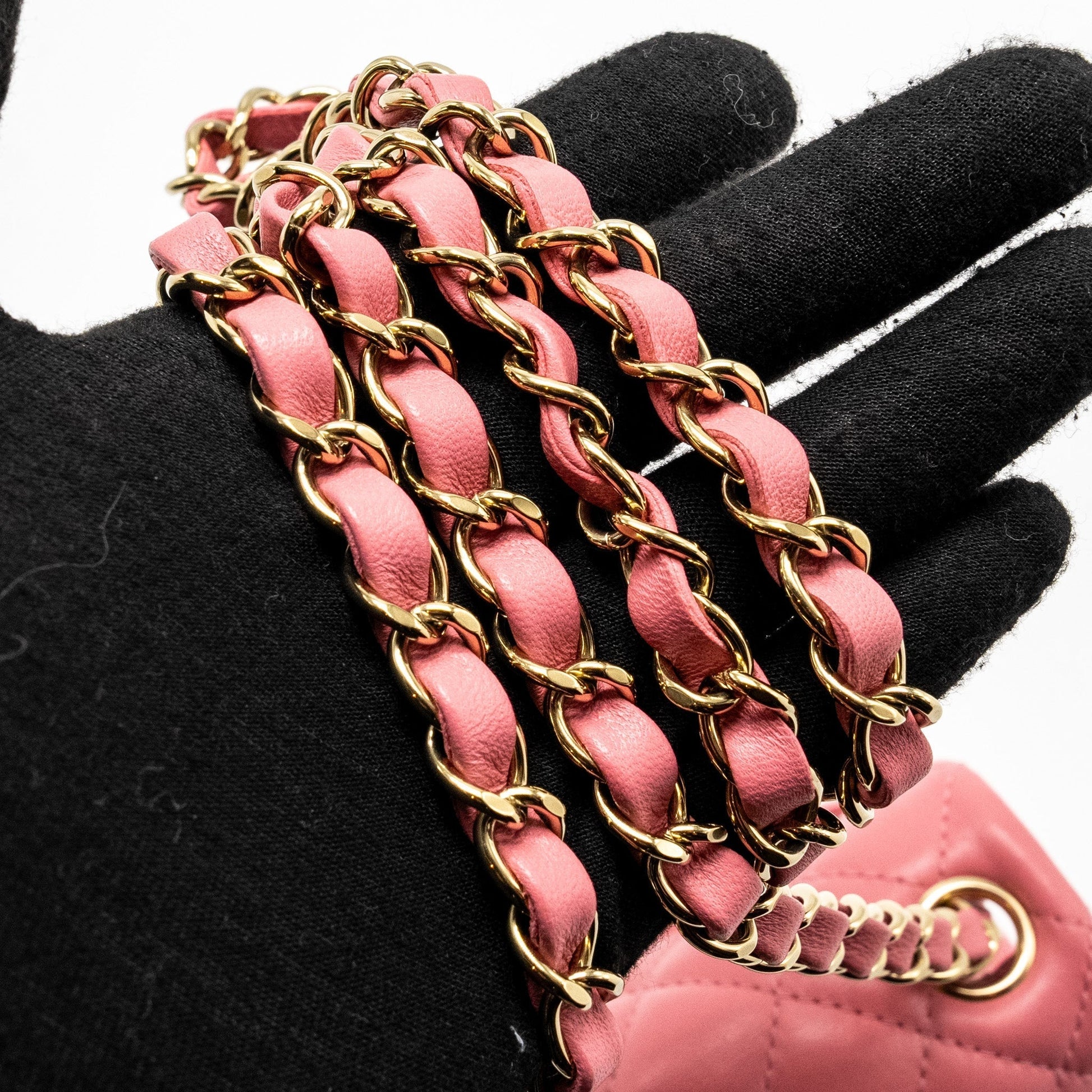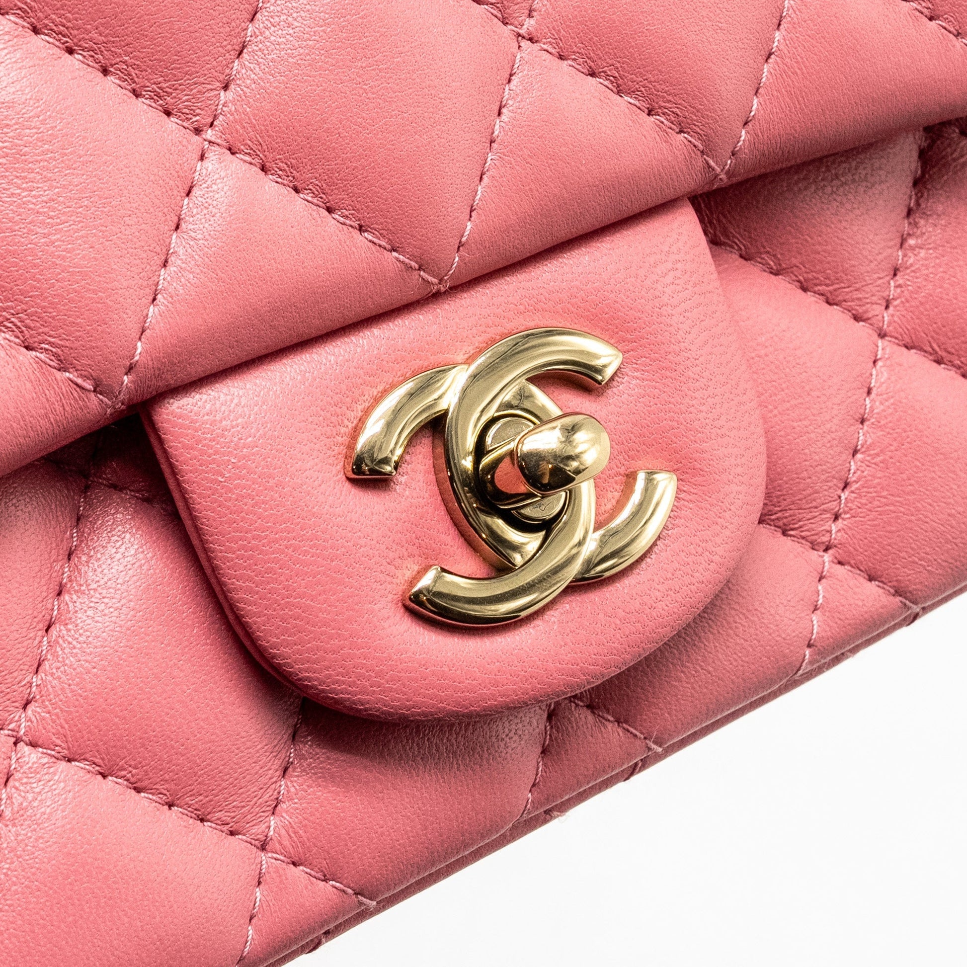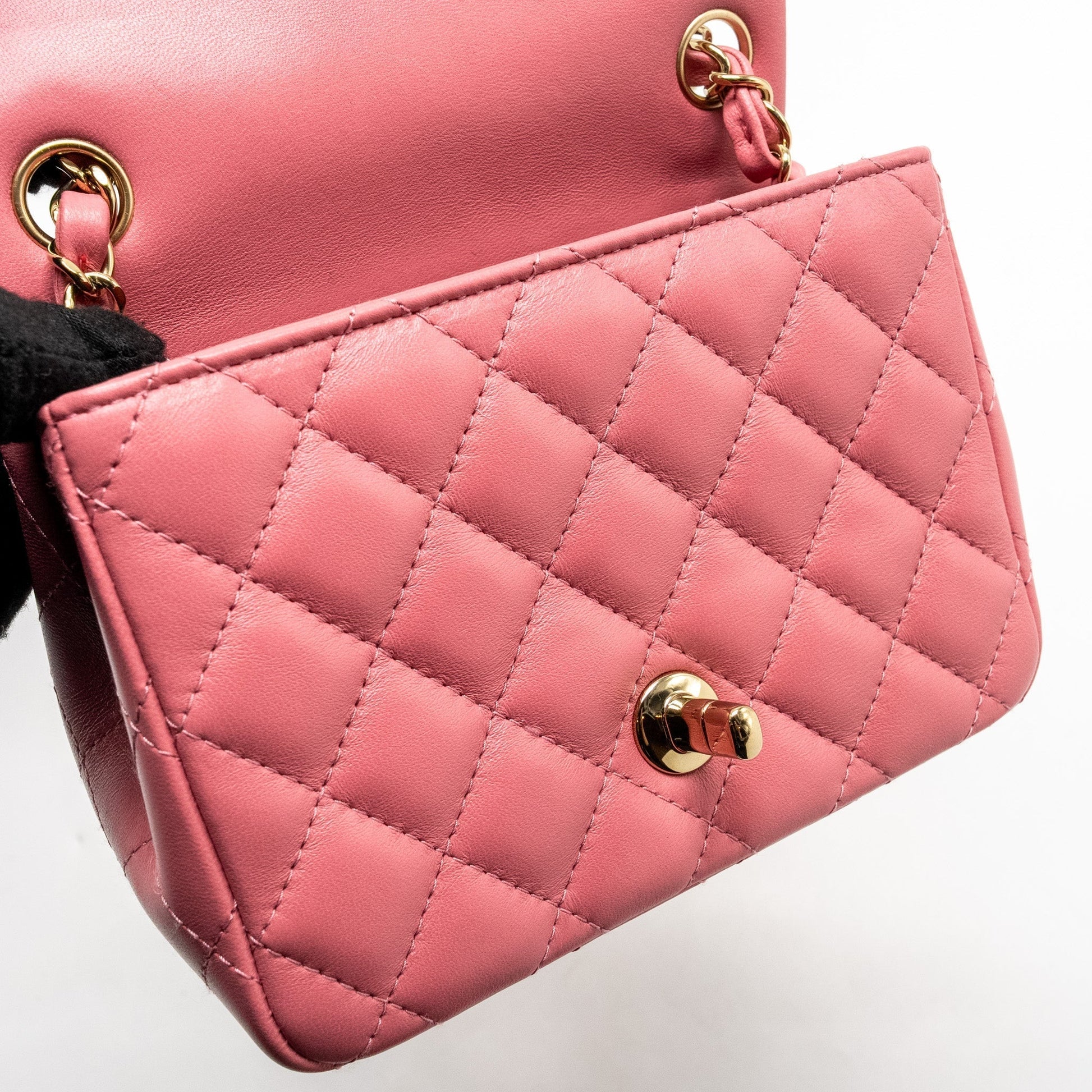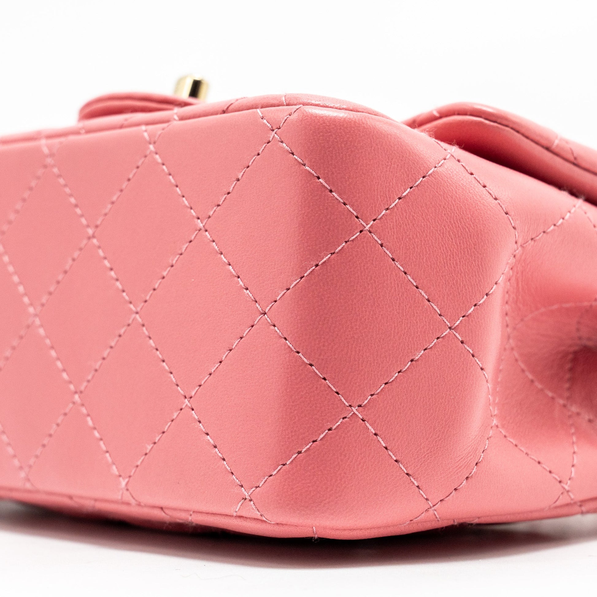 Chanel Mini Square Flap Bag Lambskin PInk LGHW (Microchip)