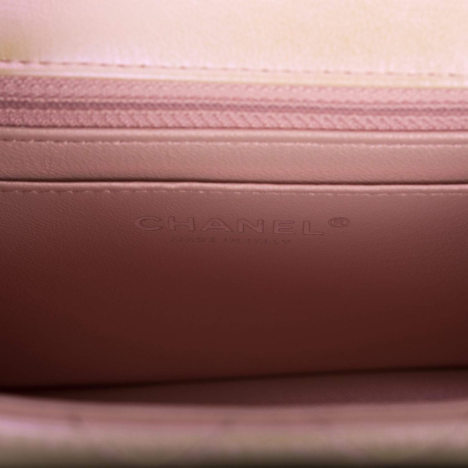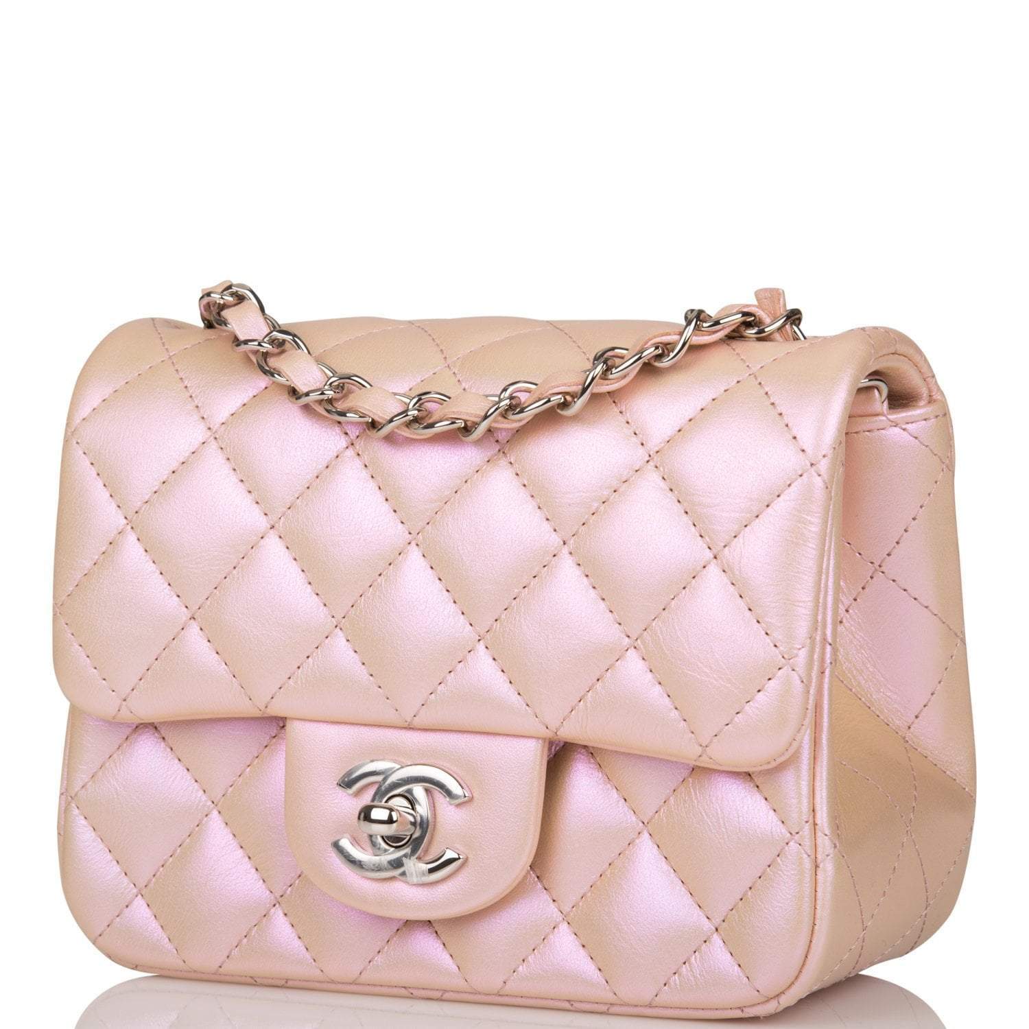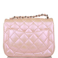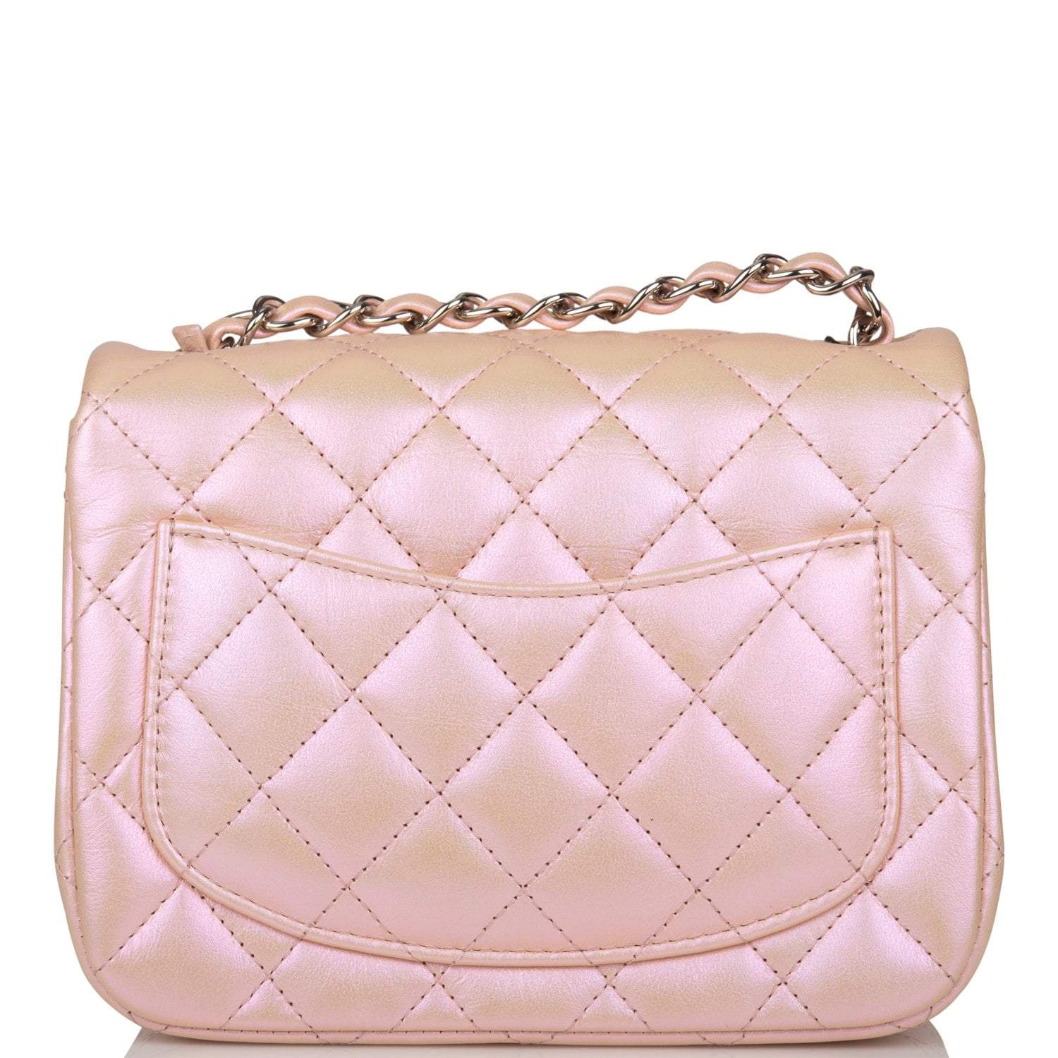 Chanel Mini Square Flap Bag Pink Iridescent Lambskin Silver Hardware