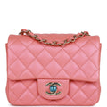 Chanel Mini Square Flap Bag Pink Lambskin Light Gold Hardware
