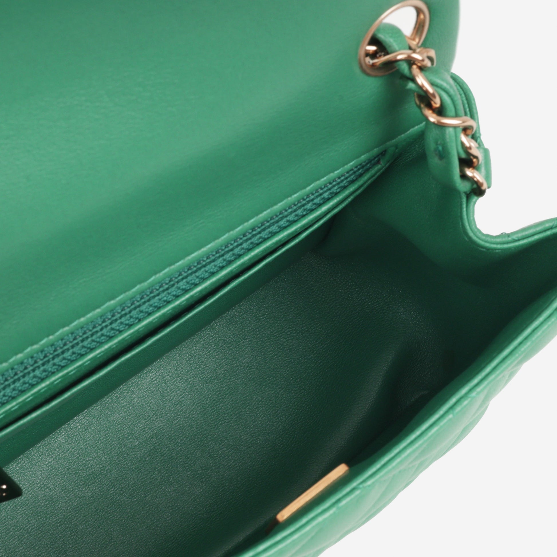 Chanel Mini Square Green Lambskin Champagne Gold Hardware
