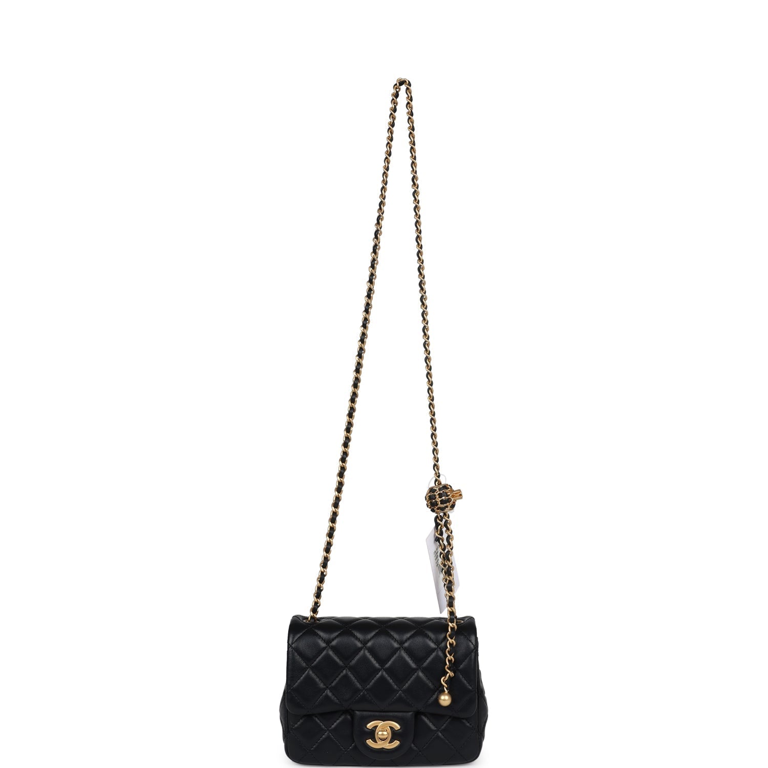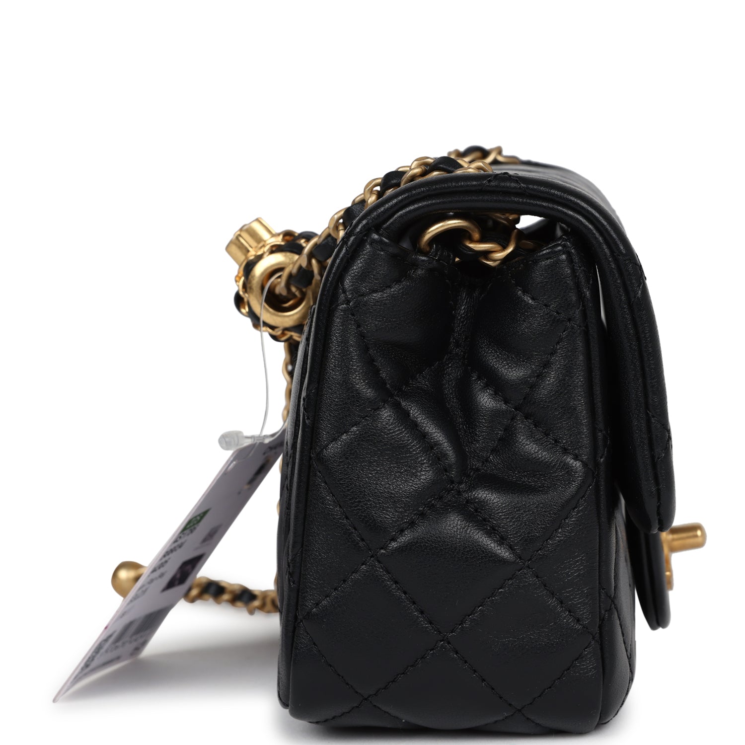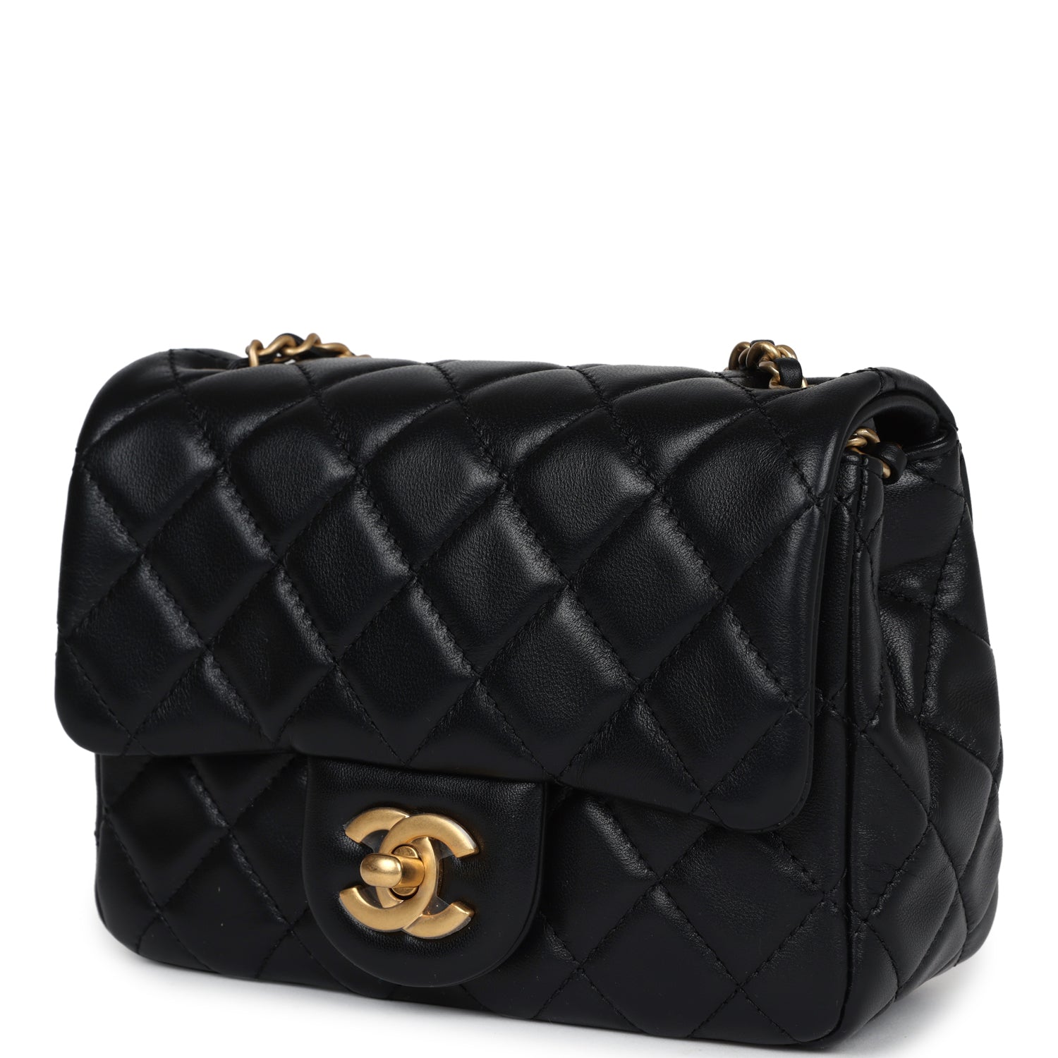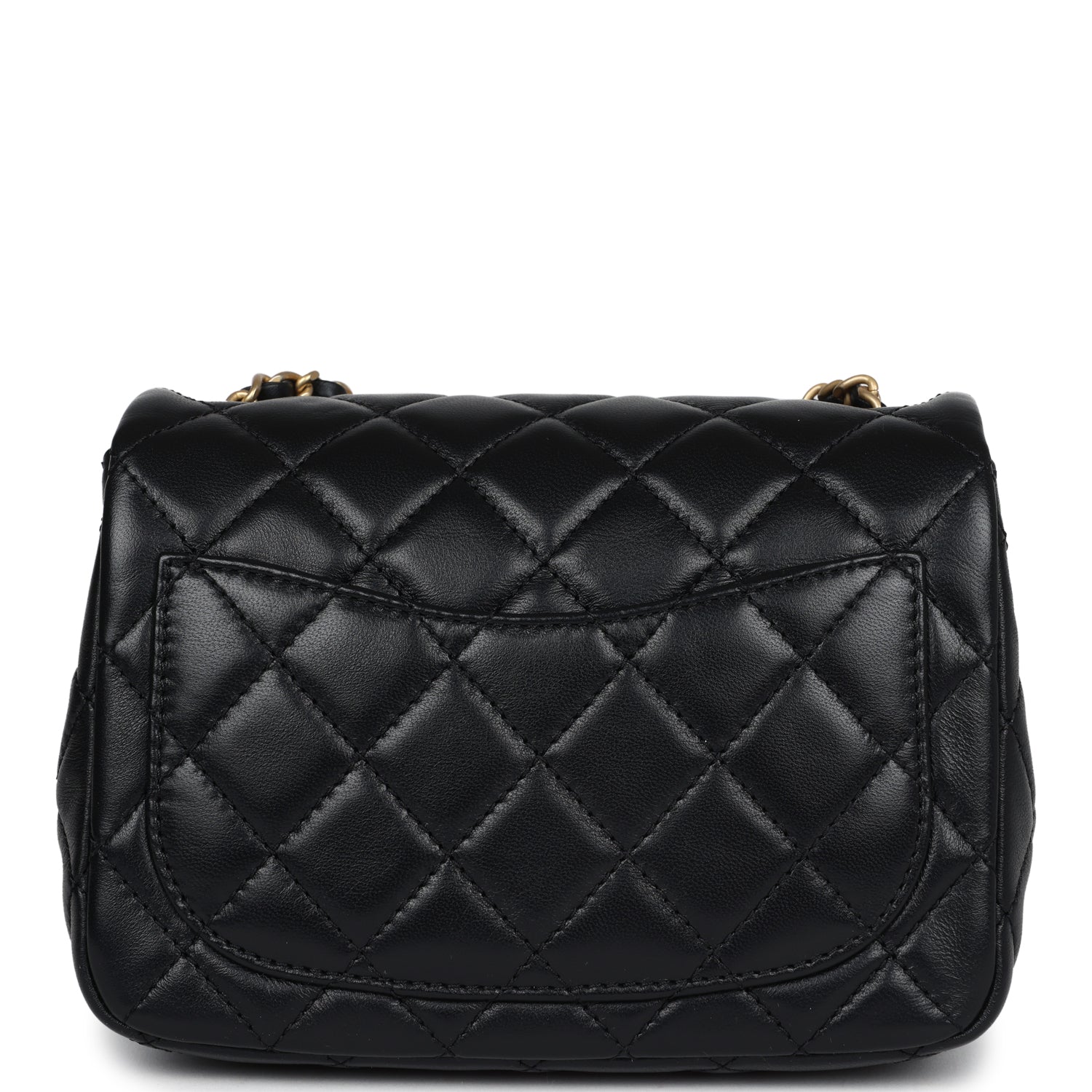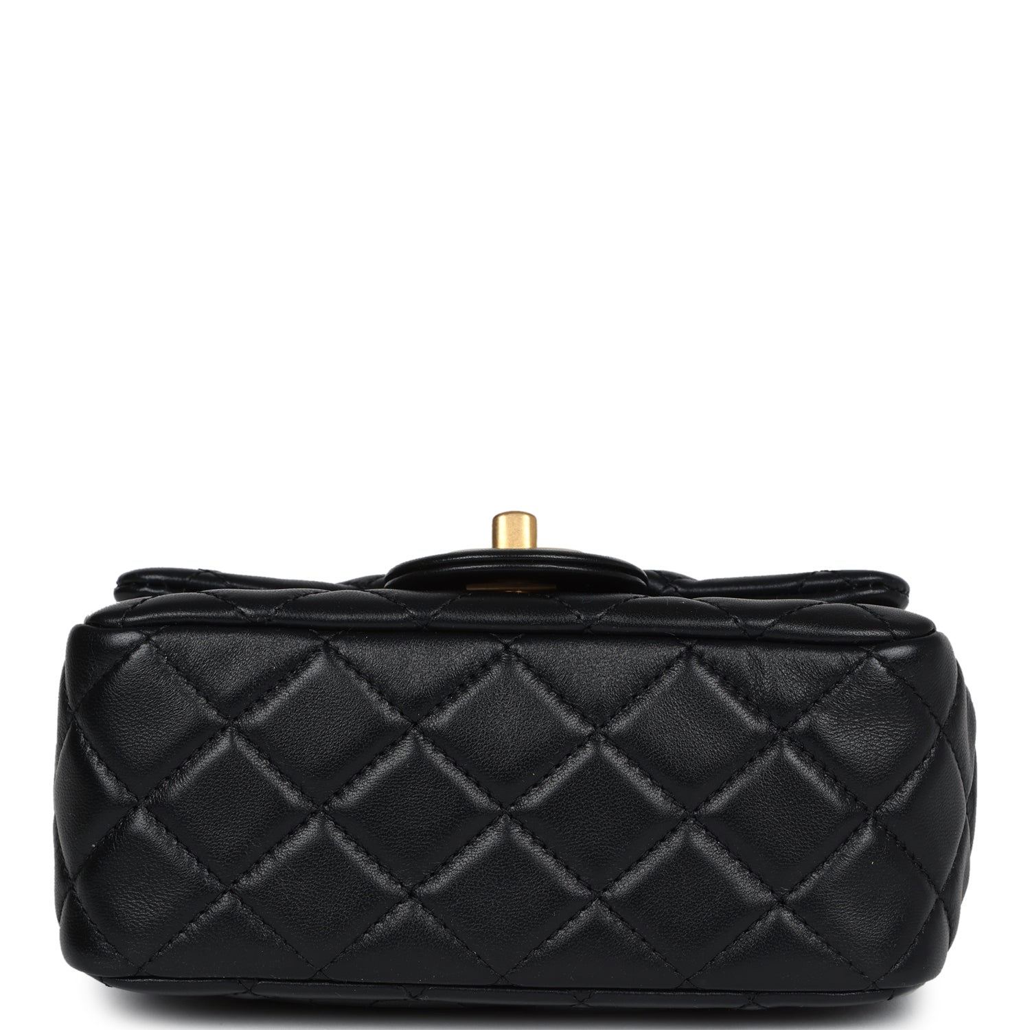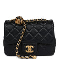 Chanel Mini Square Pearl Crush Flap Bag Black Lambskin Antique Gold Hardware