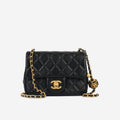 The Chanel Pearl Crush mini square flap bag is an absolute vision. We love her, to say the very least. Crafted from black lambskin leather with brushed gold-tone hardware, this perfect little piece is extremely hard to get your hands on. The perfect accessory for basically anything, this mini Chanel is the ideal compliment to any outfit for any occasion.
