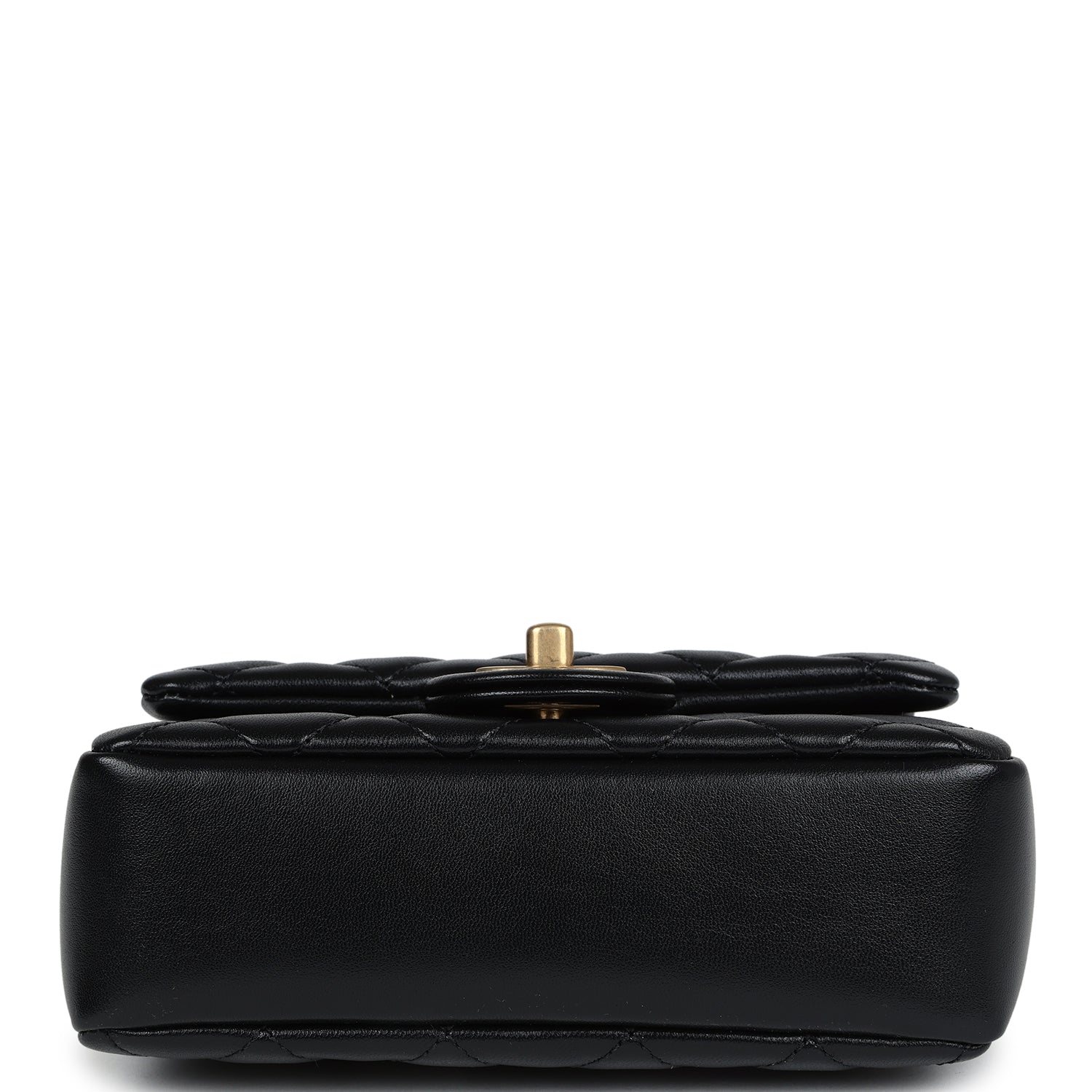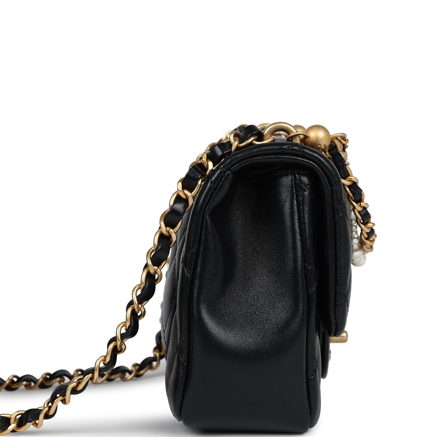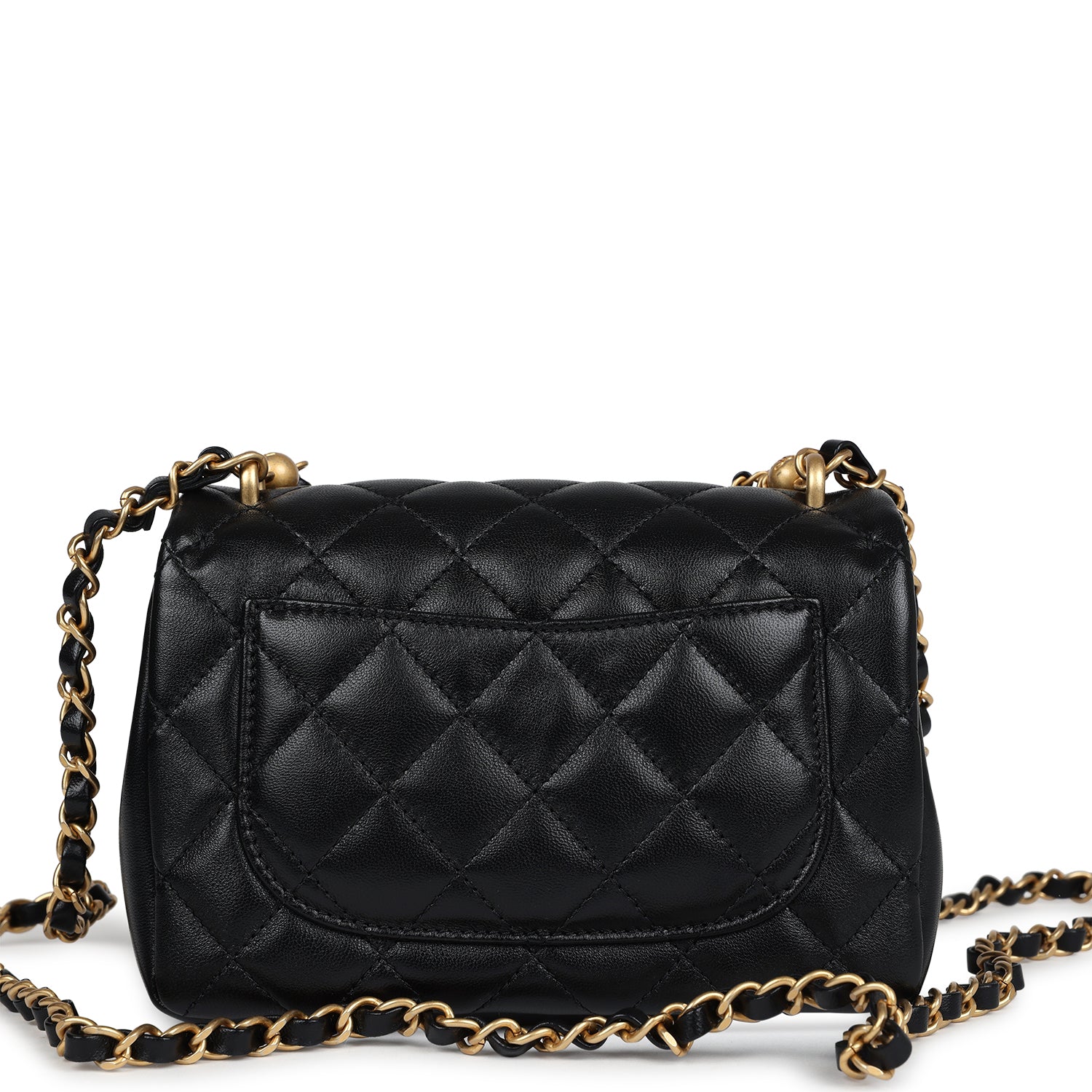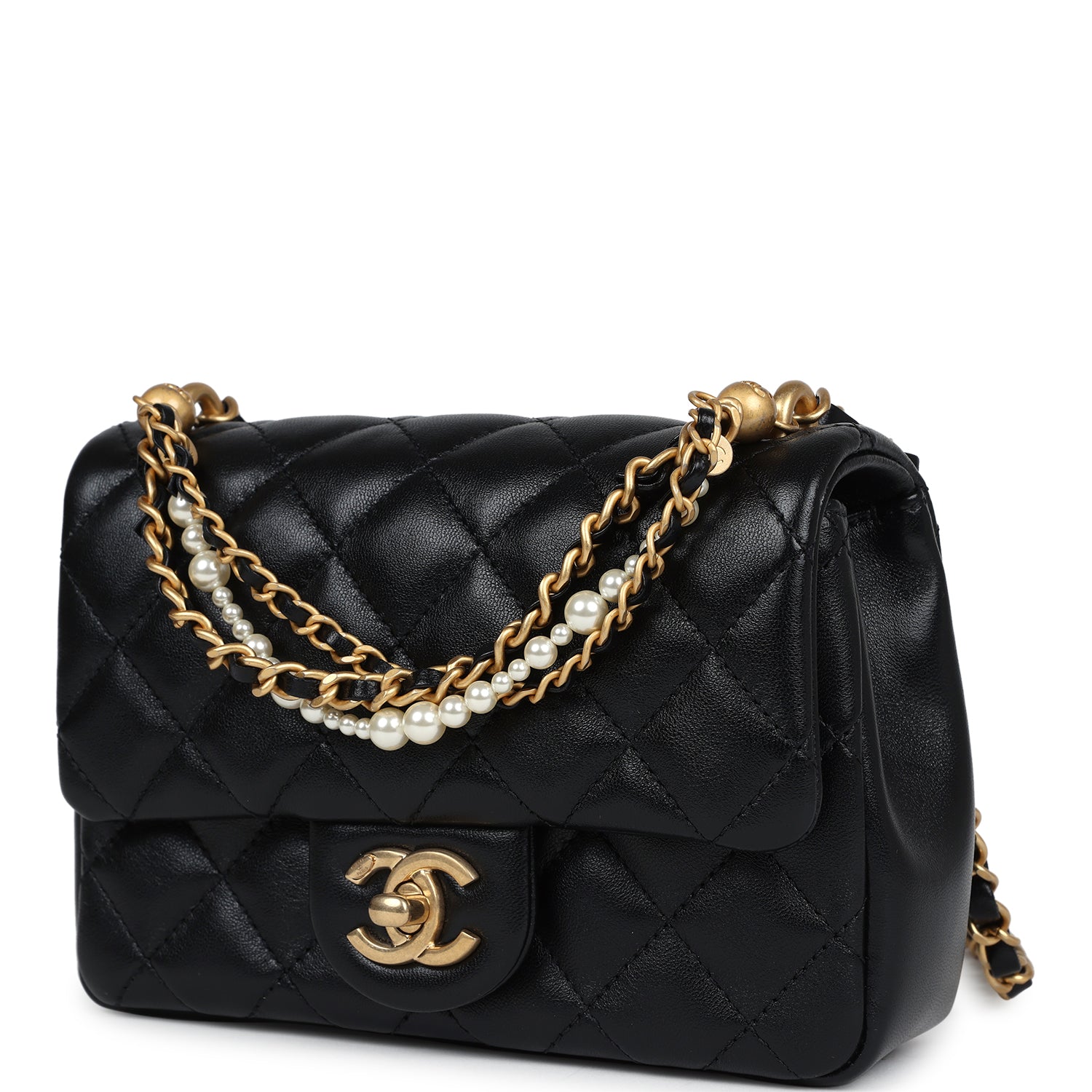 Chanel Mini Square Pearl Flap Bag Black Lambskin Brushed Gold Hardware