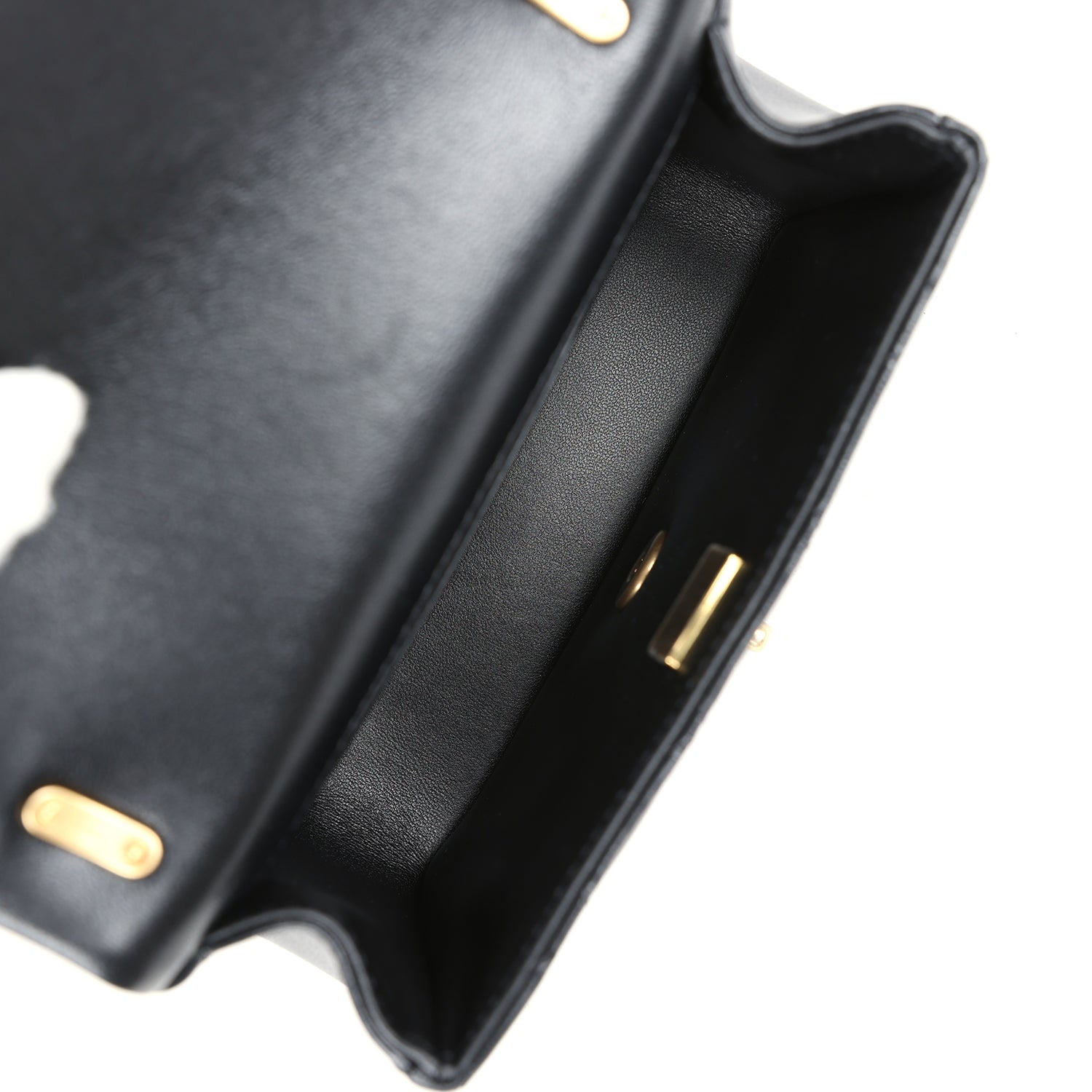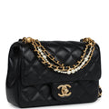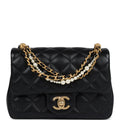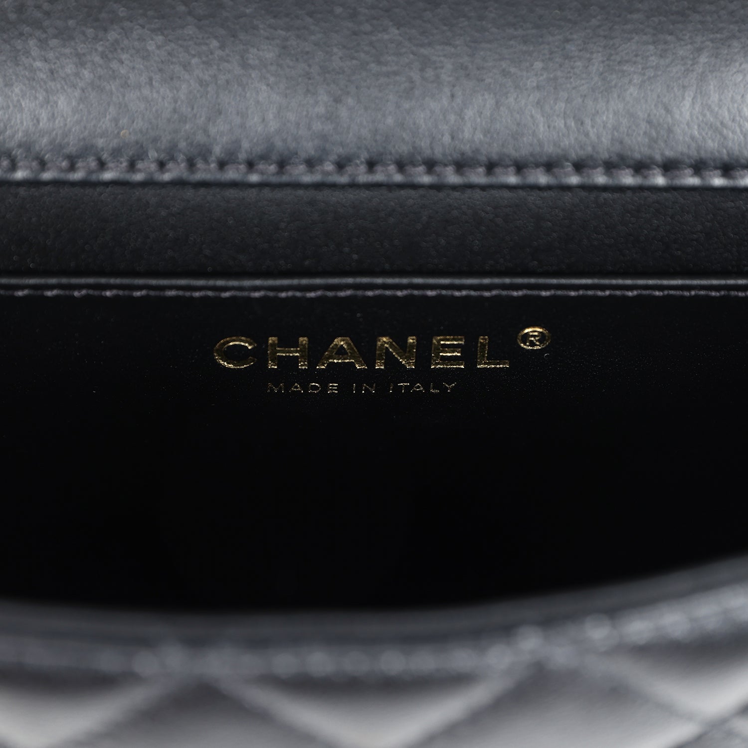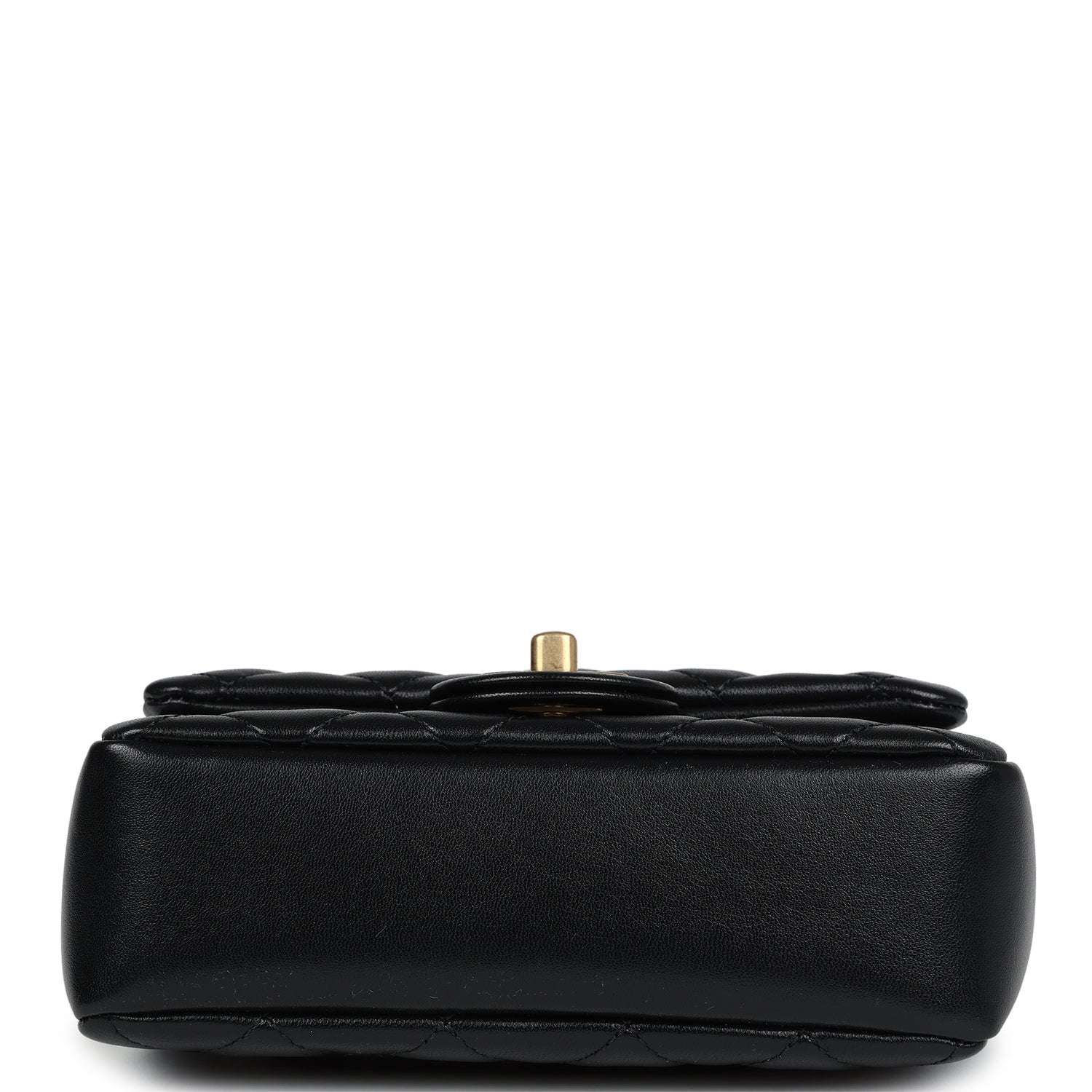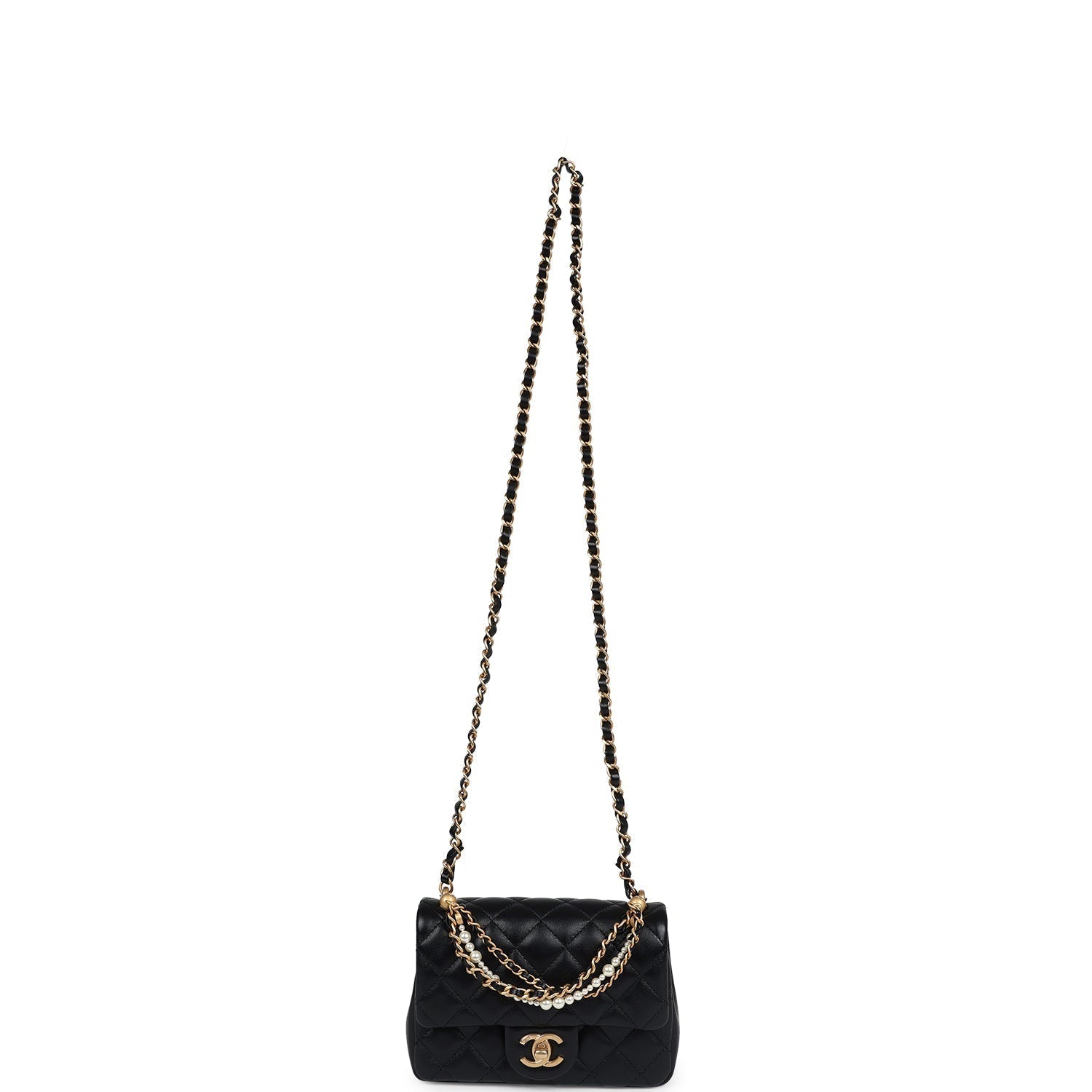 Chanel Mini Square Pearl Flap Bag Black Lambskin Brushed Gold Hardware