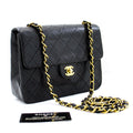 CHANEL Mini Square Small Chain Shoulder Bag Crossbody Black Quilt f77