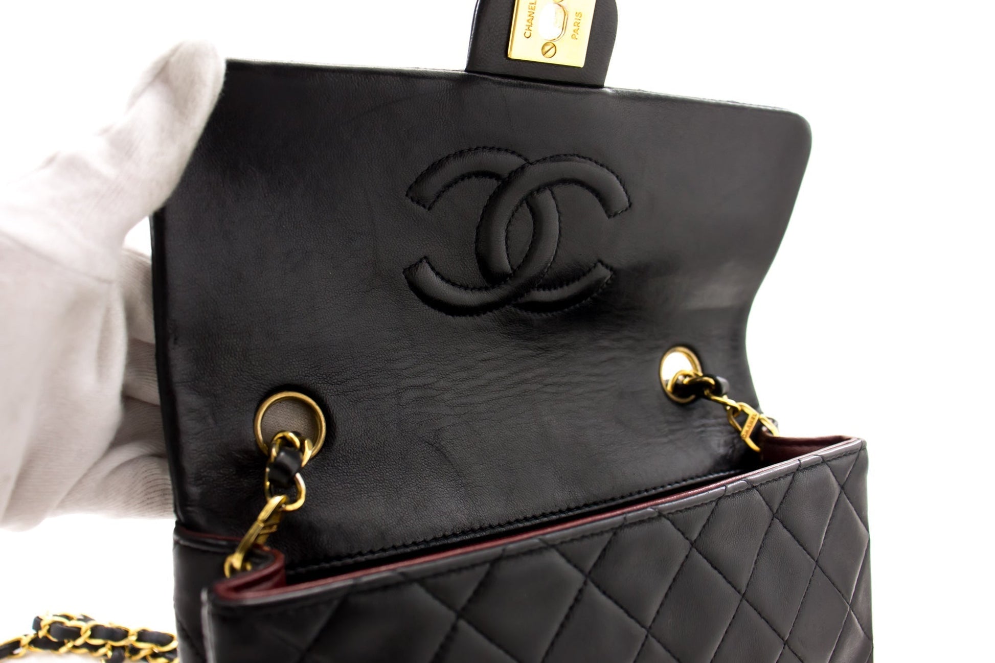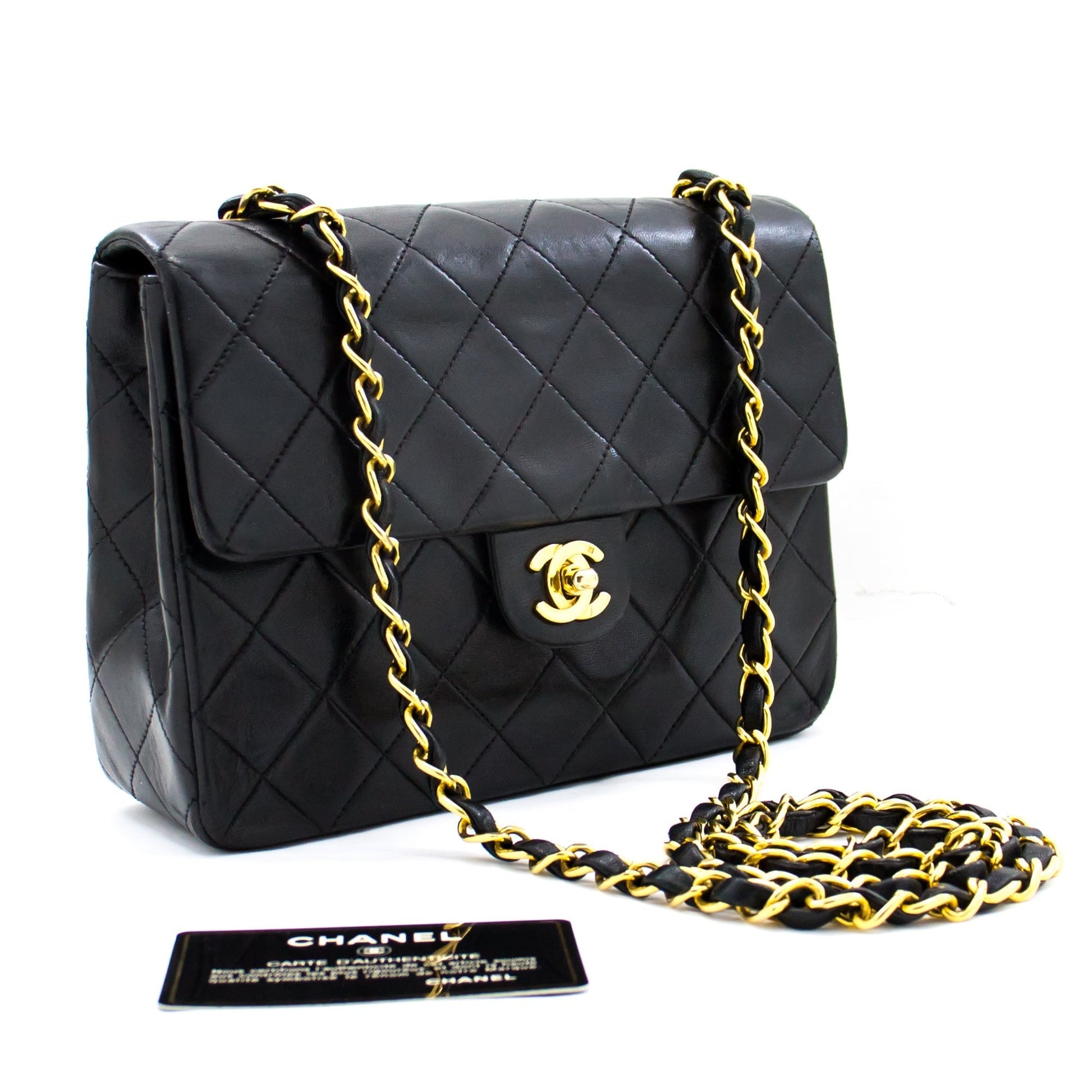 An authentic CHANEL Mini Square Small Chain Shoulder Bag Crossbody Black Quilt f77 This item is Vintage / Classic. The year of manufacture would be 1991-1994.