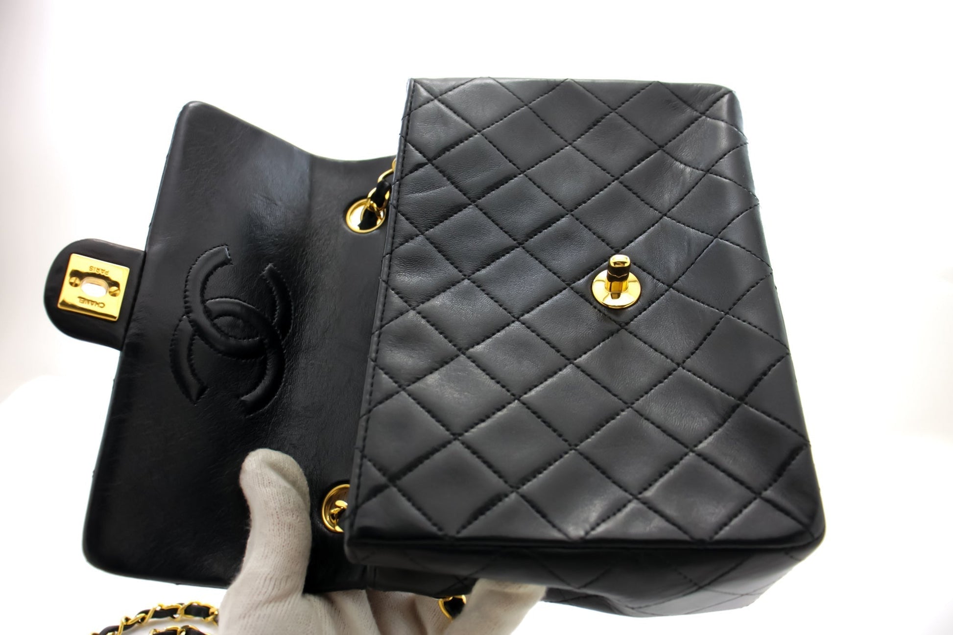 An authentic CHANEL Mini Square Small Chain Shoulder Bag Crossbody Black Quilt g36 This item is Vintage / Classic. The year of manufacture would be 1994-1996.