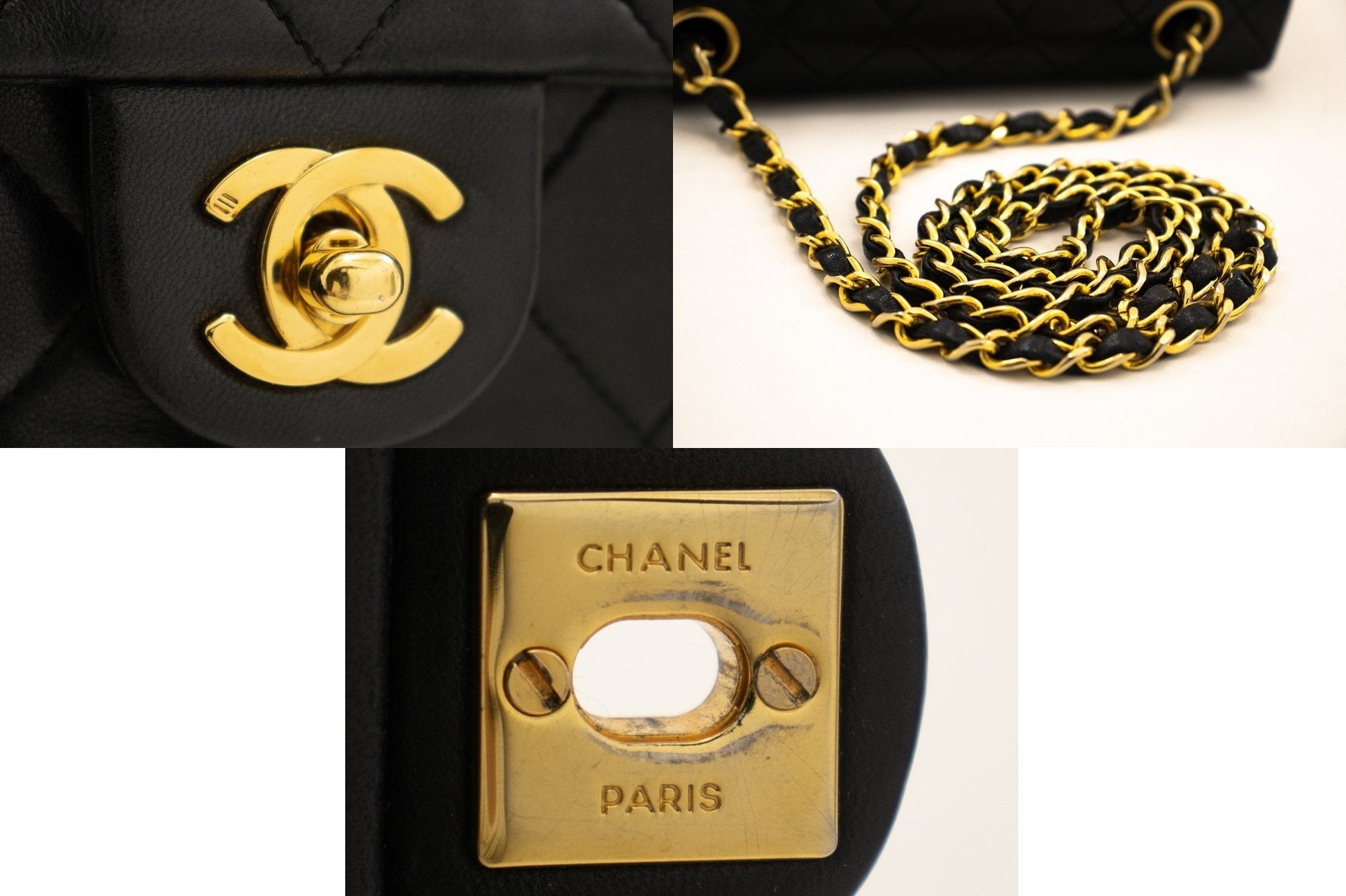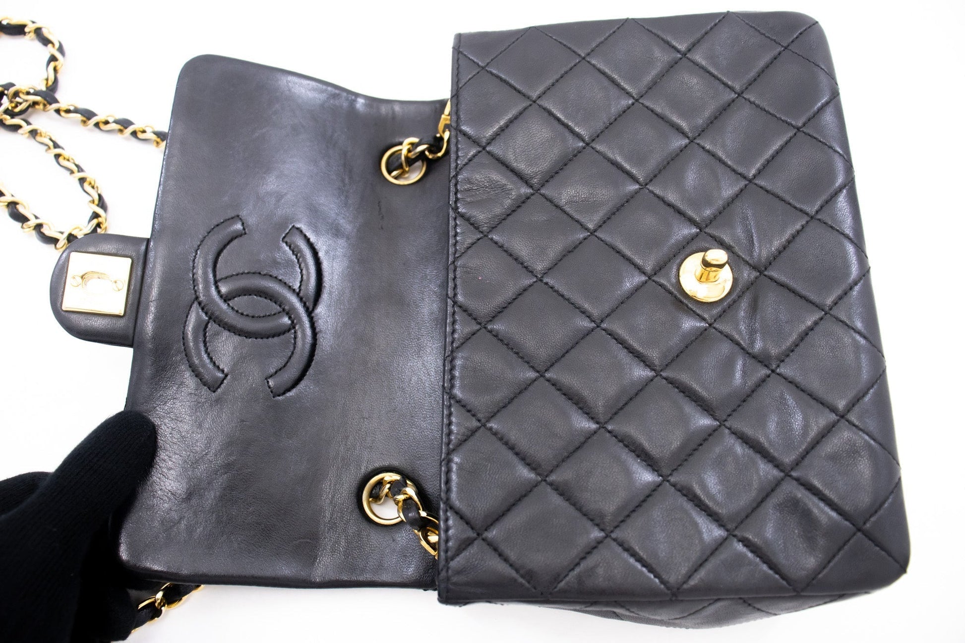 An authentic CHANEL Mini Square Small Chain Shoulder Bag Crossbody Black Quilt k83 This item is Vintage / Classic. The year of manufacture would be 1989-1991.
